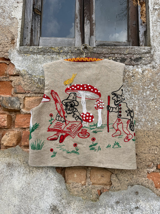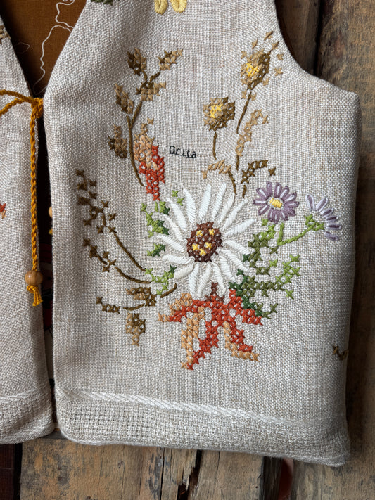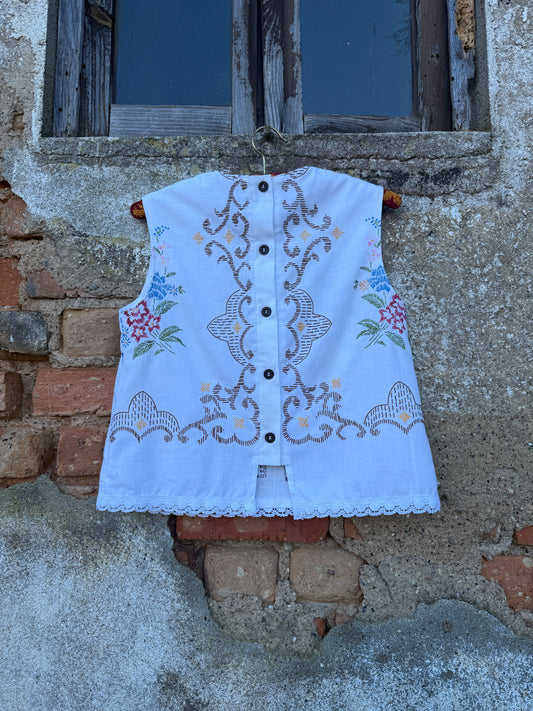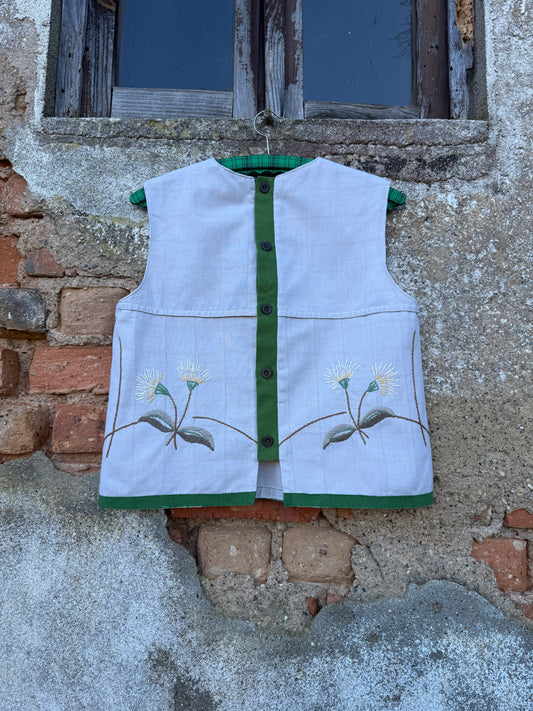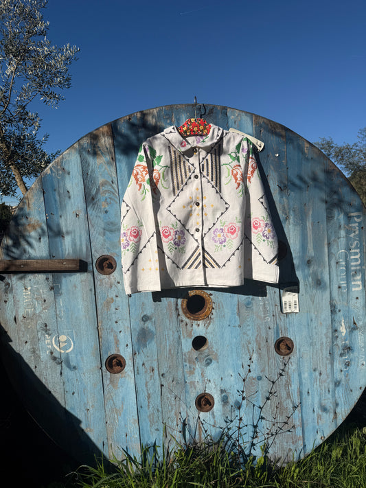 Em 2021 aprendi a costurar. Nessa altura não sabia que ia descobrir uma paixão e que, com ela, ia dar uma nova função às minhas mãos. É com elas que em 2024 crio a Grita. Para as minhas peças utilizo tecidos domésticos antigos e usados, principalmente toalhas de mesa mas também cortinas, lençóis, entre outros tecidos que descubro em feiras e lojas de velharias que percorro pelo país.