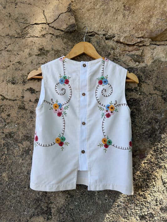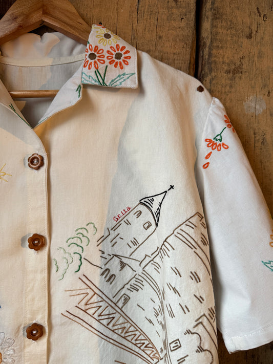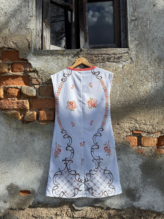 Em 2021 aprendi a costurar. Nessa altura não sabia que ia descobrir uma paixão e que, com ela, ia dar uma nova função às minhas mãos. É com elas que em 2024 crio a Grita. Para as minhas peças utilizo tecidos domésticos antigos e usados, principalmente toalhas de mesa mas também cortinas, lençóis, entre outros tecidos que descubro em feiras e lojas de velharias que percorro pelo país.