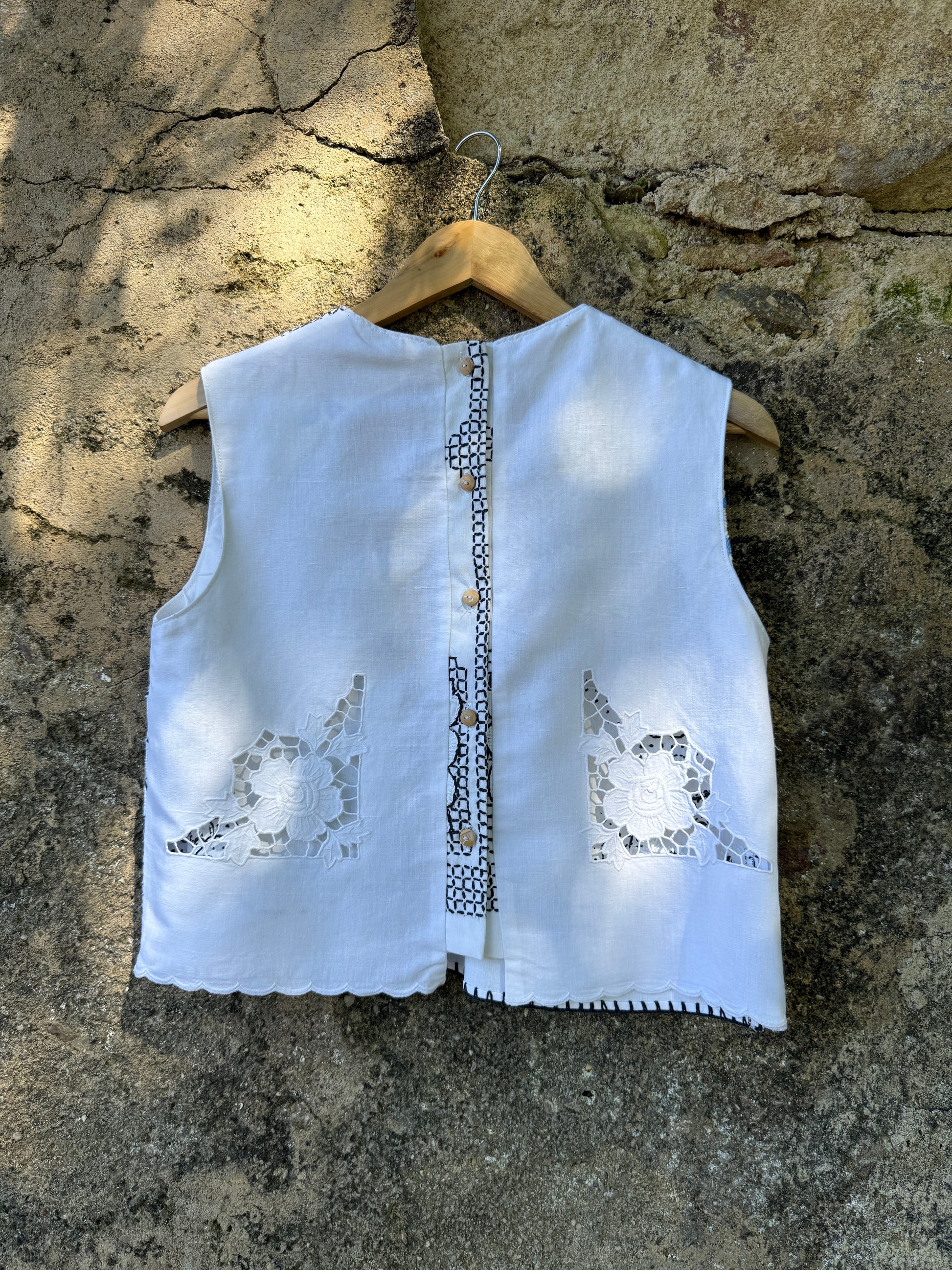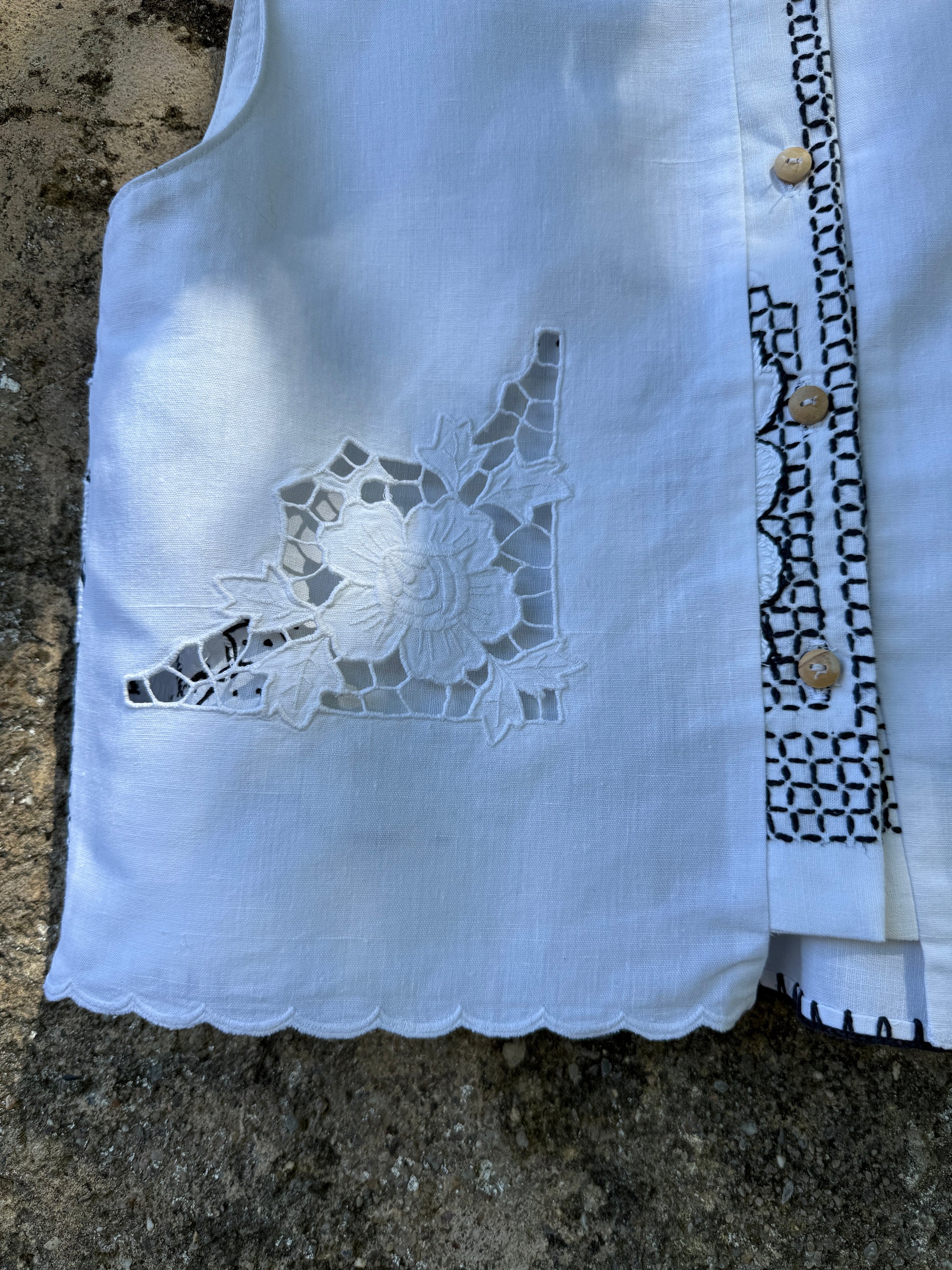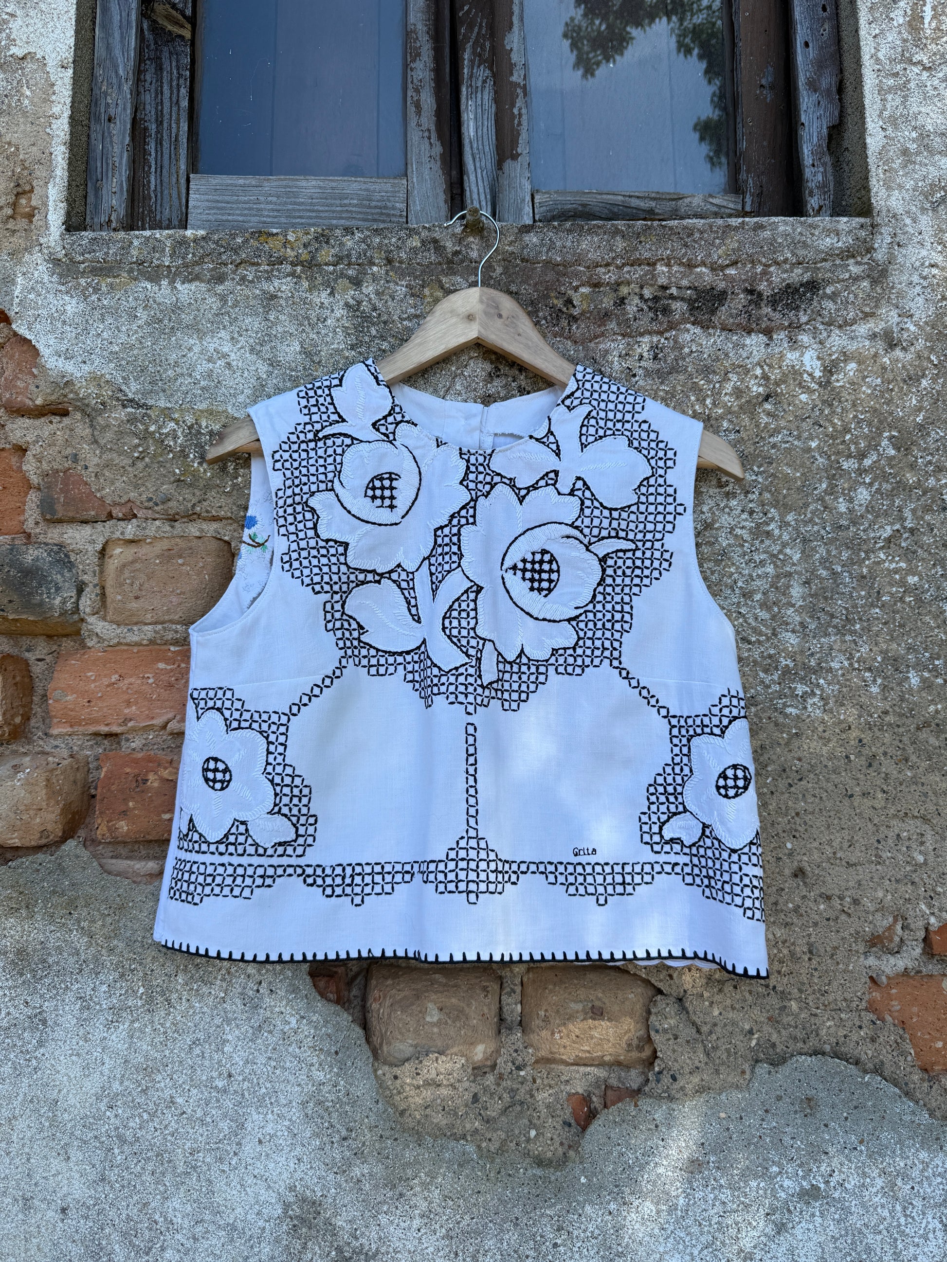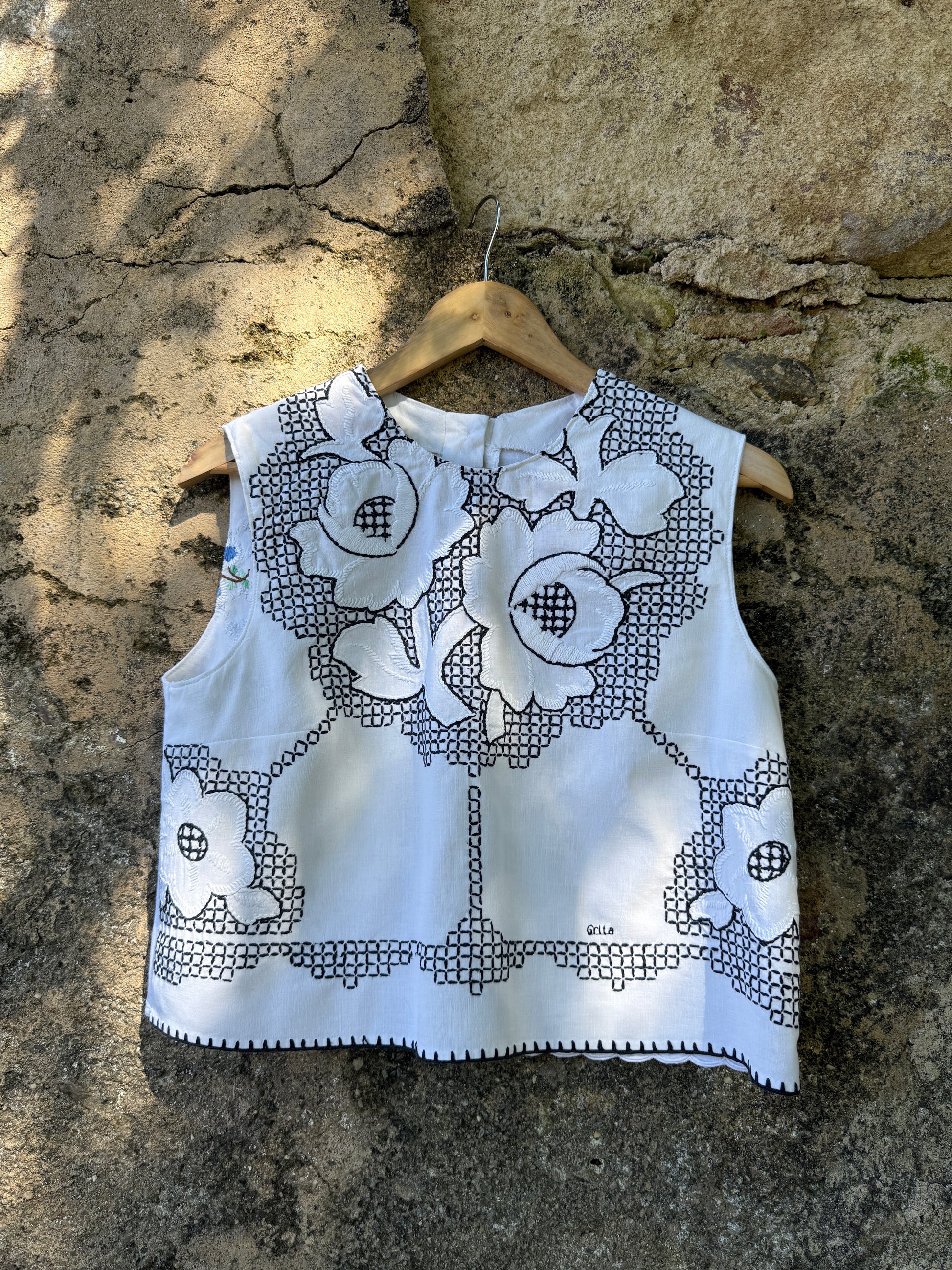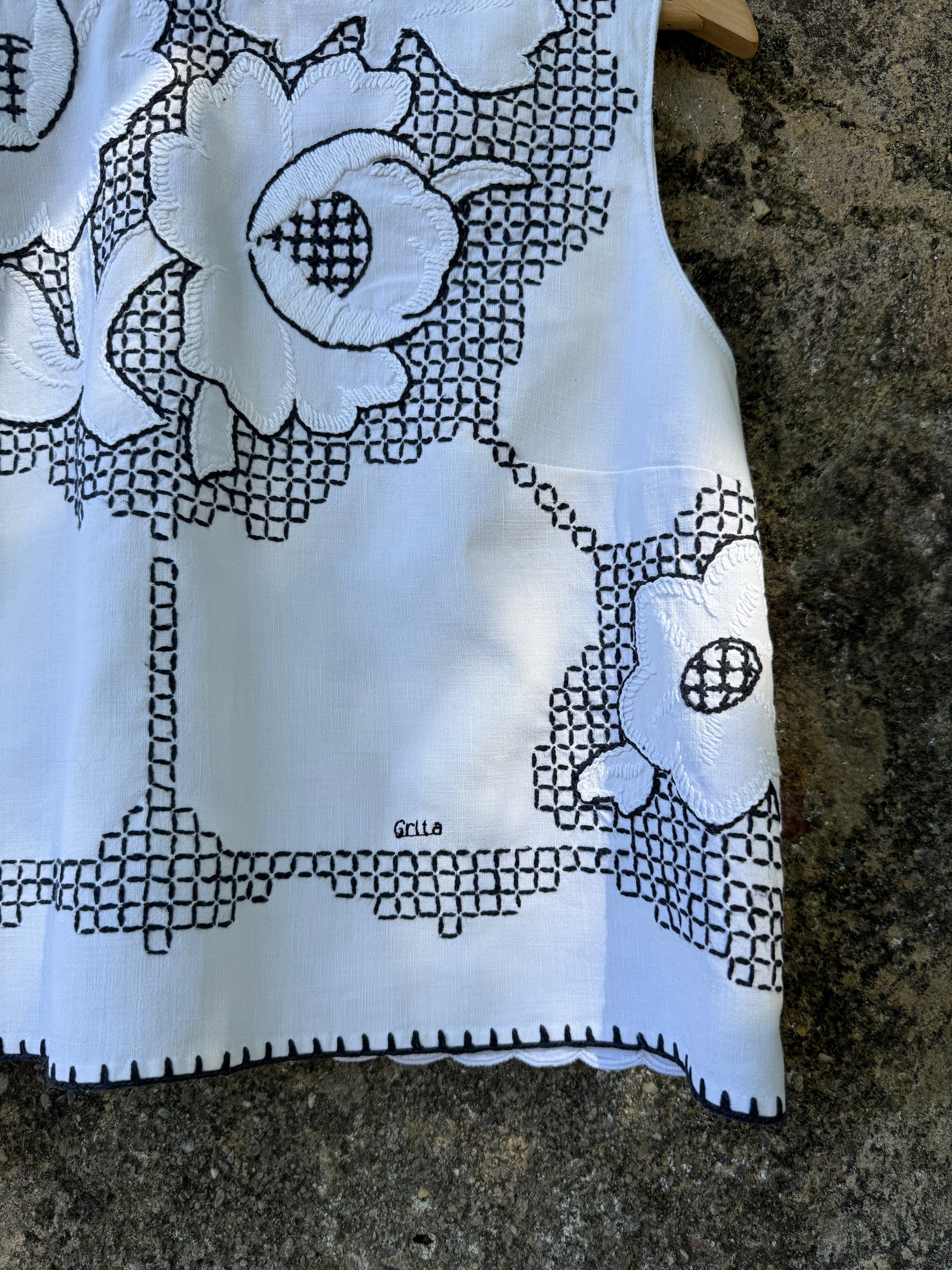 Top muito bonito feito com duas toalhas de chá bordadas à mão
