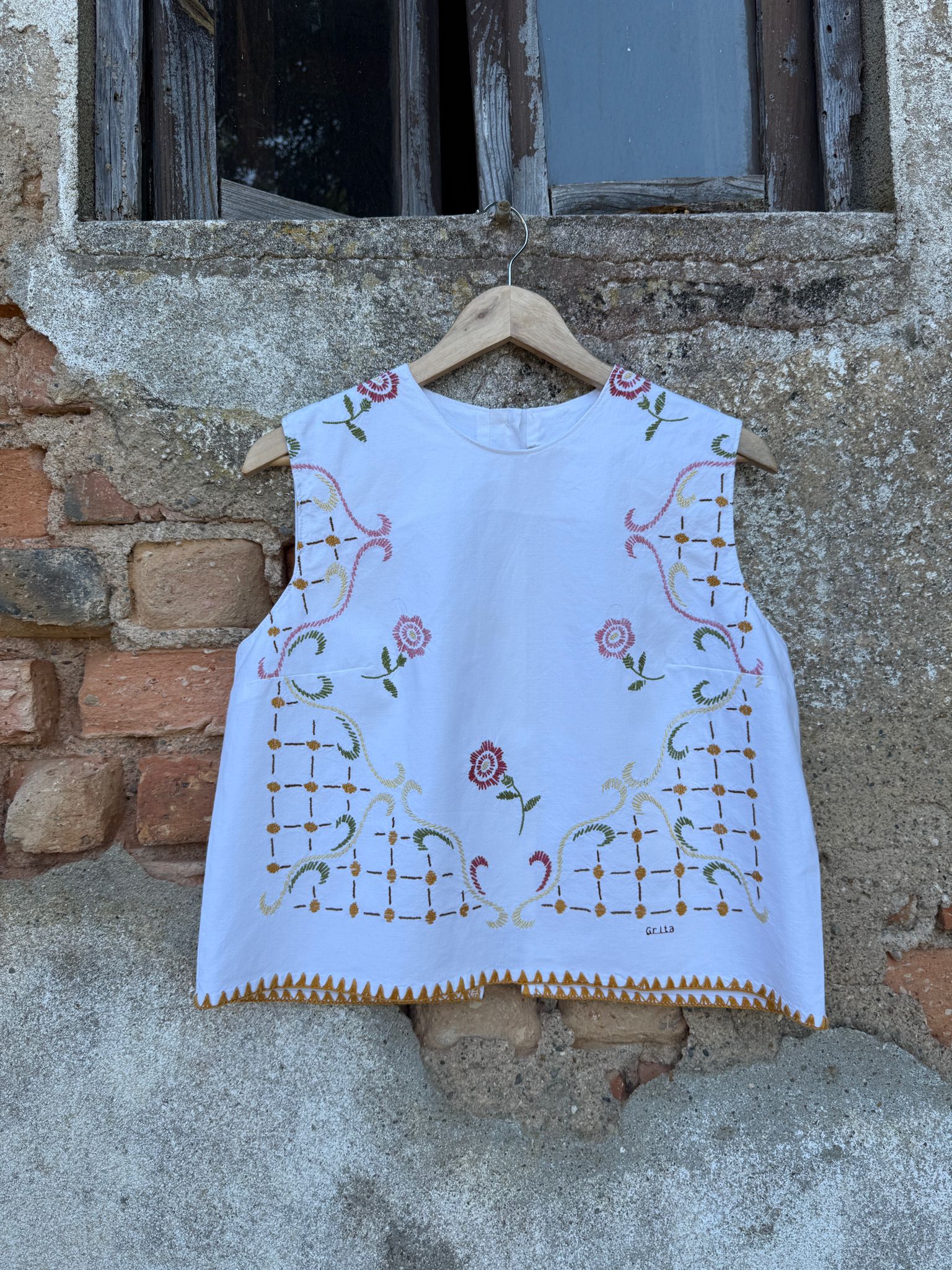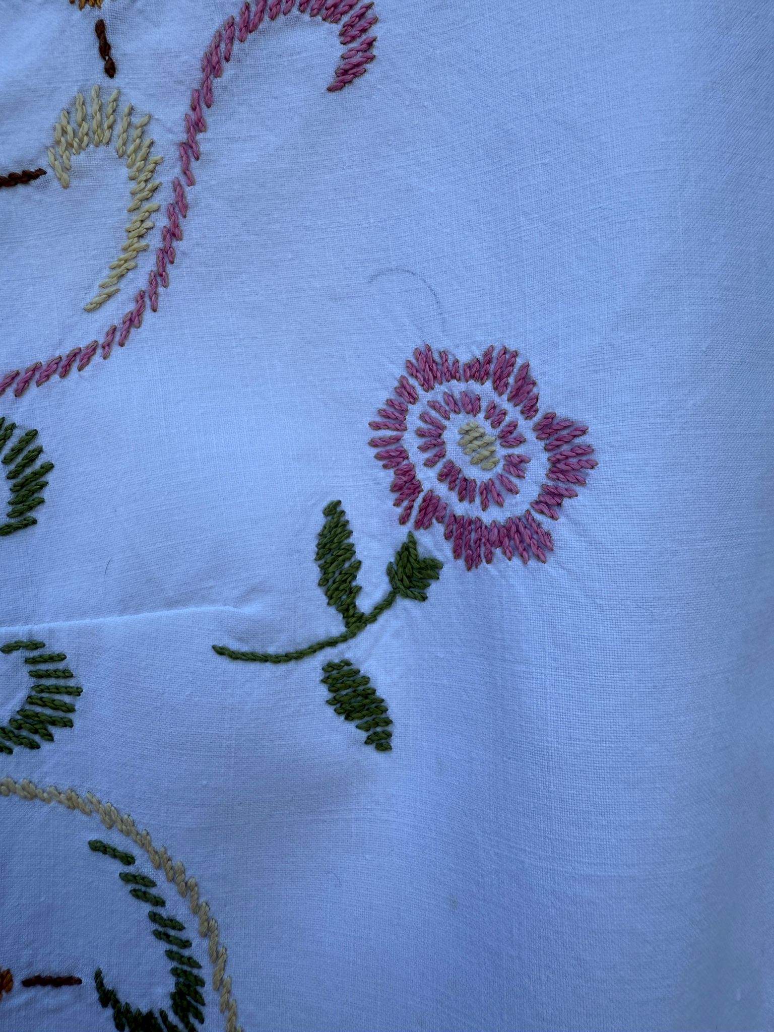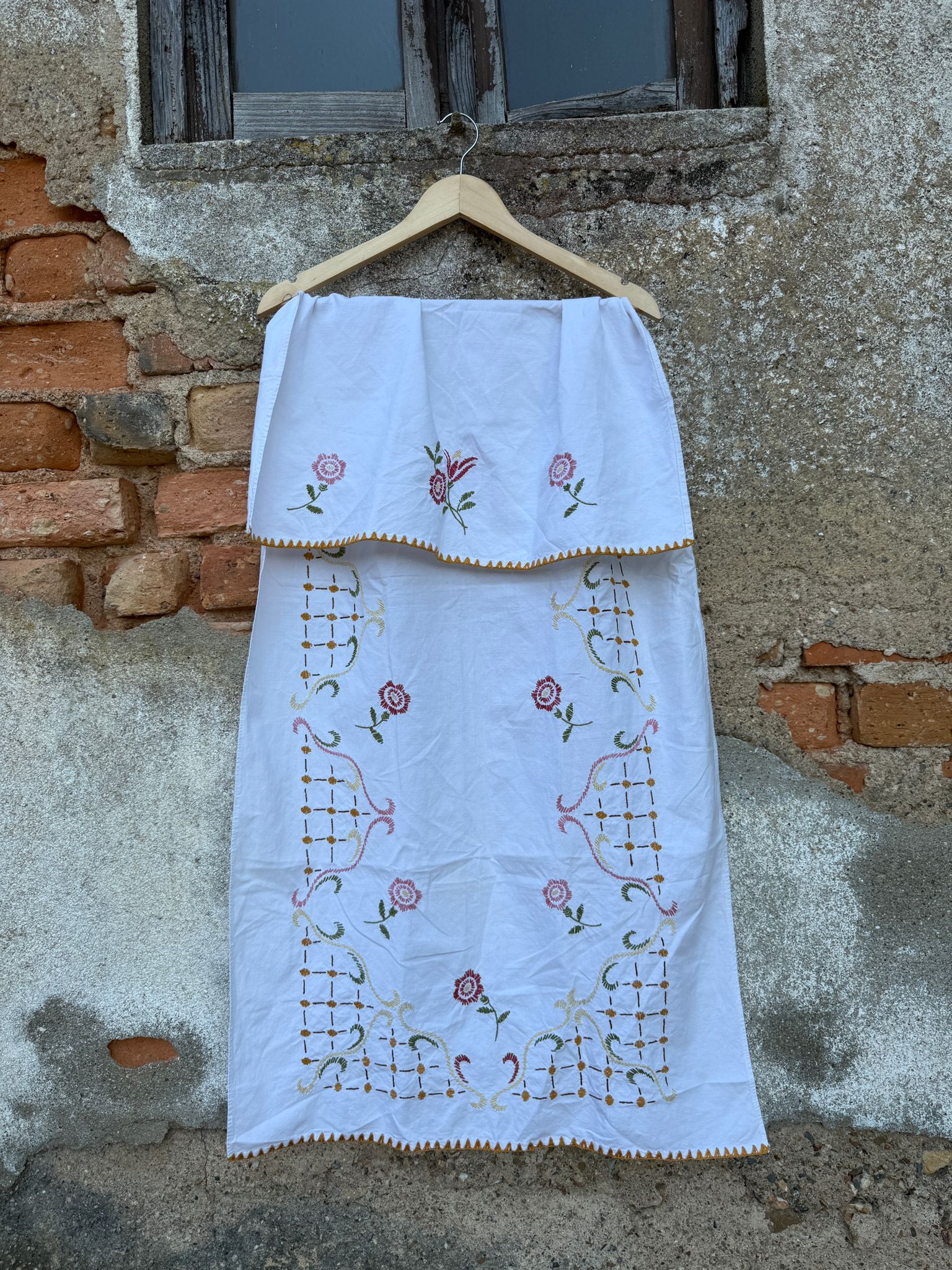 Top muito bonito feito com um corredor de mesa em linho bordado à mão