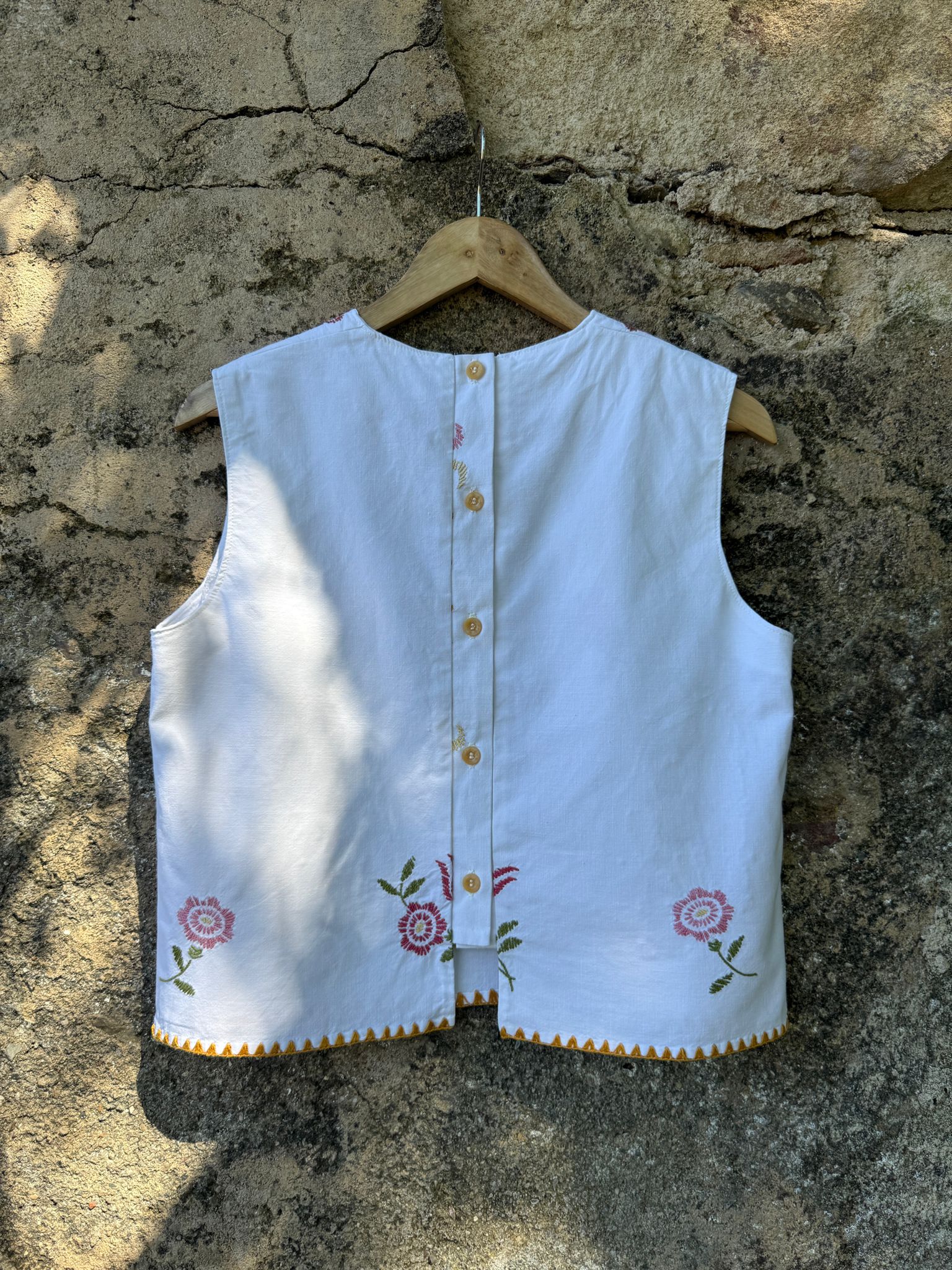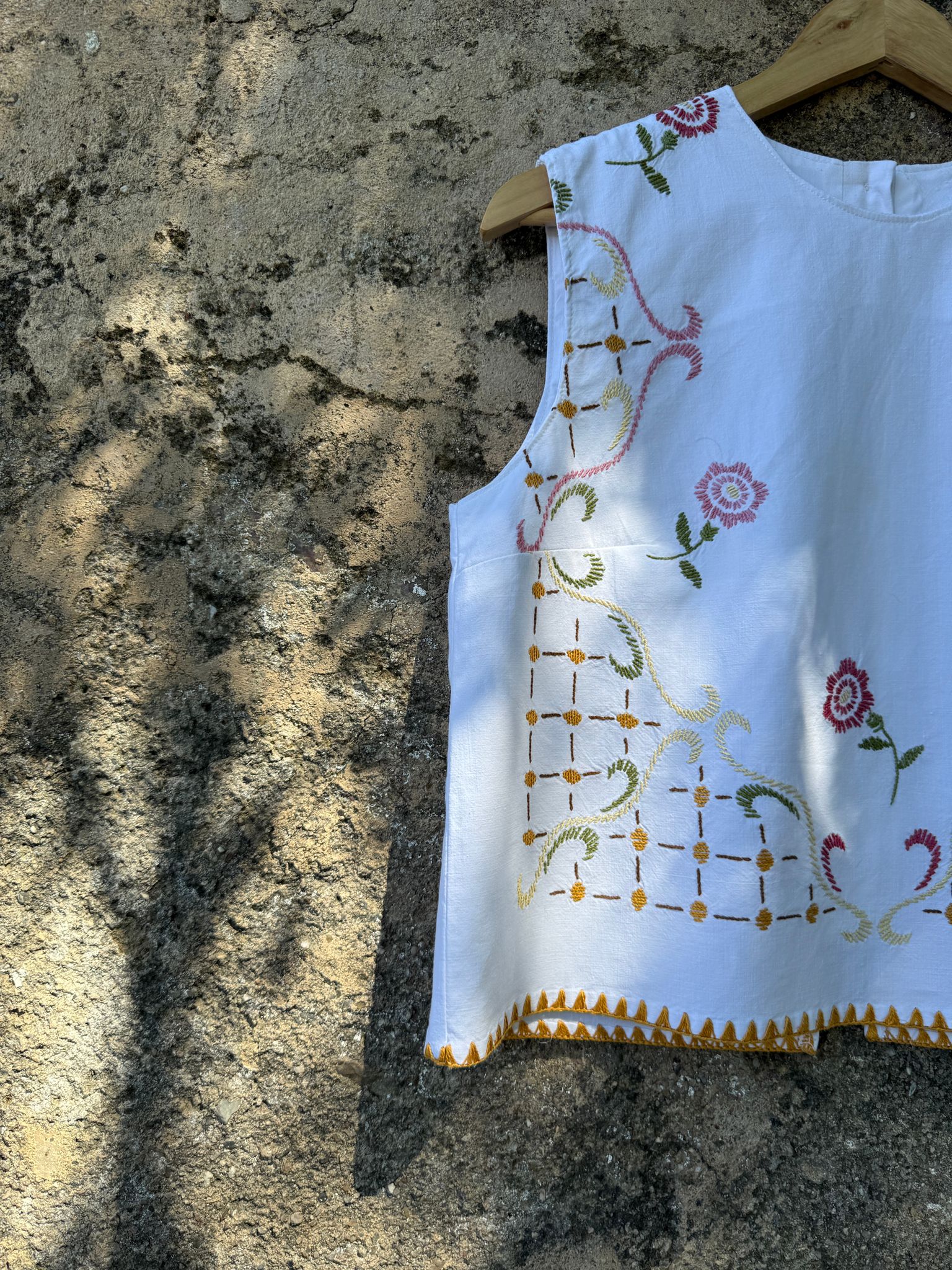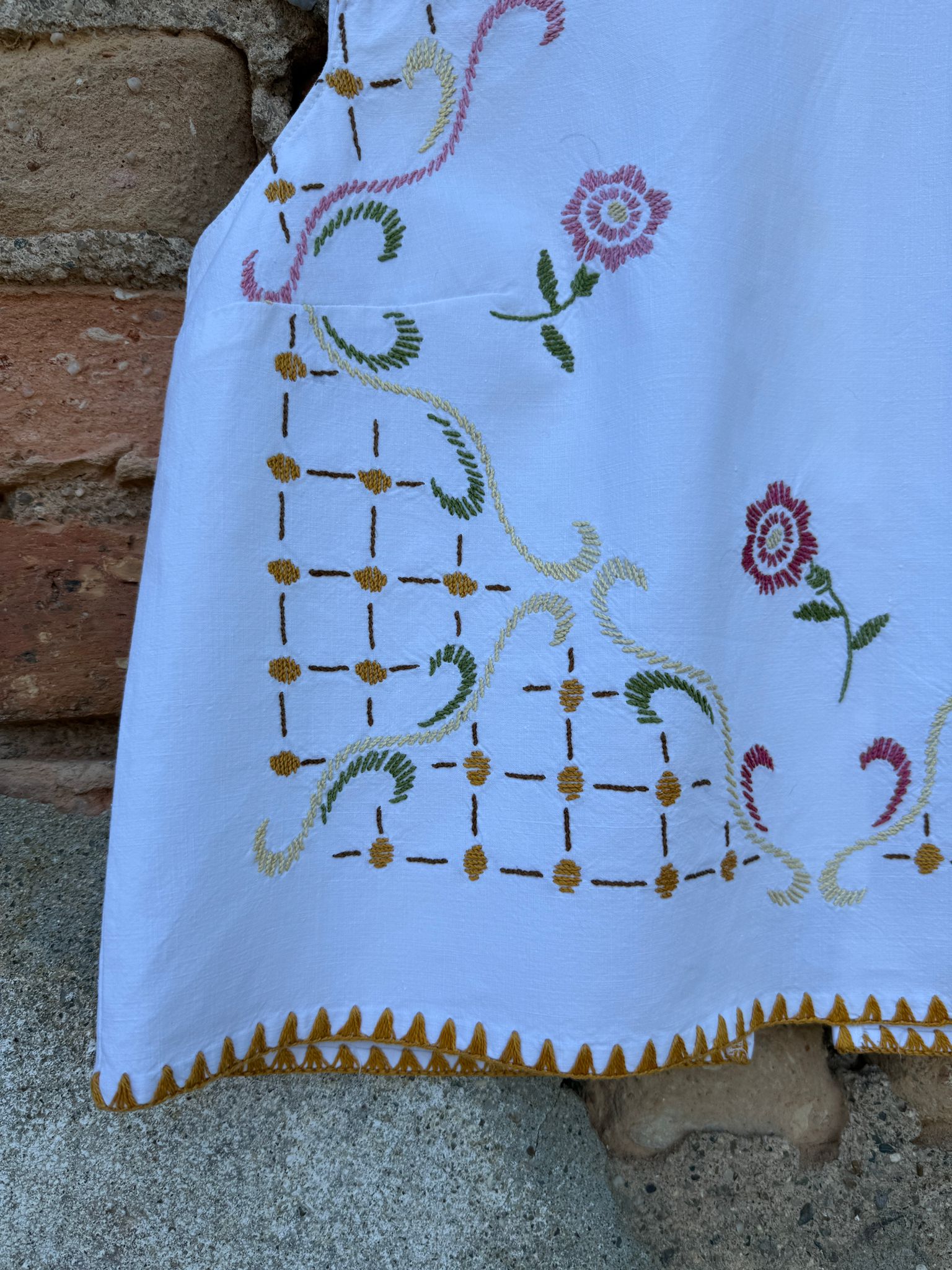 Top muito bonito feito com um corredor de mesa em linho bordado à mão