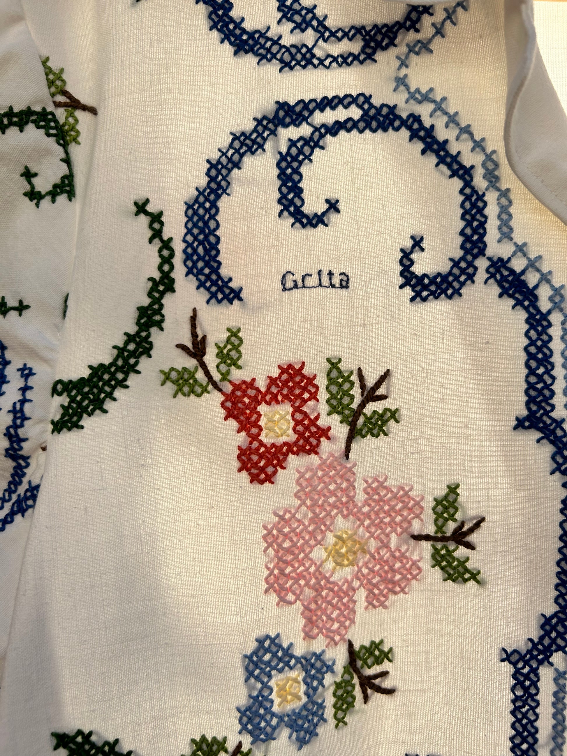 GRITA uses used fabrics giving them a new function. This shirt was an old tablecloth. Therefore, fabrics may have small imperfections or signs of use that we try to disguise as best as possible.