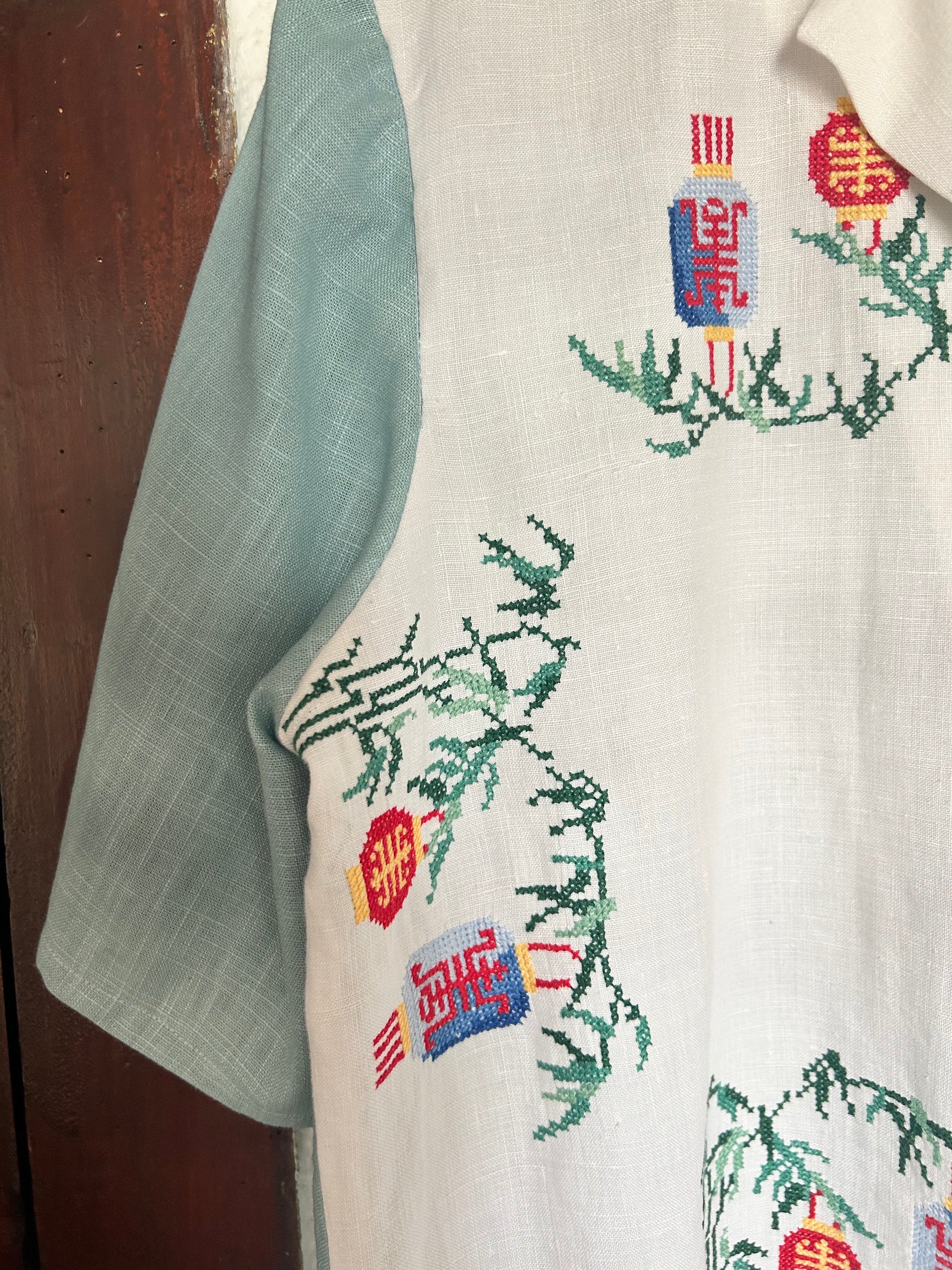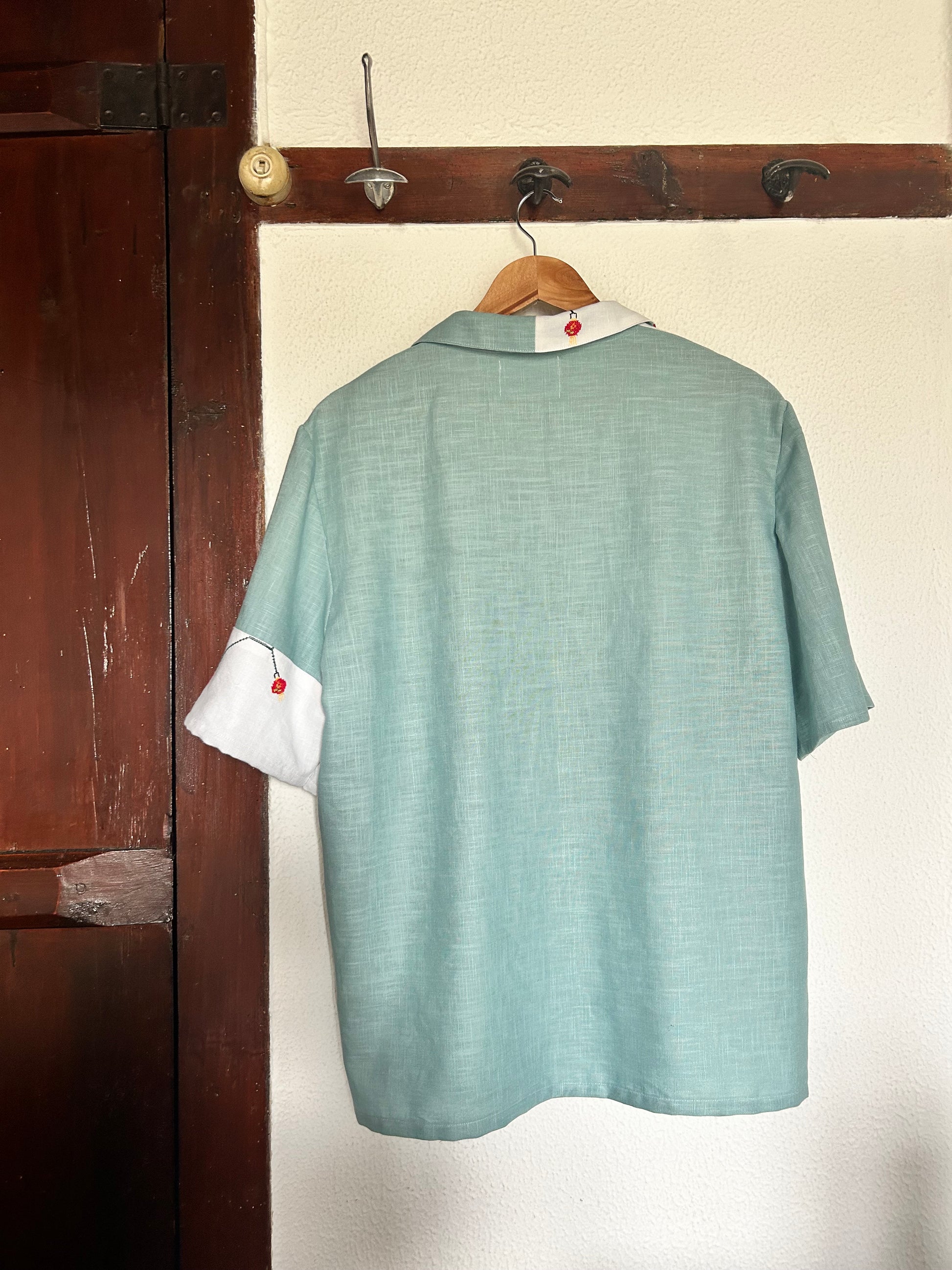 Bonita camisa com duas partes uma bordada e a outra lisa em linho