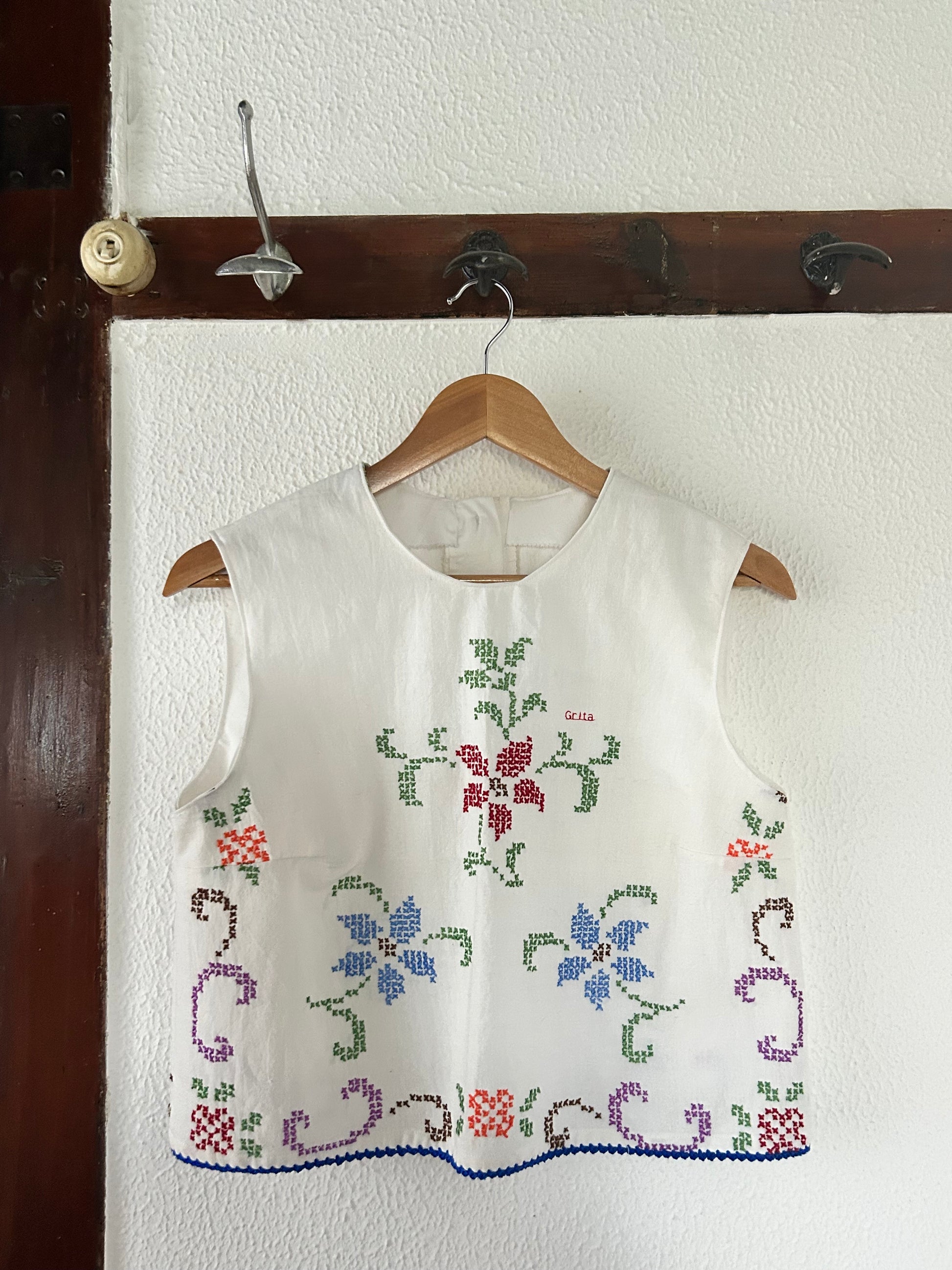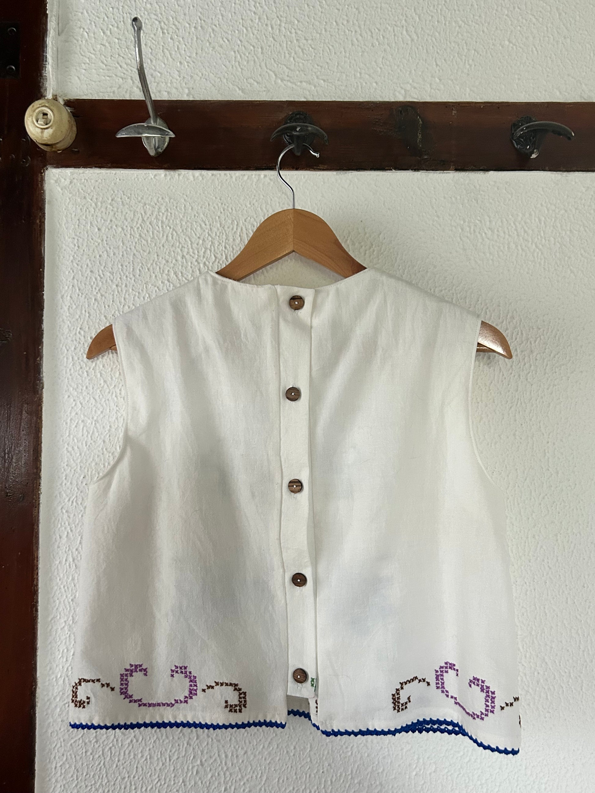 Beautiful handmade top with cross stitch embroidery. Perfect to pair with a pair of high-waisted pants
