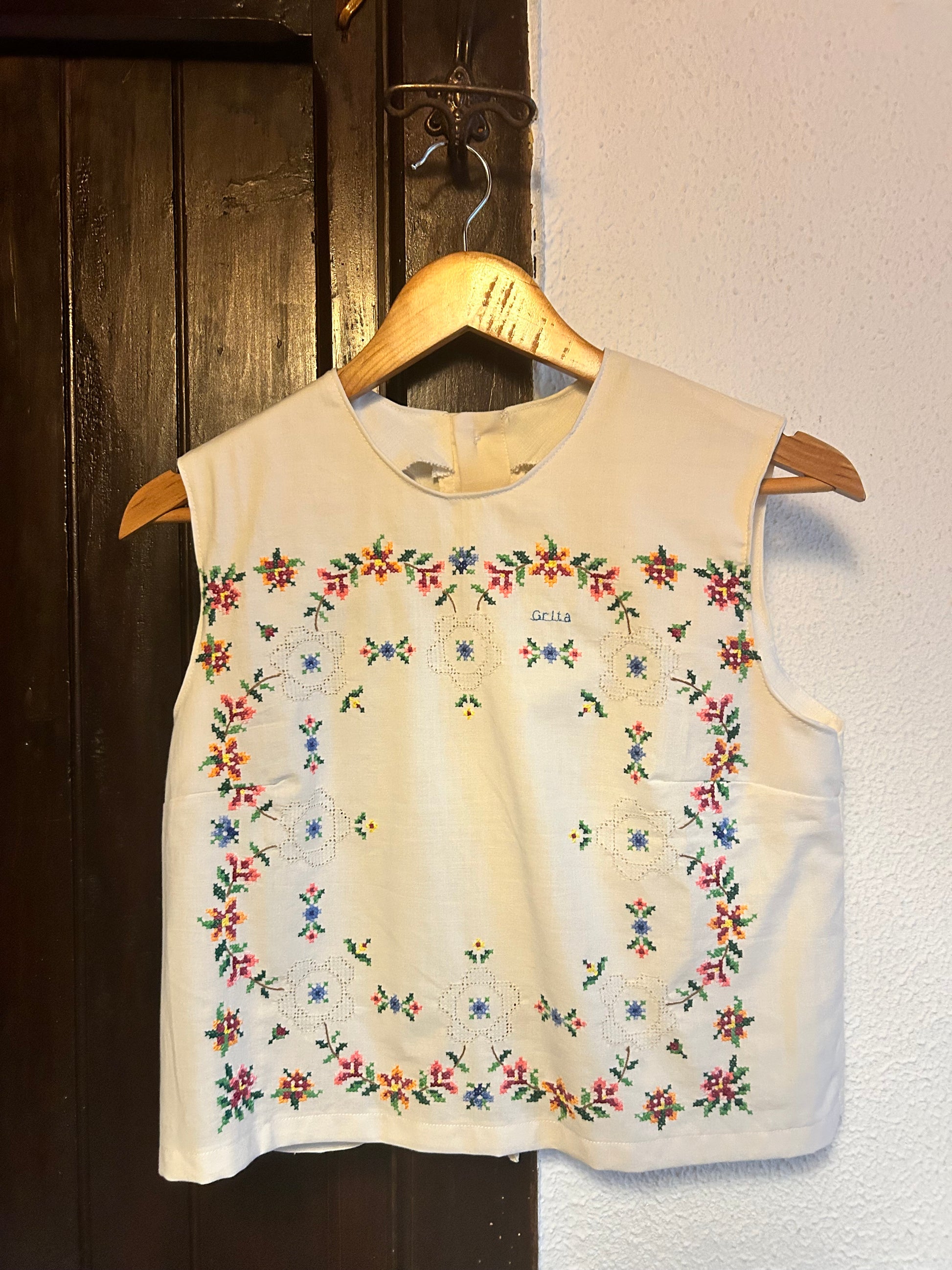 This top is made with 2 tea towels. Fabric used may have slight imperfections or signs of use.