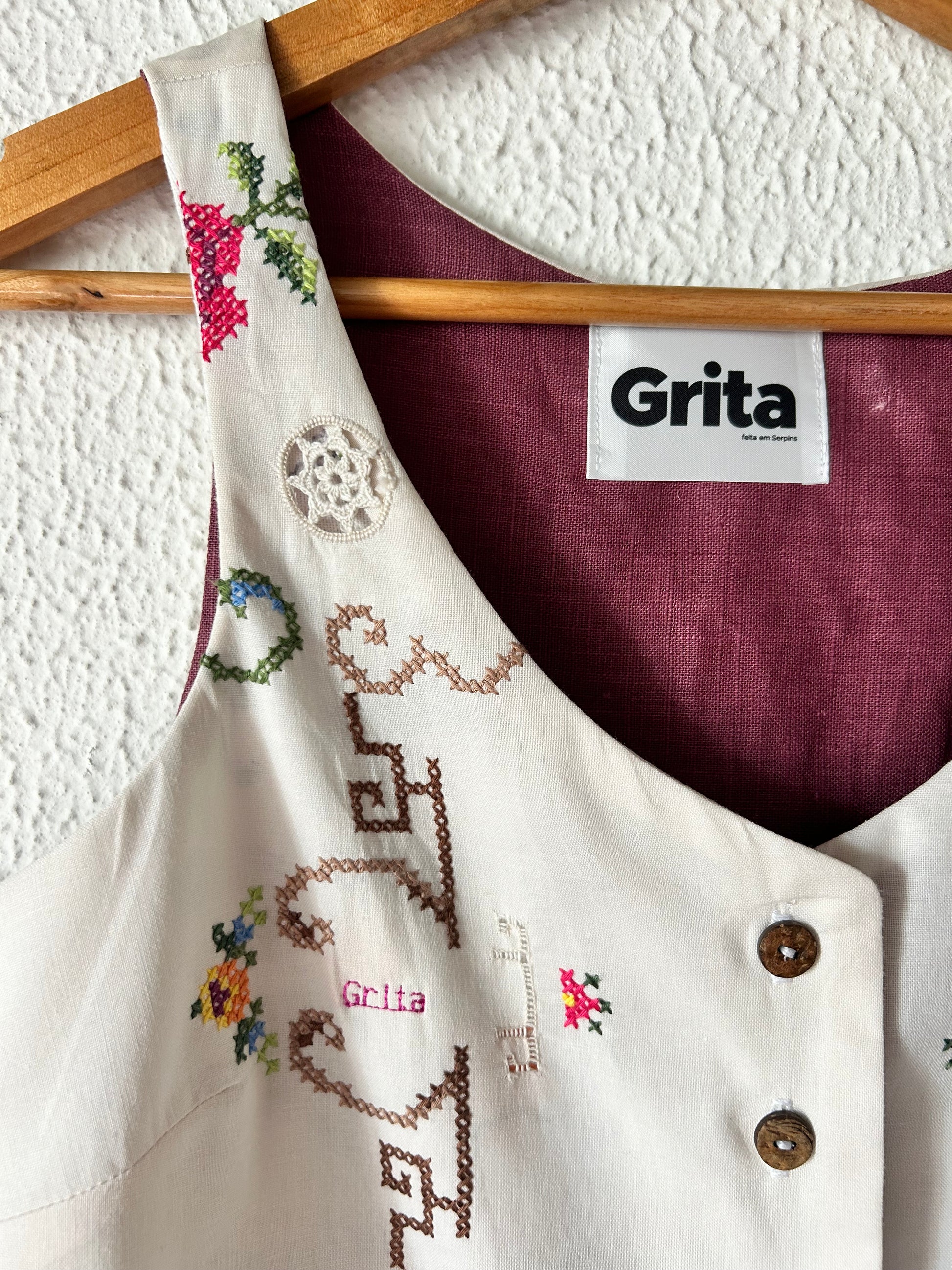 - A GRITA faz reciclagem de tecidos (toalhas de mesa, cortinas, panos de cozinha, guardanapos entre outros). Por isso, é possível que algumas das peças tenham pequenas imperfeições ou sinais de uso. Faz parte da magia. Se não queres uma peça de roupa com história não estás a comprar no sítio certo;