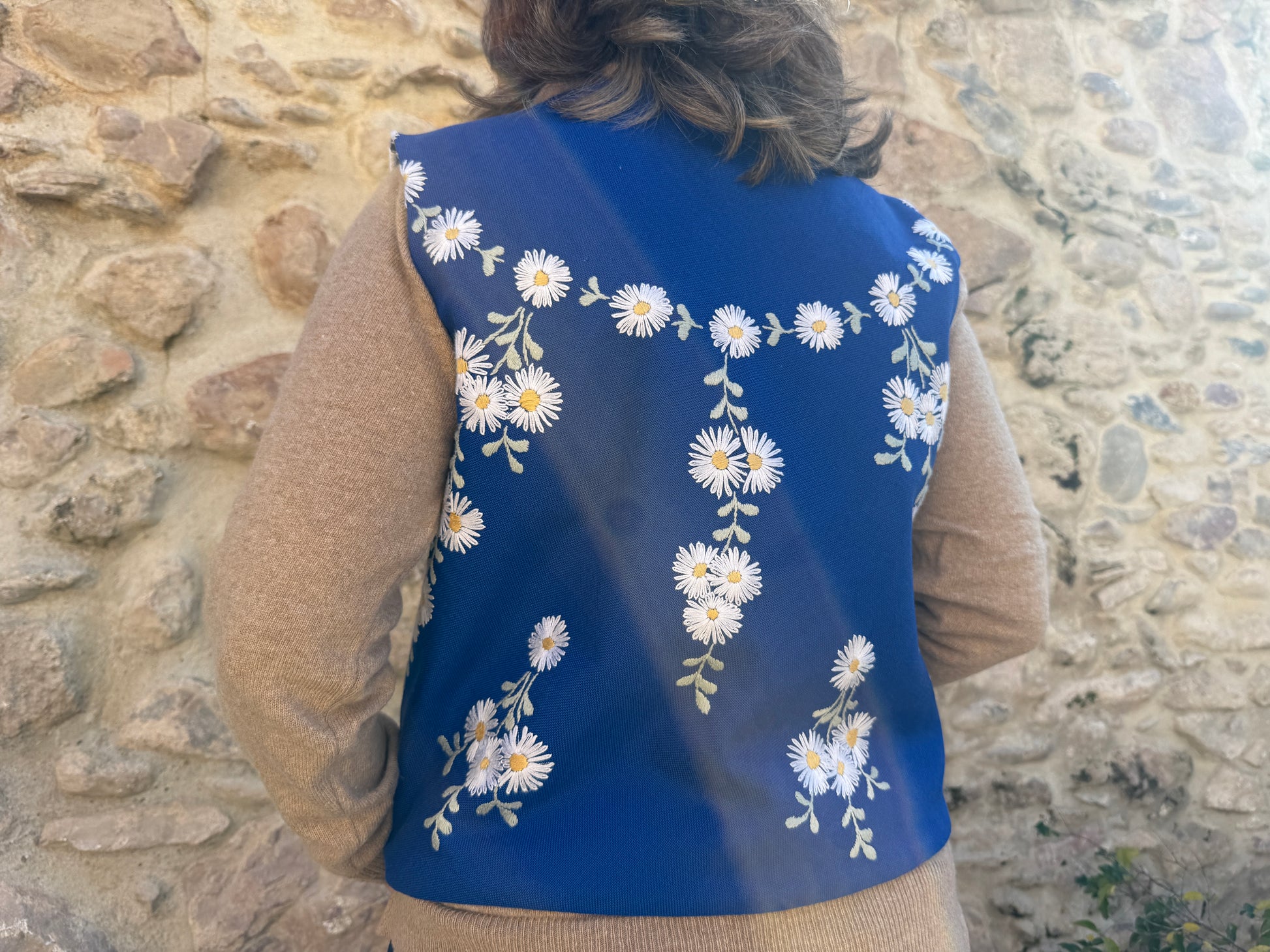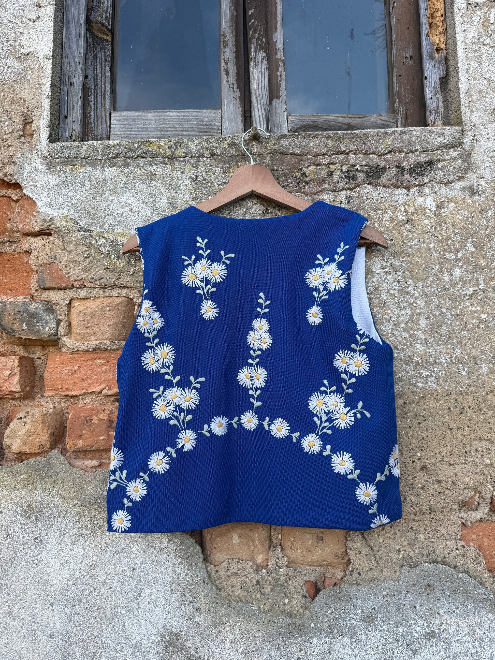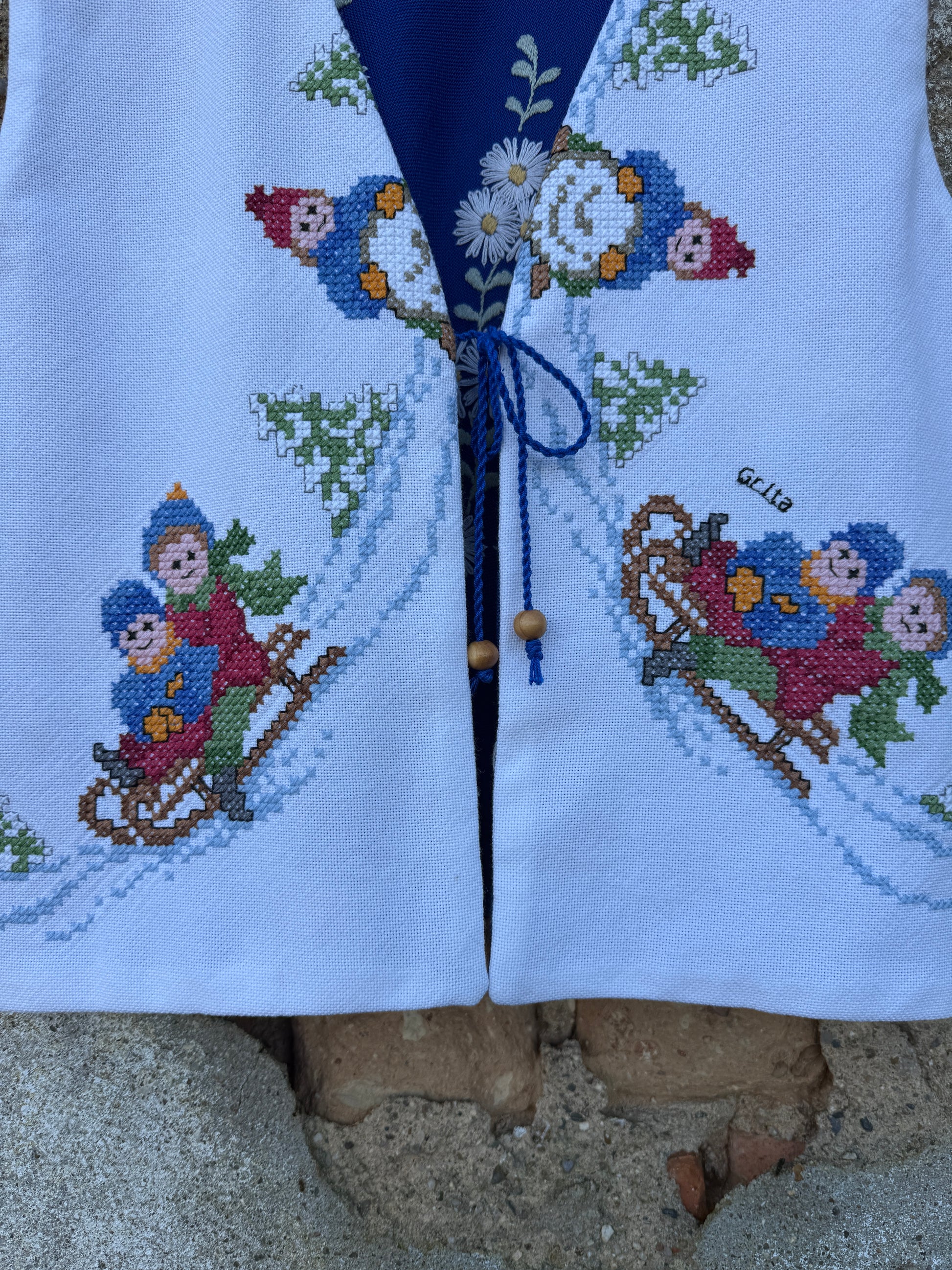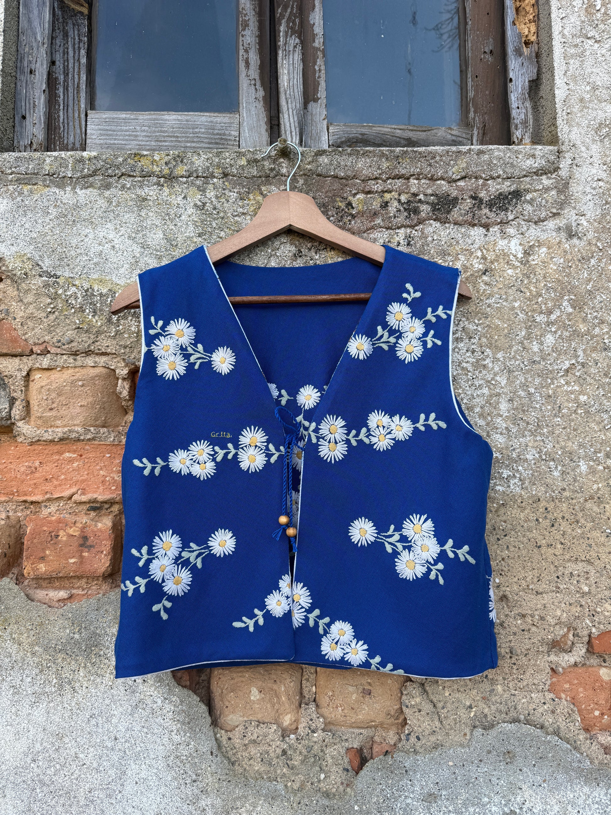 Colete reversível feito com uma toalha de mesa e uma toalha de chá