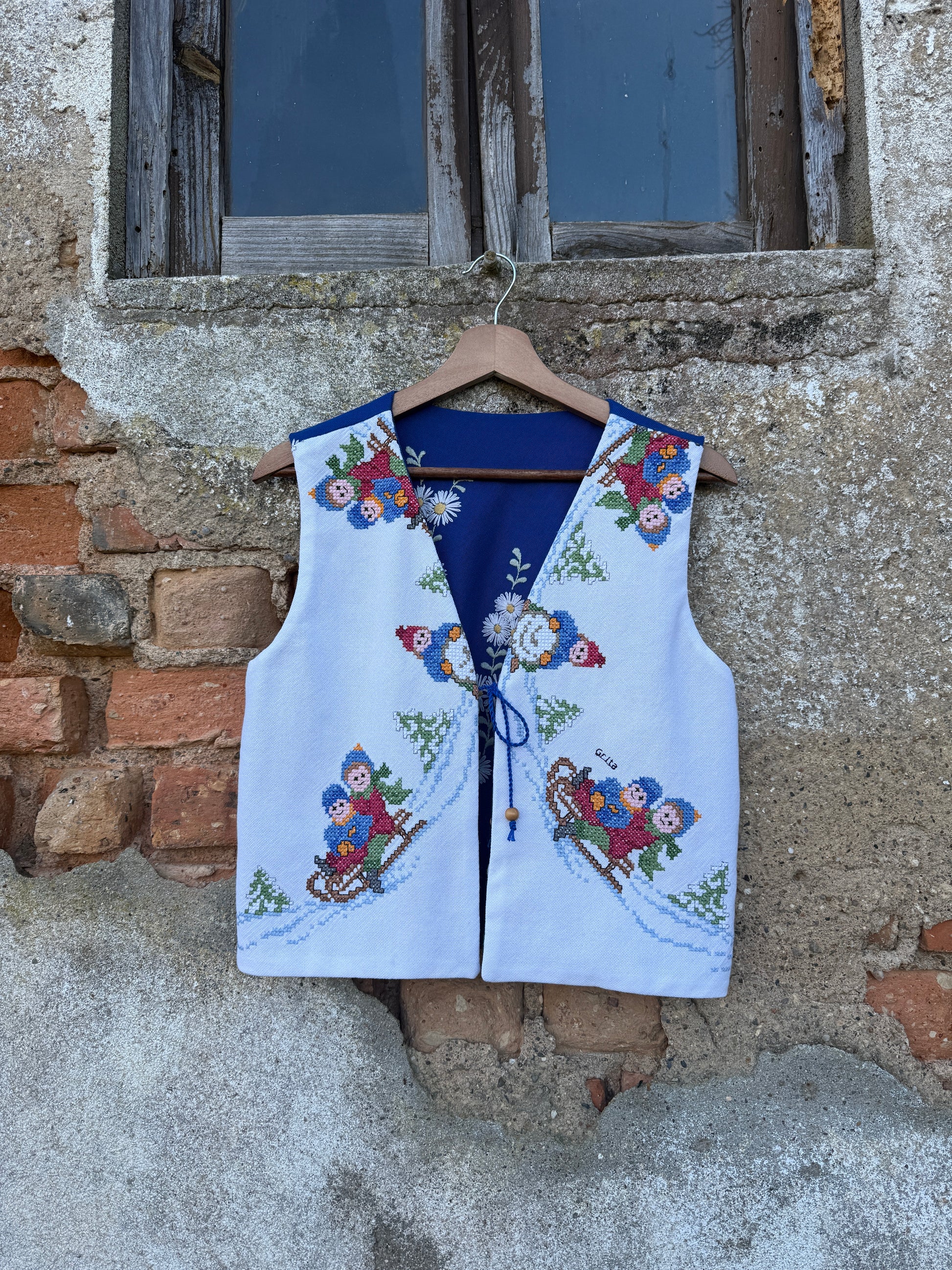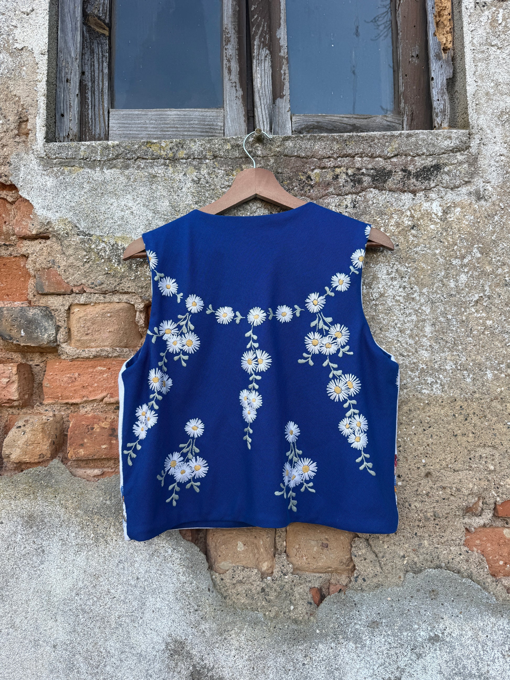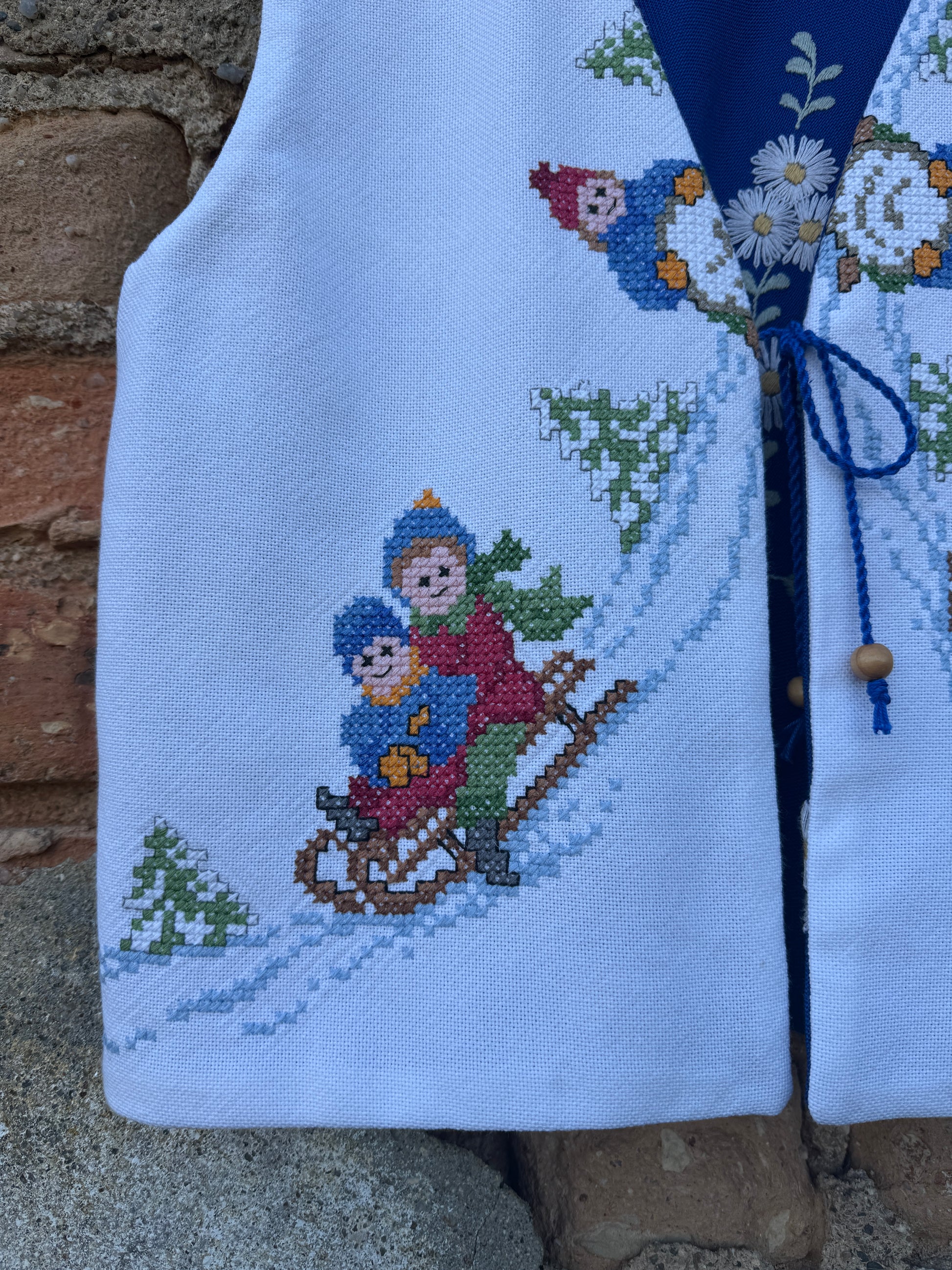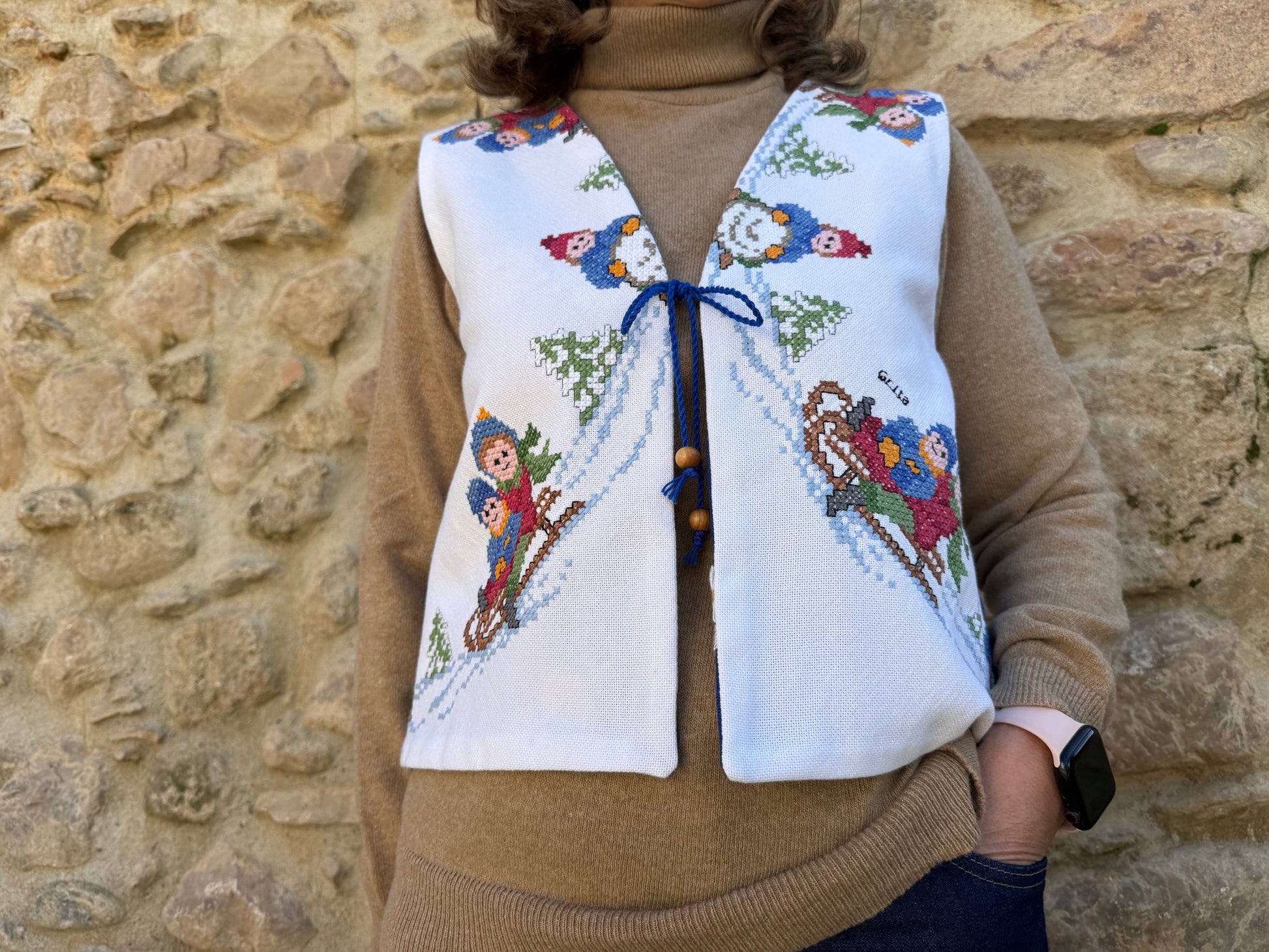 Colete reversível feito com uma toalha de mesa e uma toalha de chá