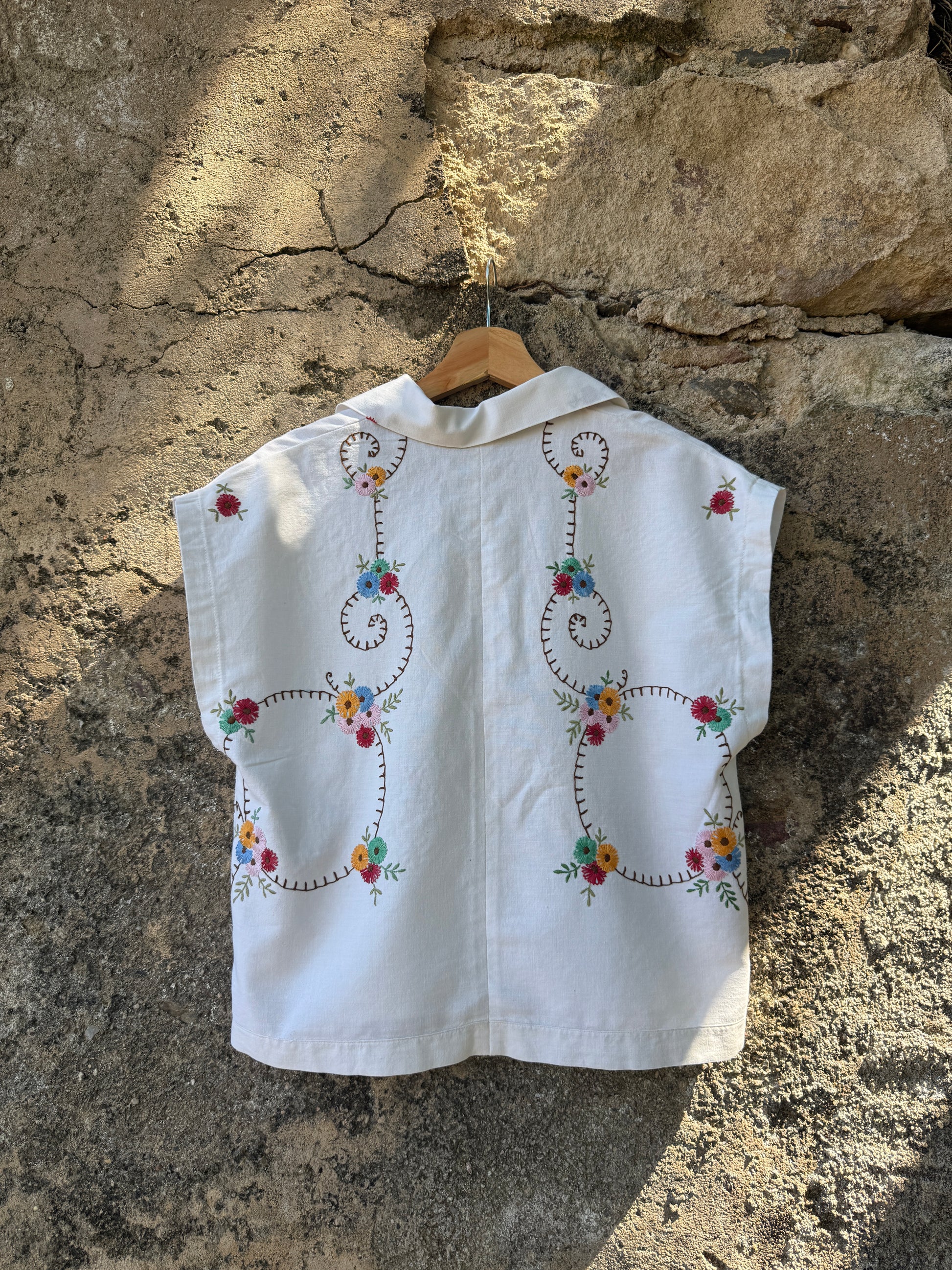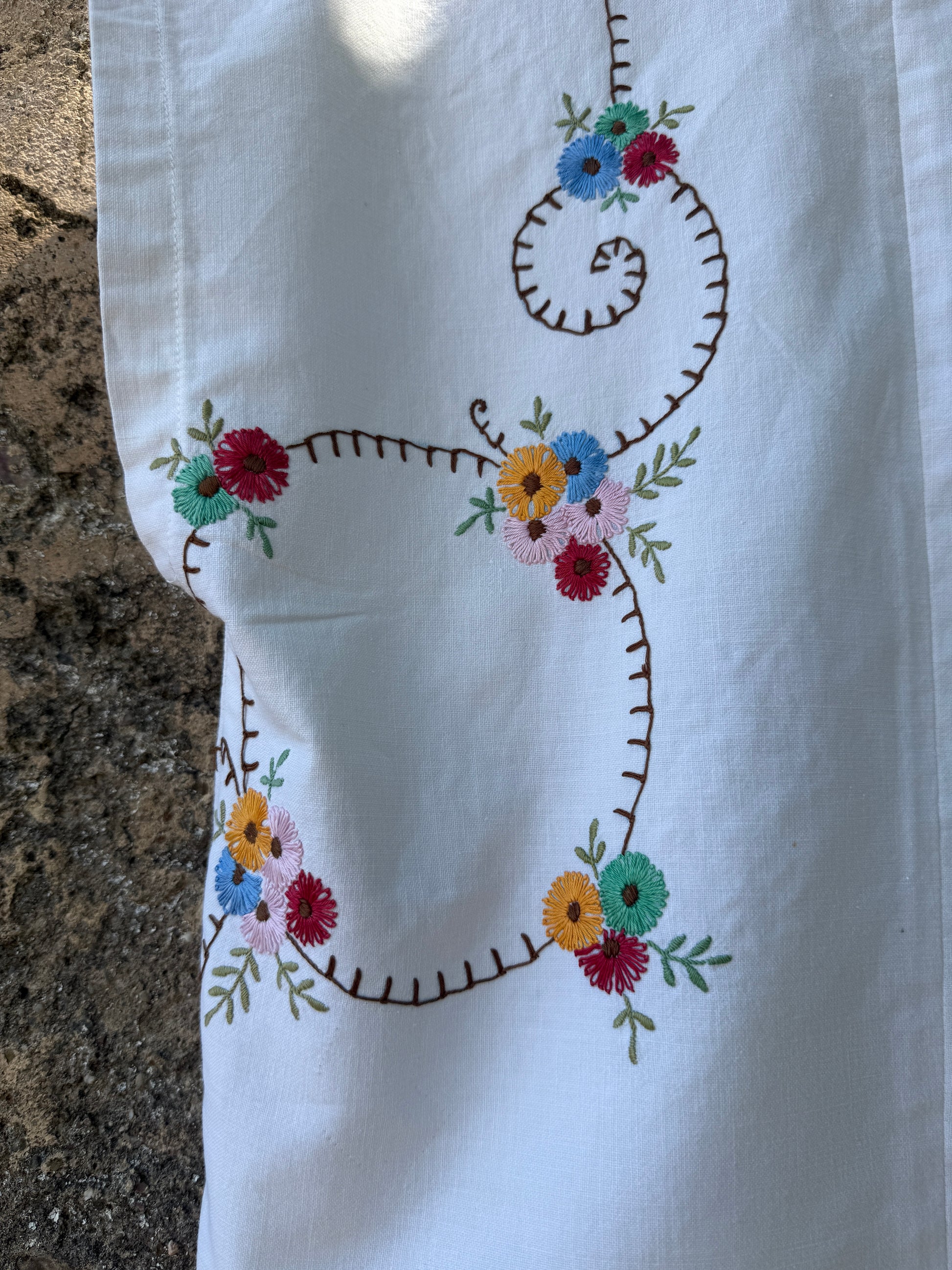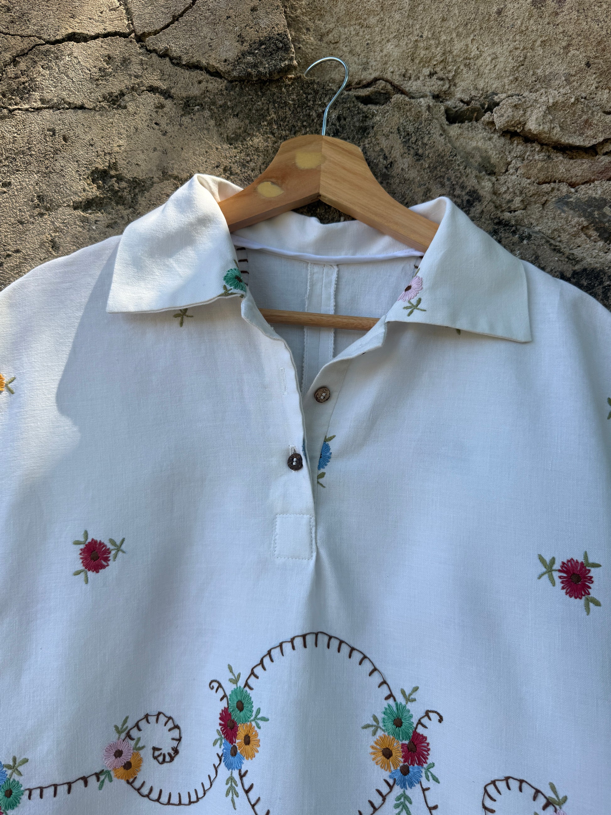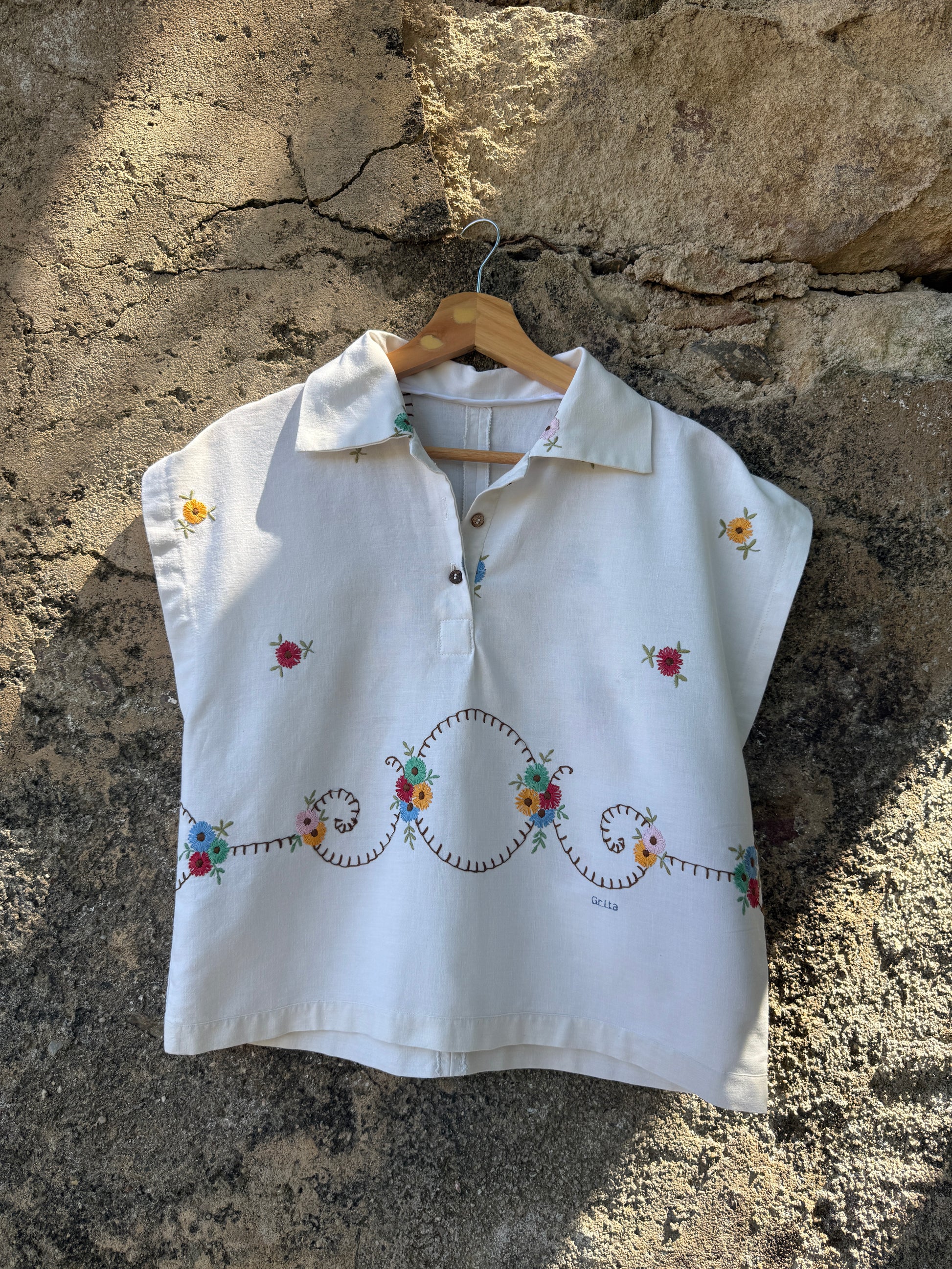 Blusa muito bonita feita com uma toalha de mesa bordada à mão