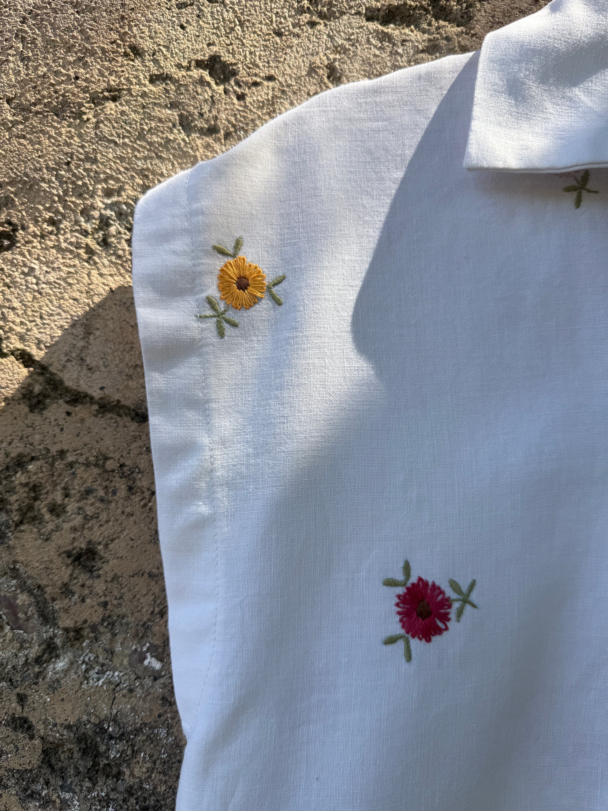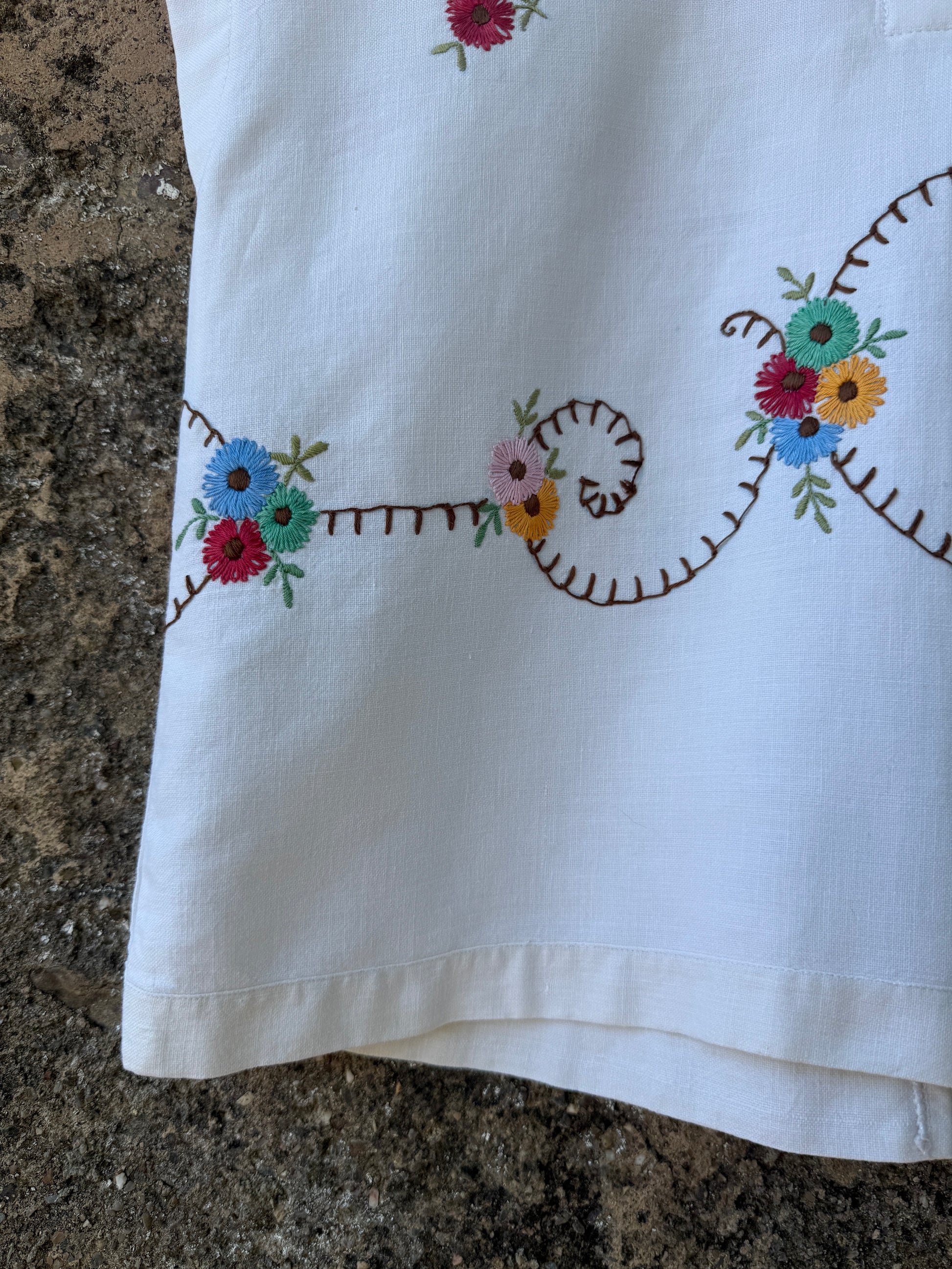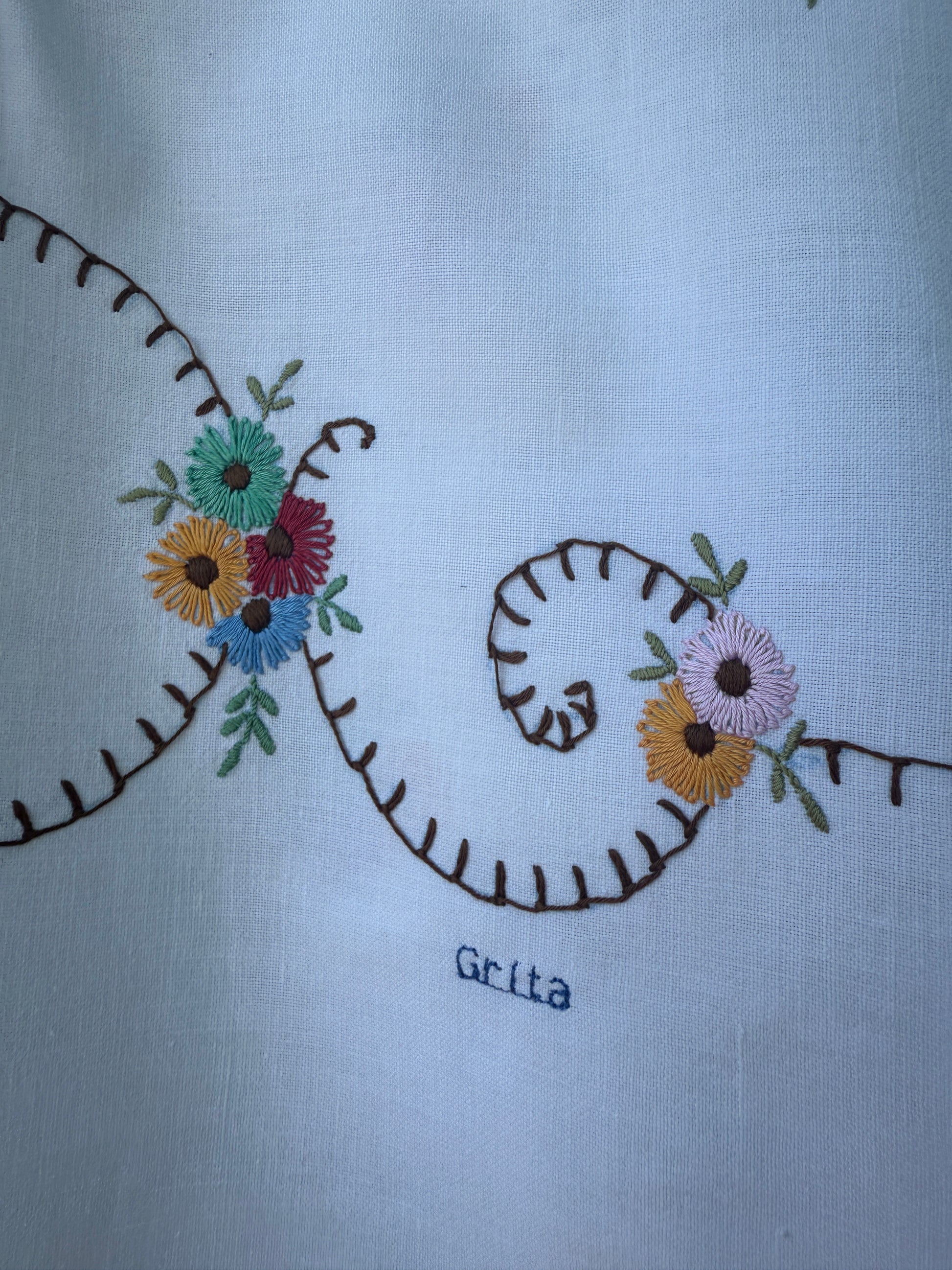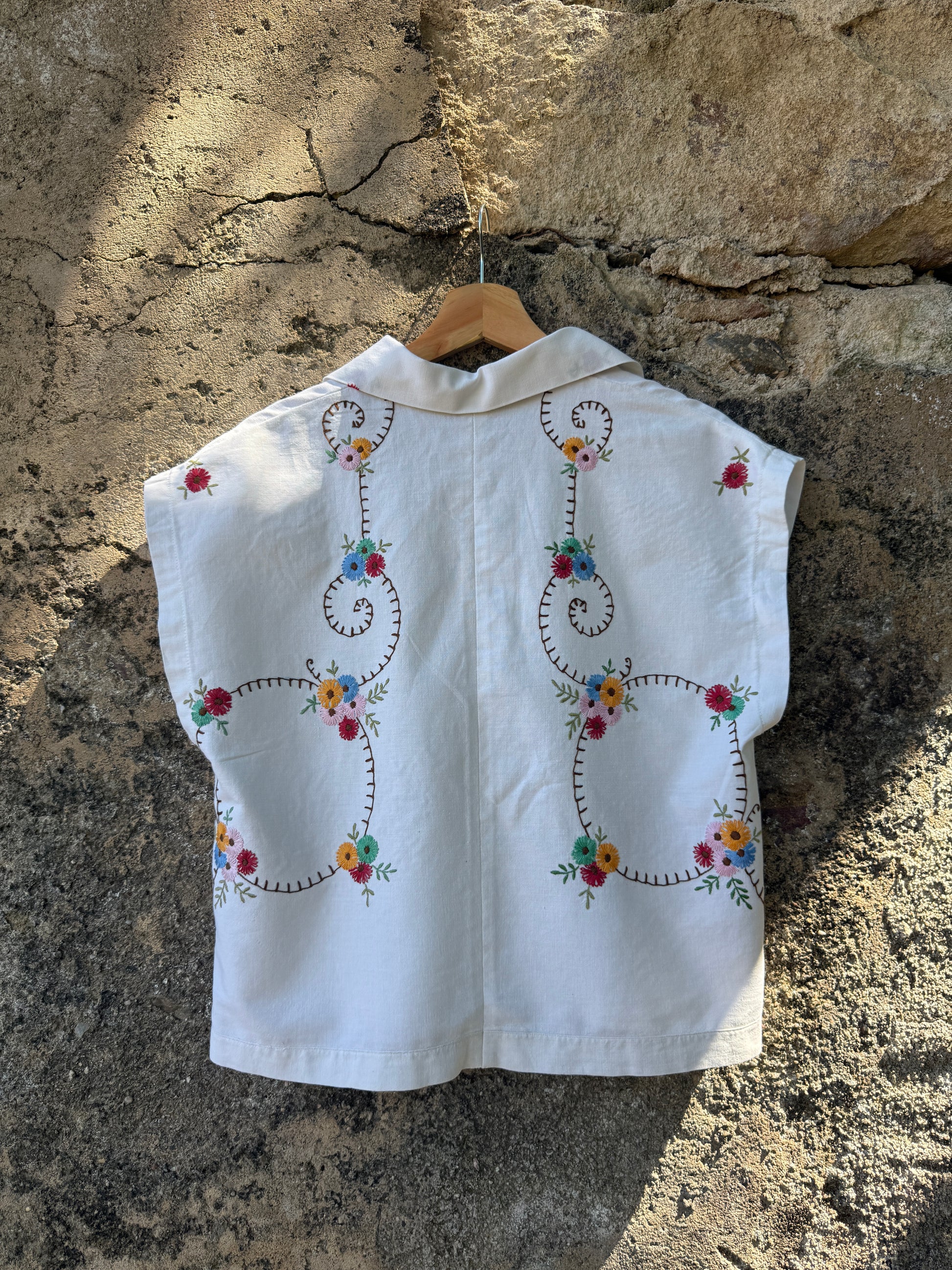 A beautiful blouse made with a hand-embroidered tablecloth.