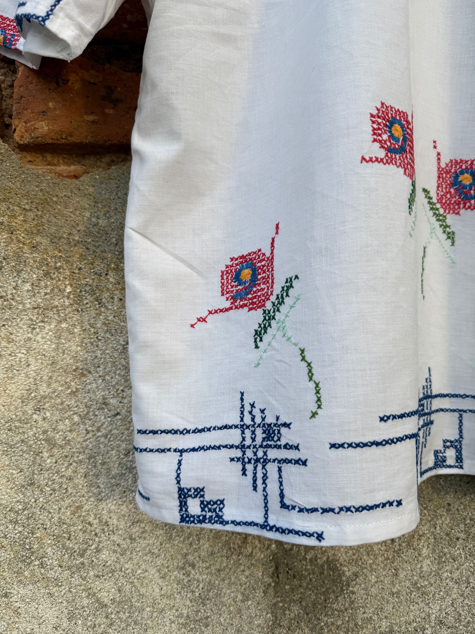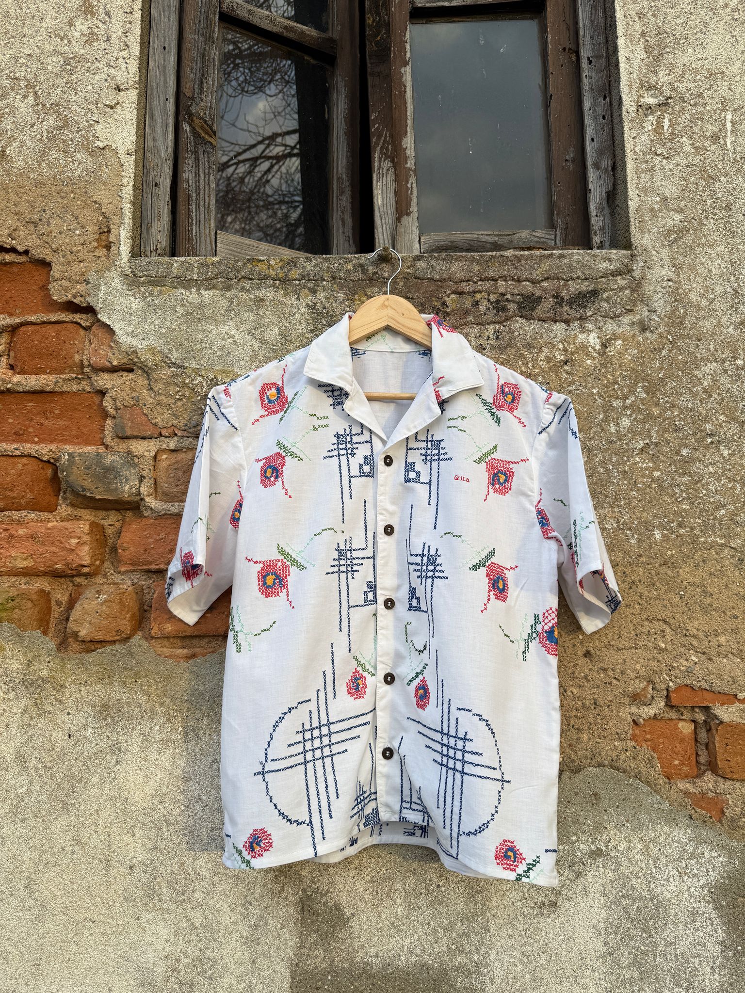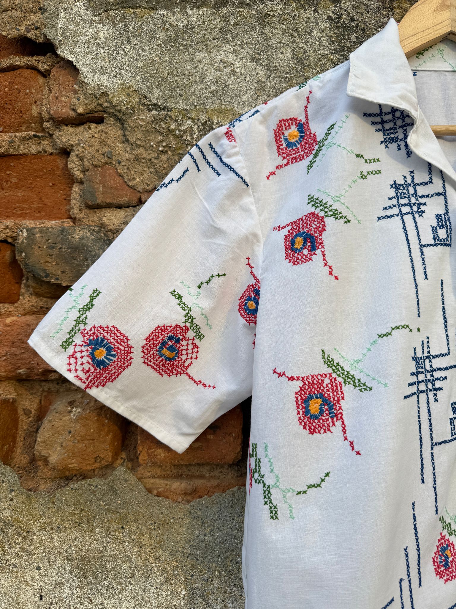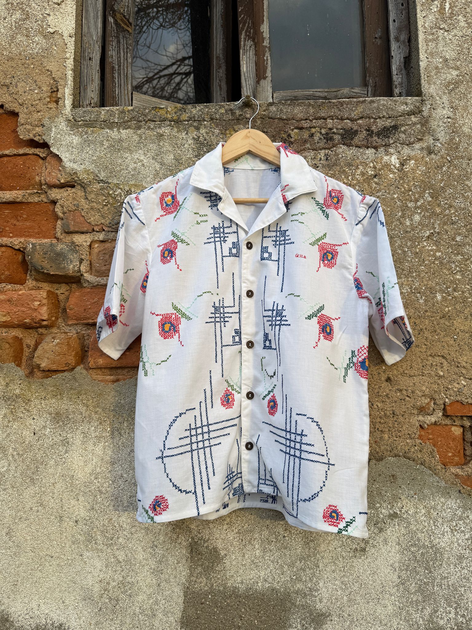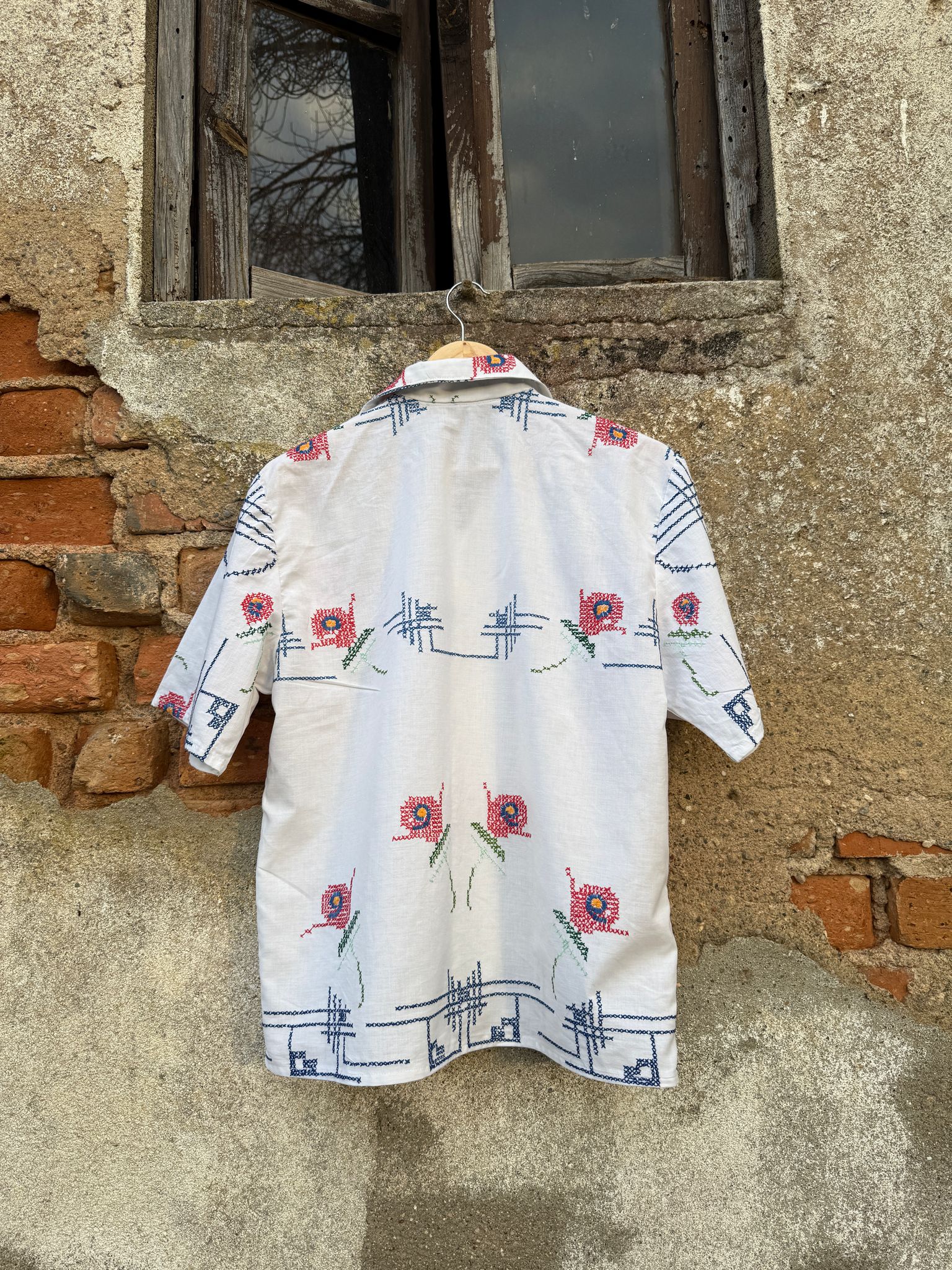 Bonita camisa, bordada à mão feita com uma toalha de mesa
