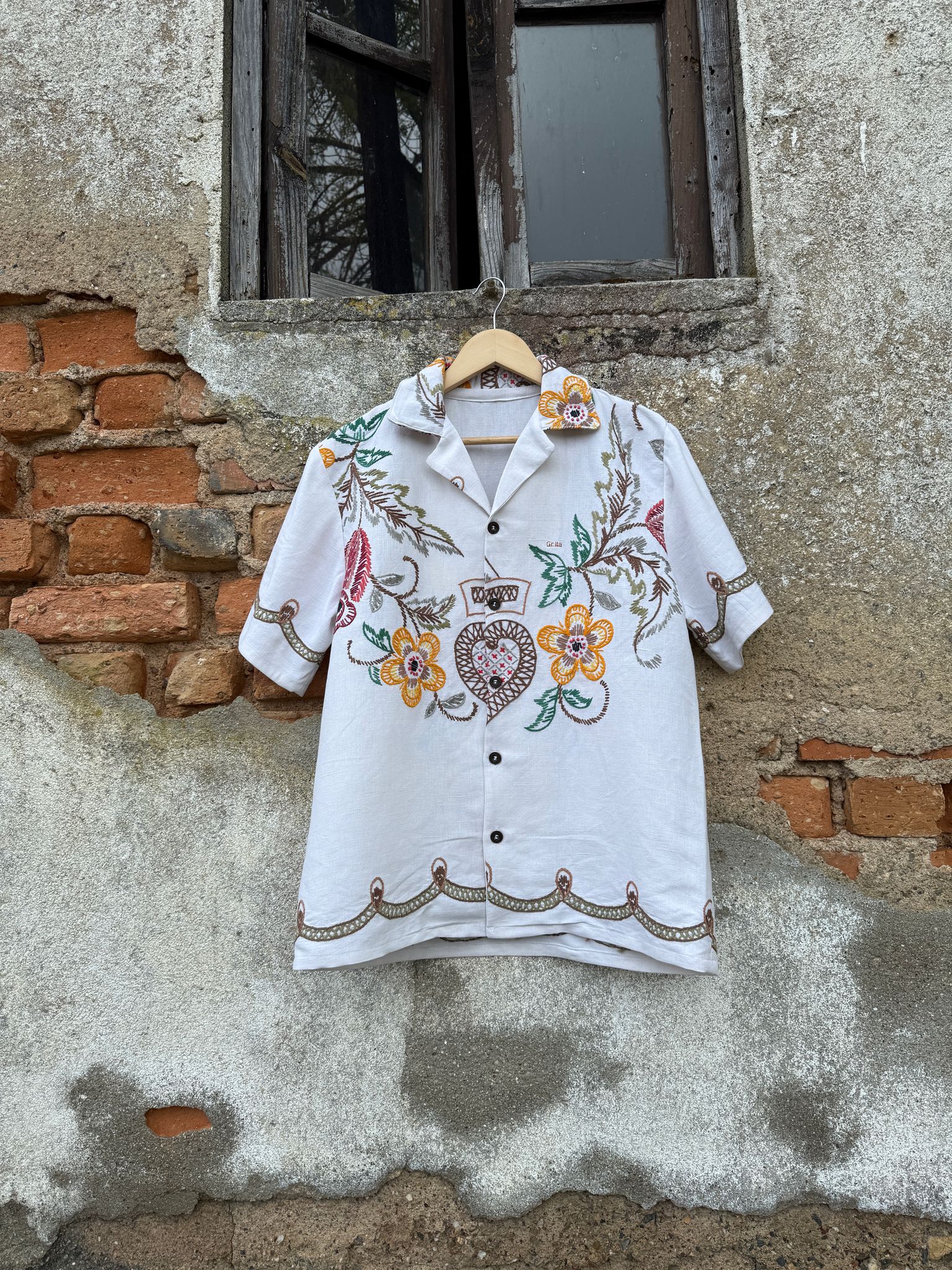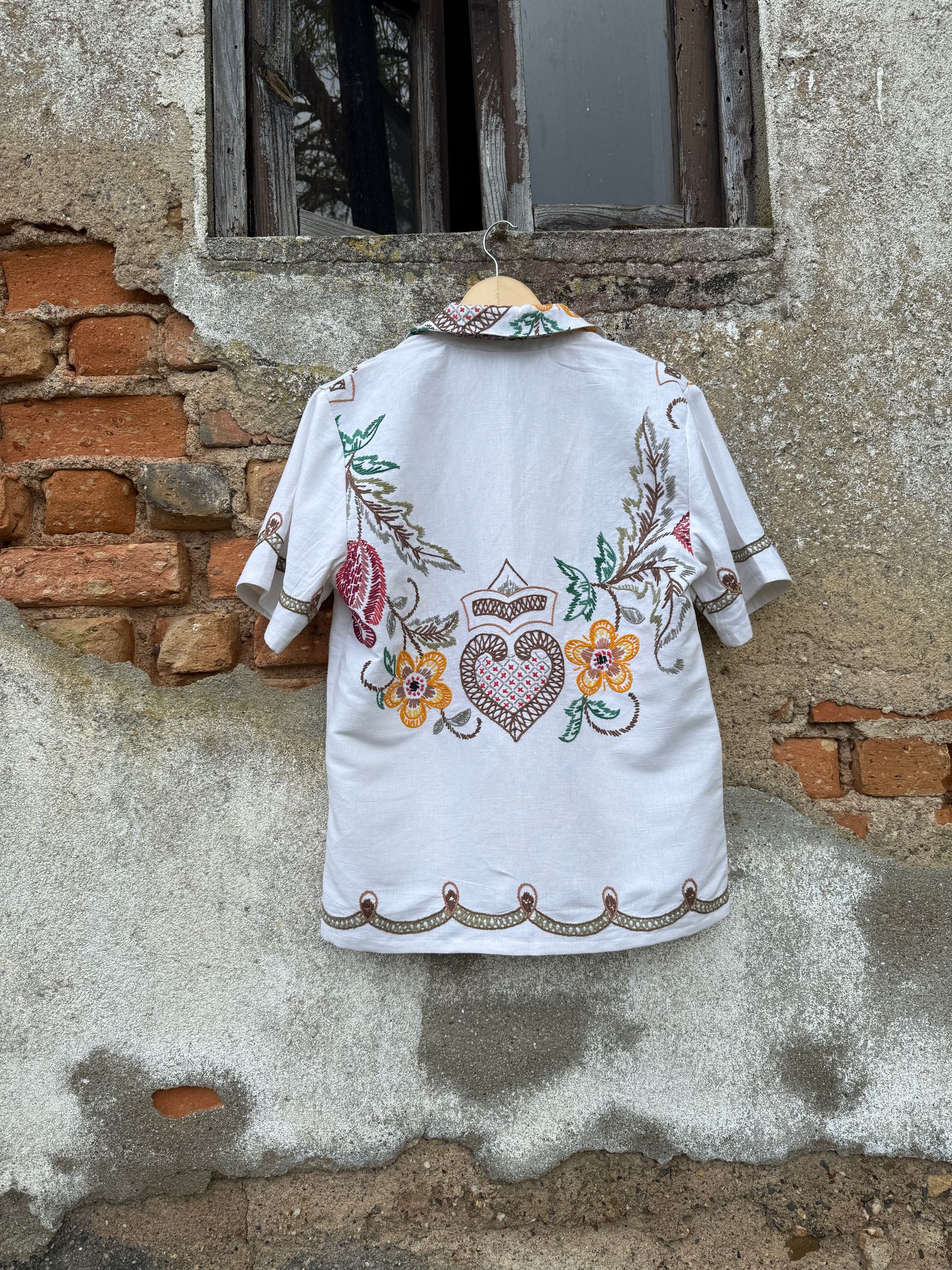Very special shirt, made from a hand-embroidered tablecloth