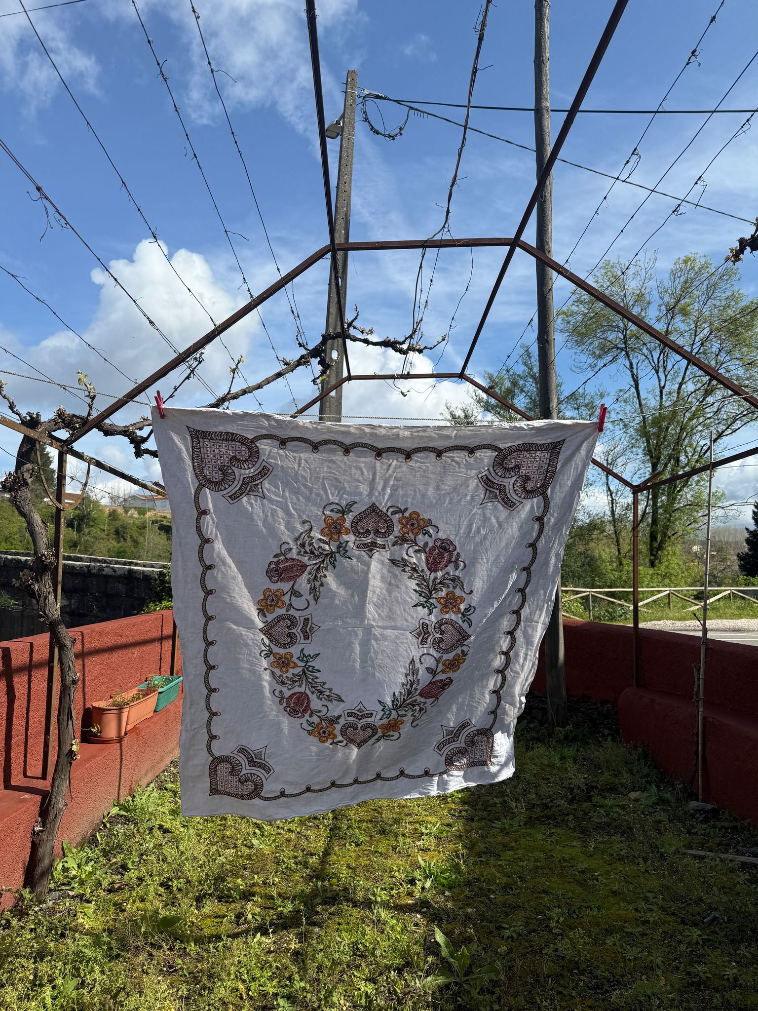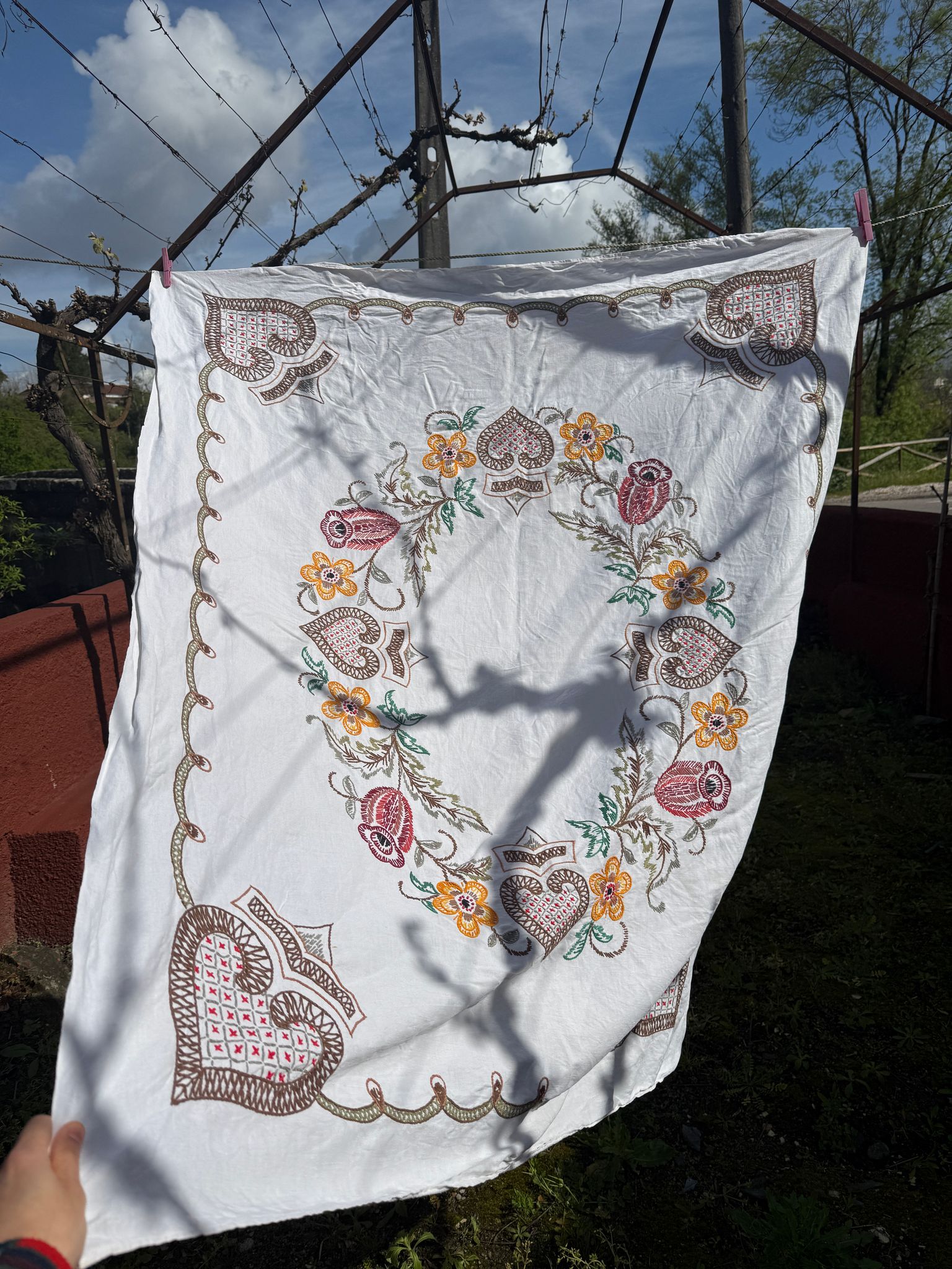 - Made from an old tablecloth (linen)