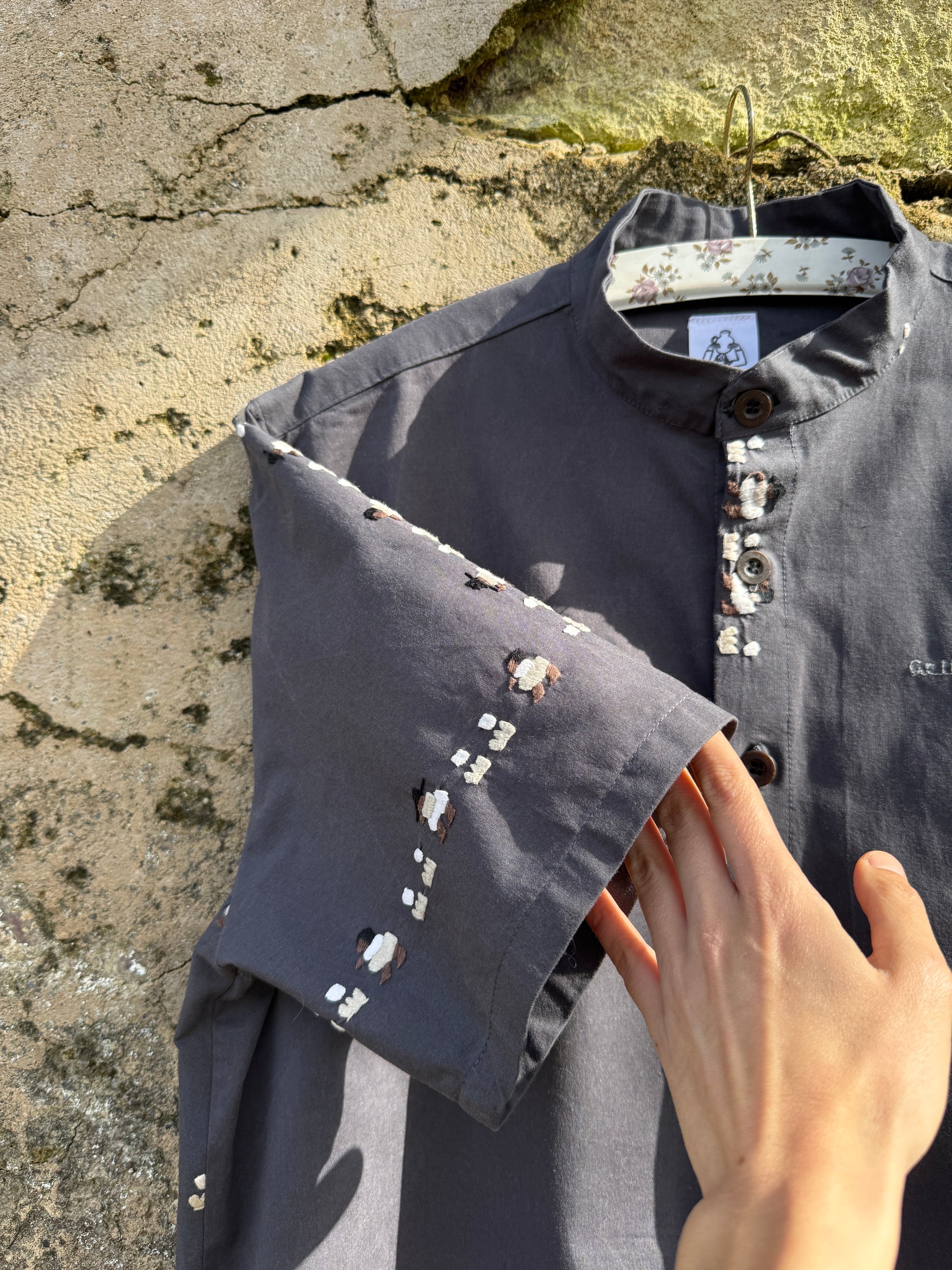 Camisa única e especial feita com uma toalha de mesa muito especial