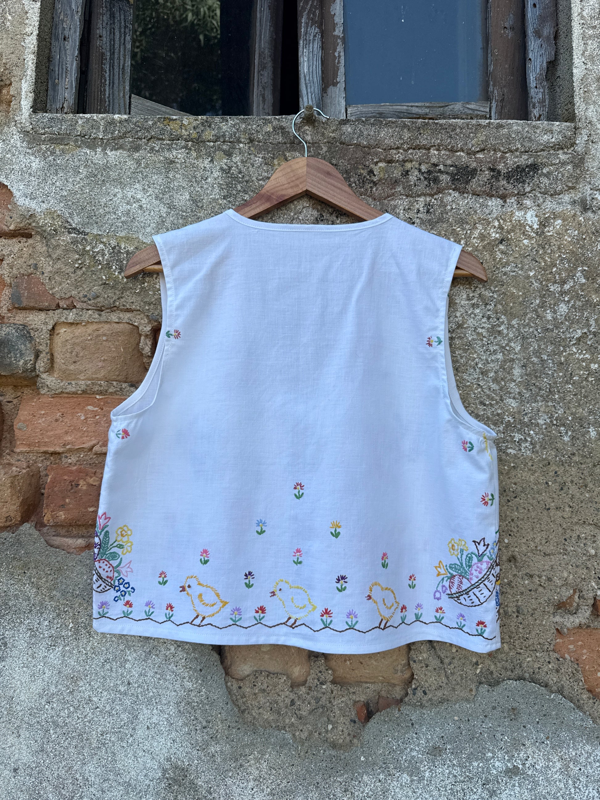 Blusa sem mangas muito gira feita com uma toalha de chá