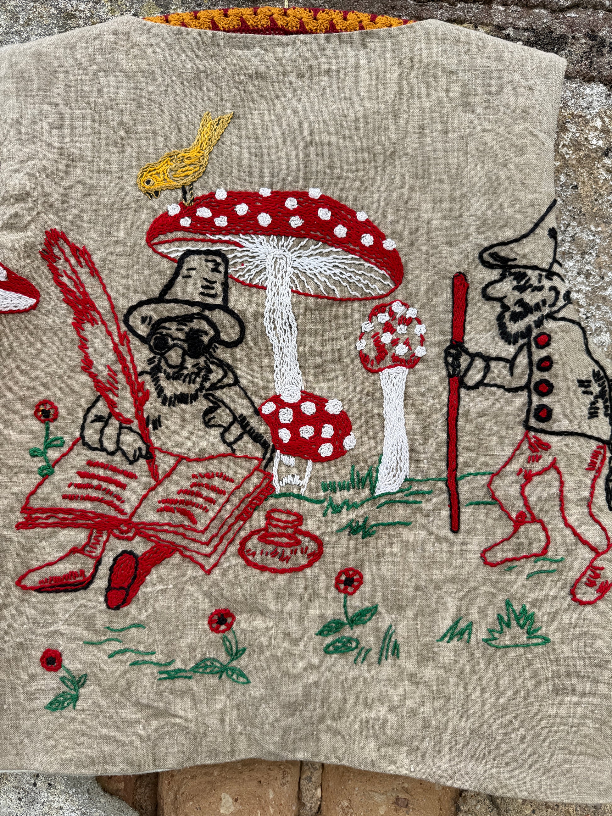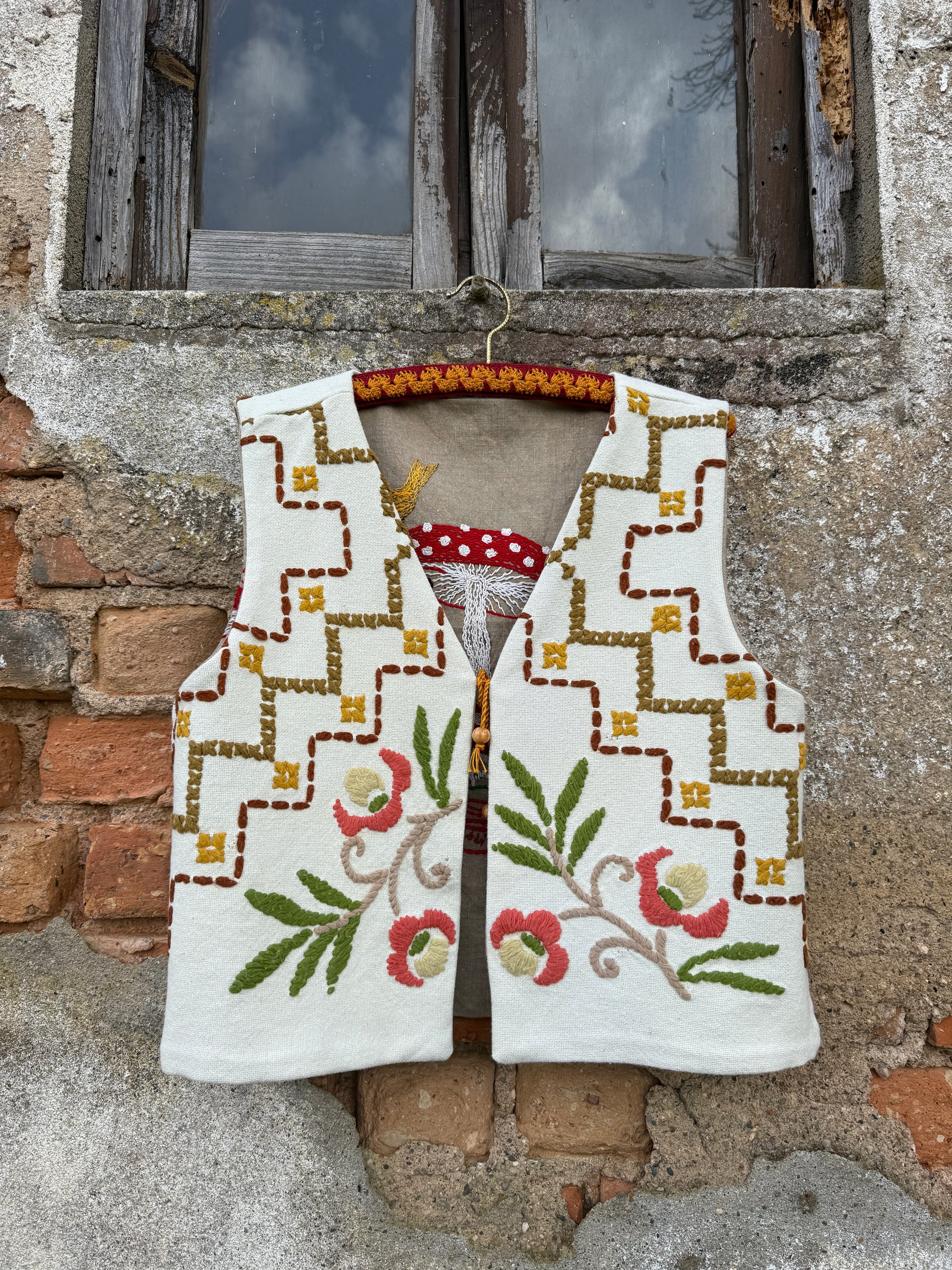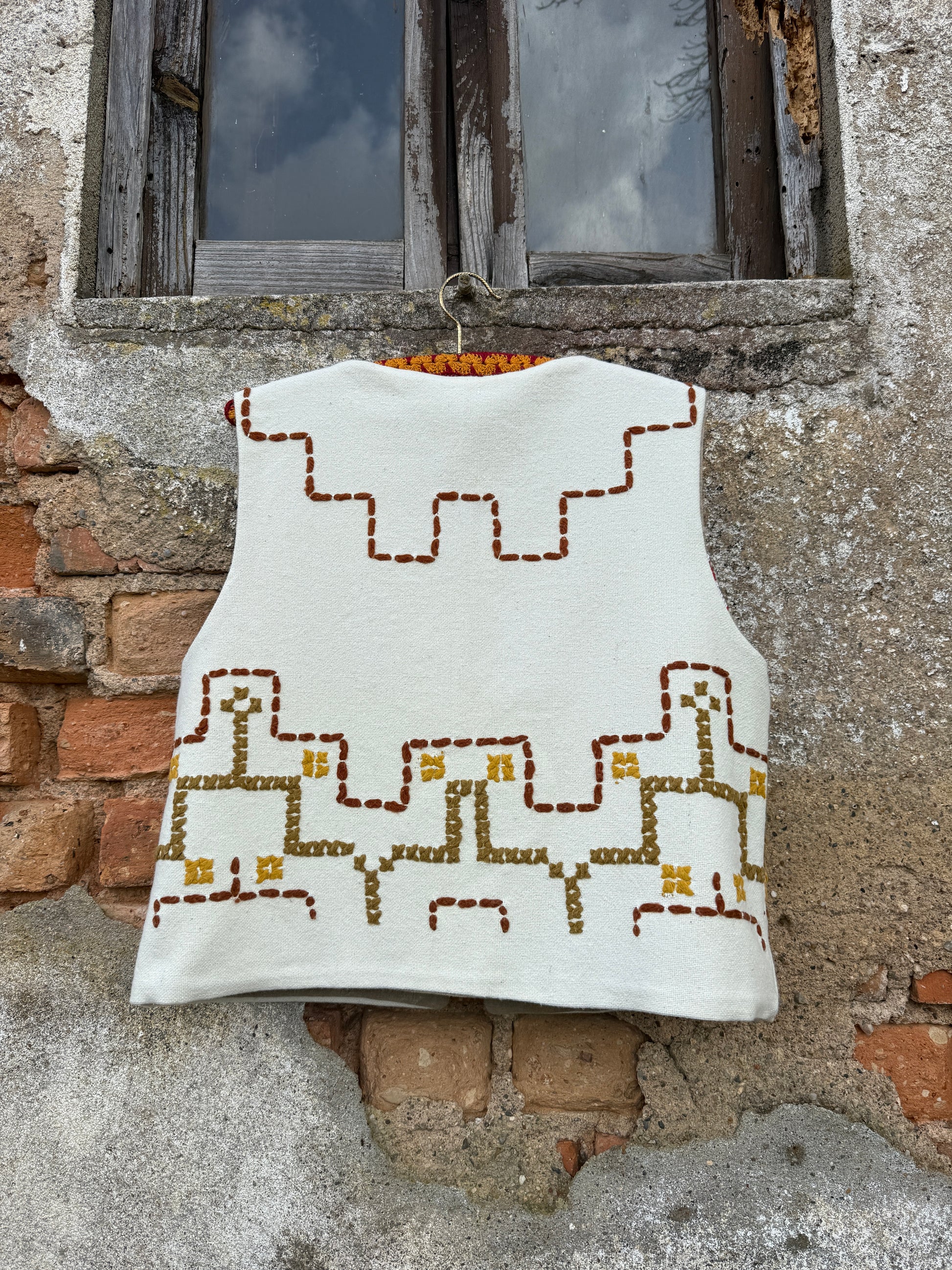 Colete reversível feito com um corredor de mesa e uma toalha de mesa