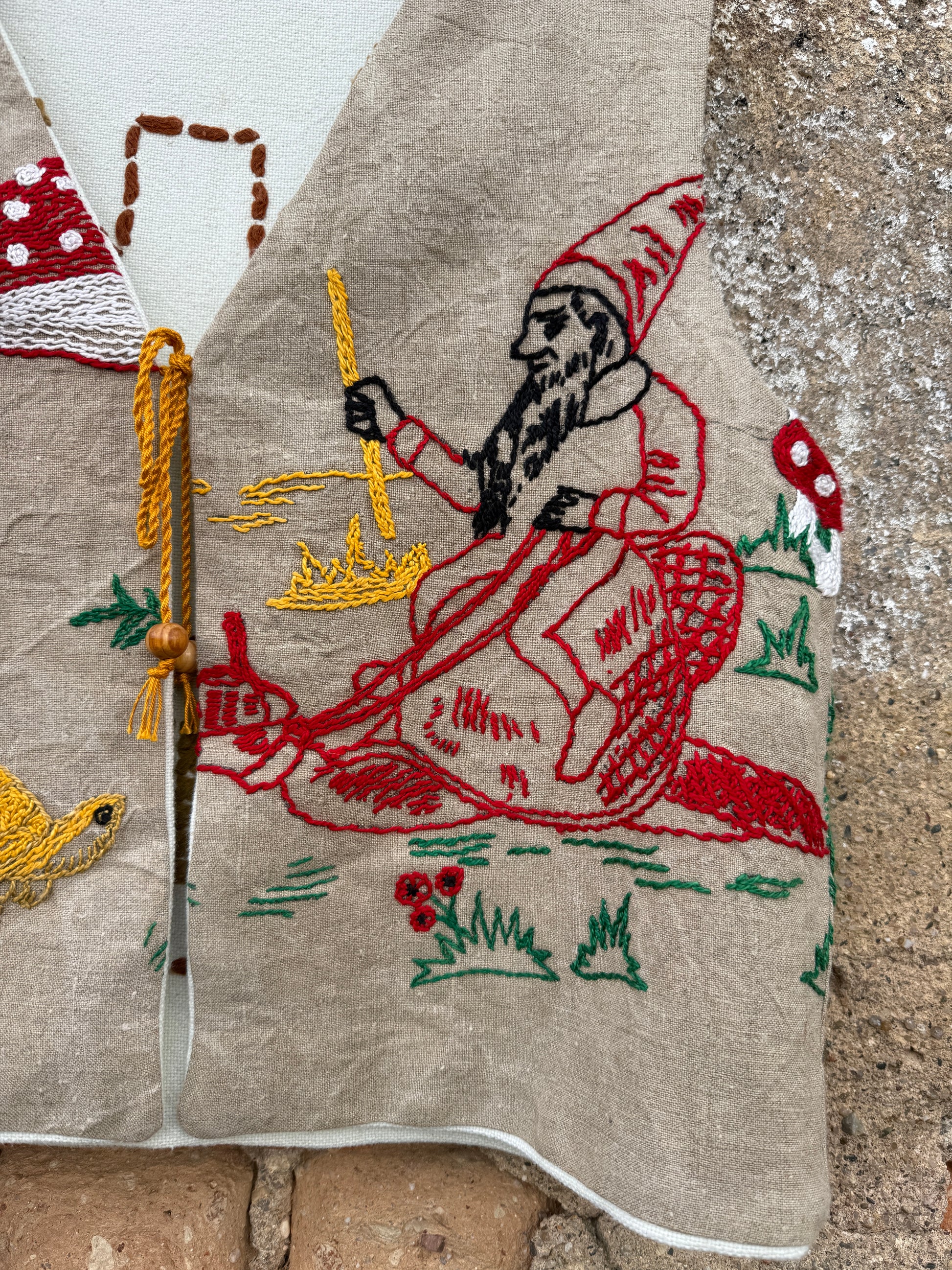 - Fastens with a handmade drawstring