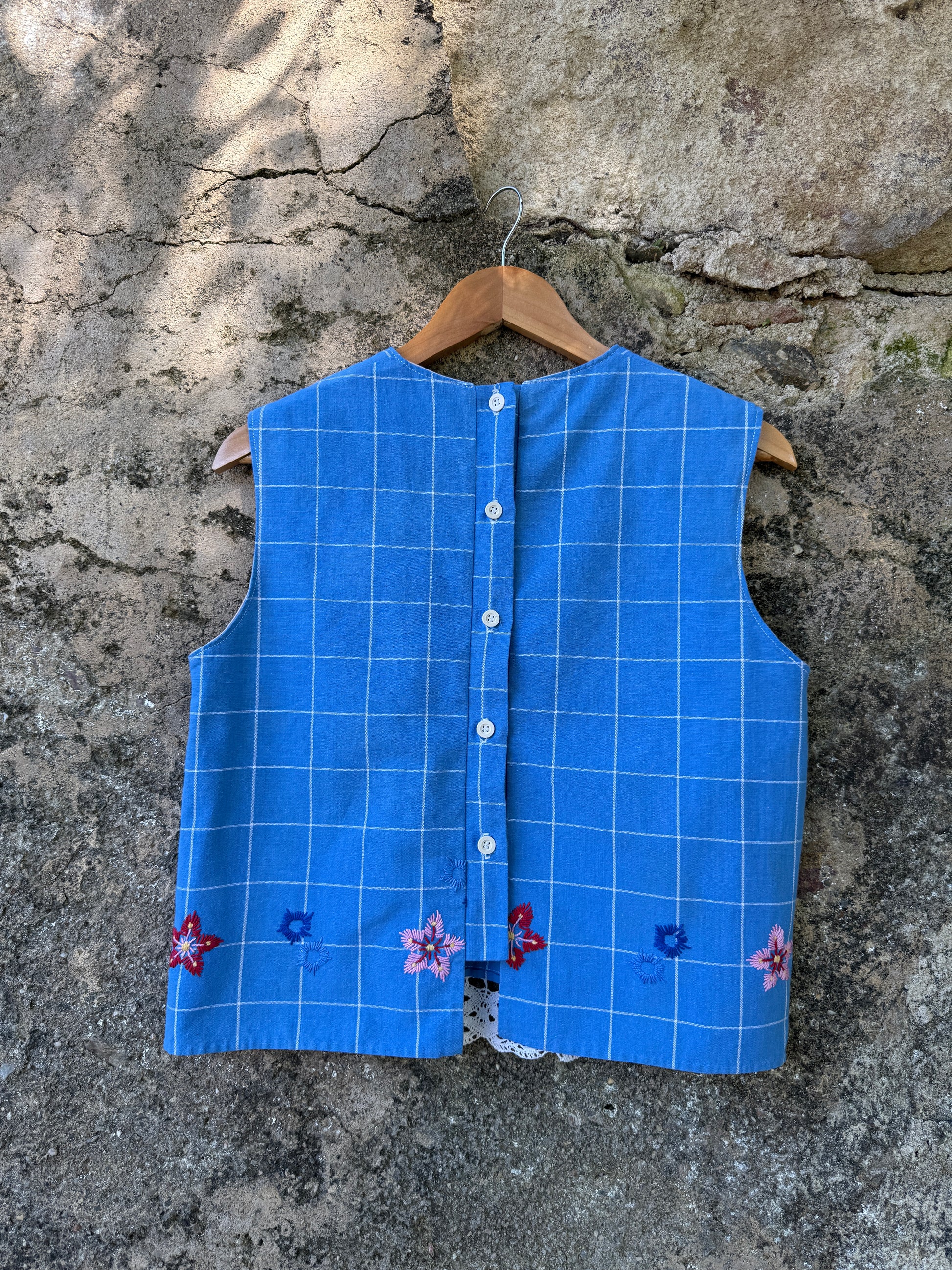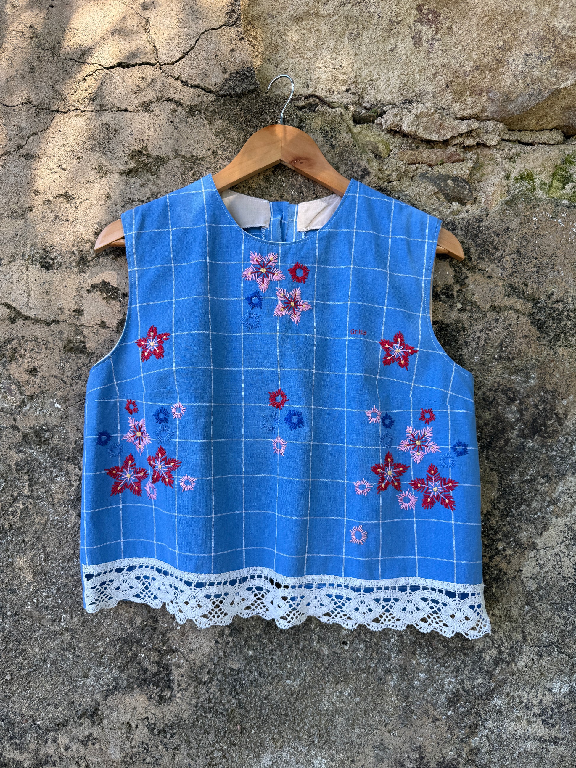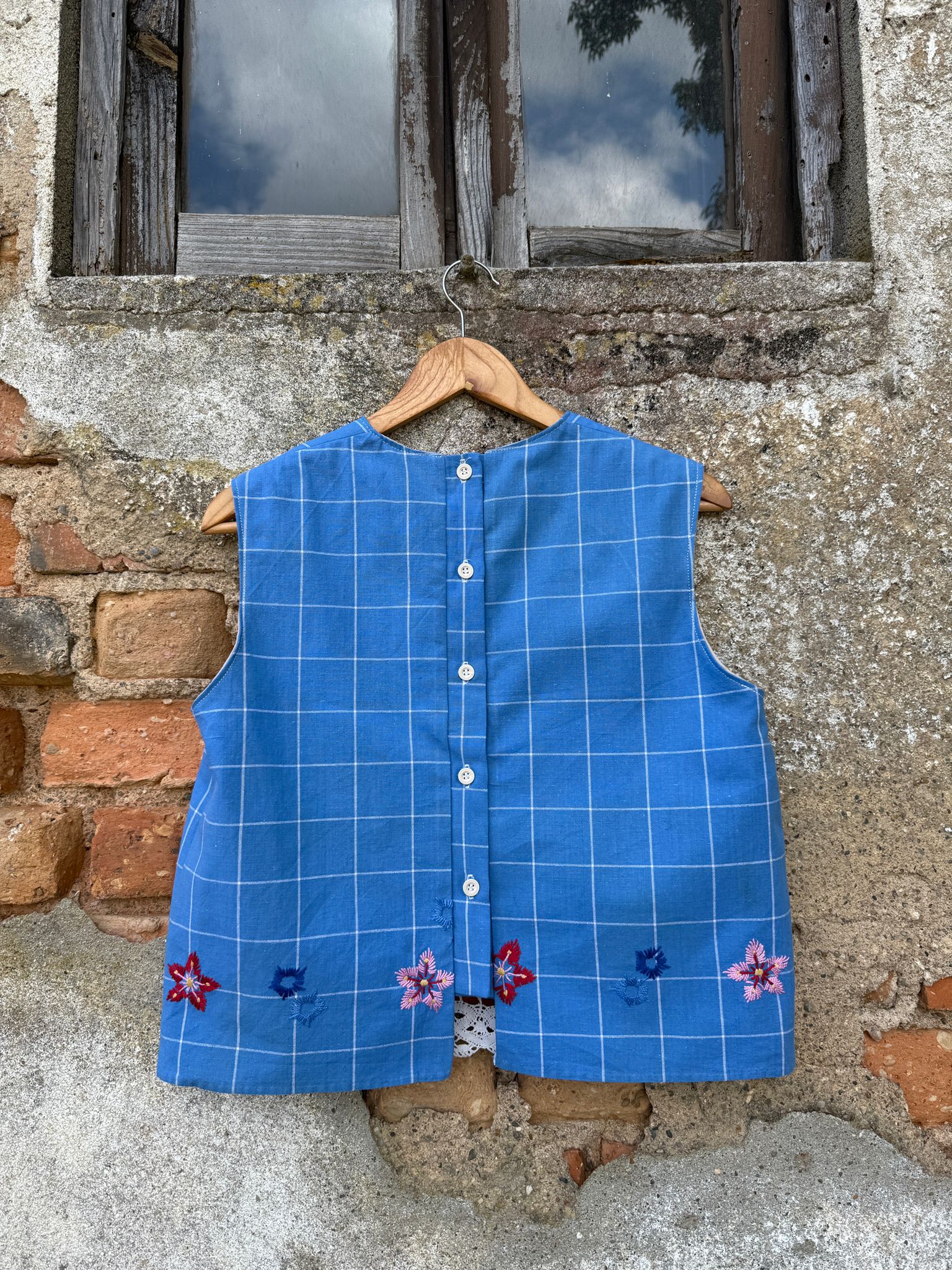 Top muito bonito feito com uma cortina em linho bordada à mão
