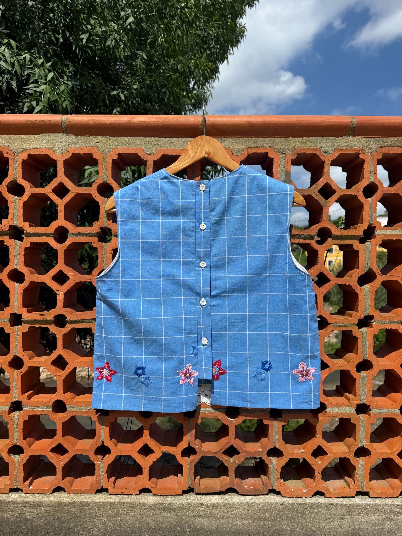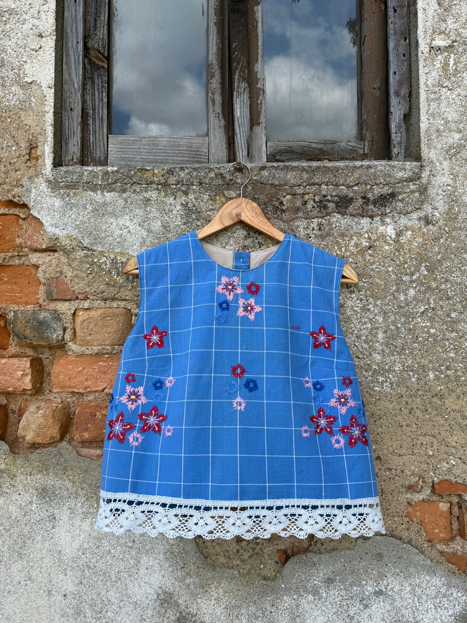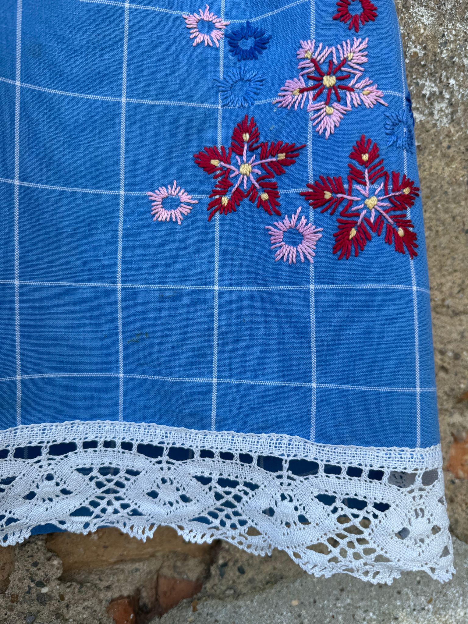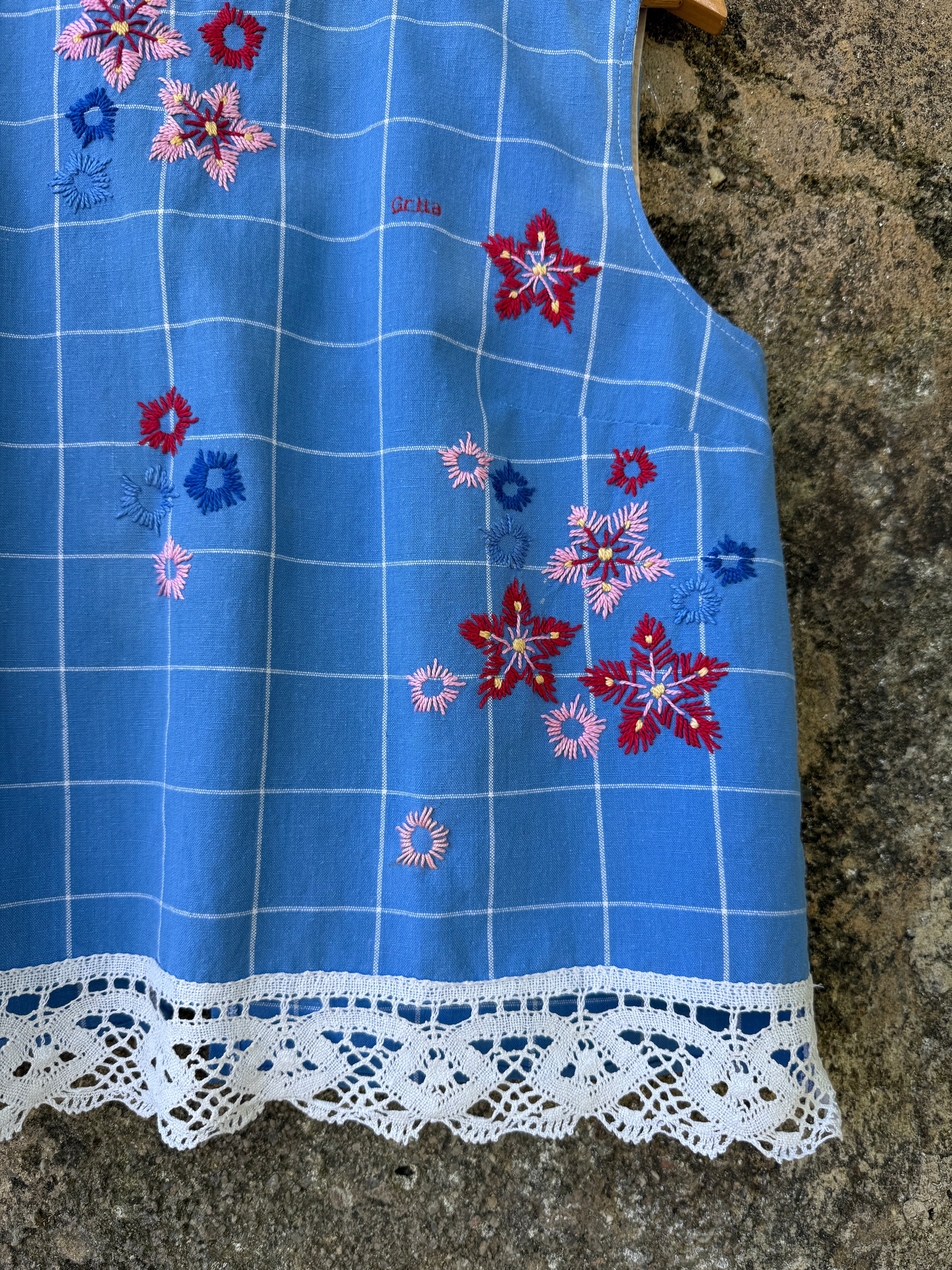 Top muito bonito feito com uma cortina em linho bordada à mão