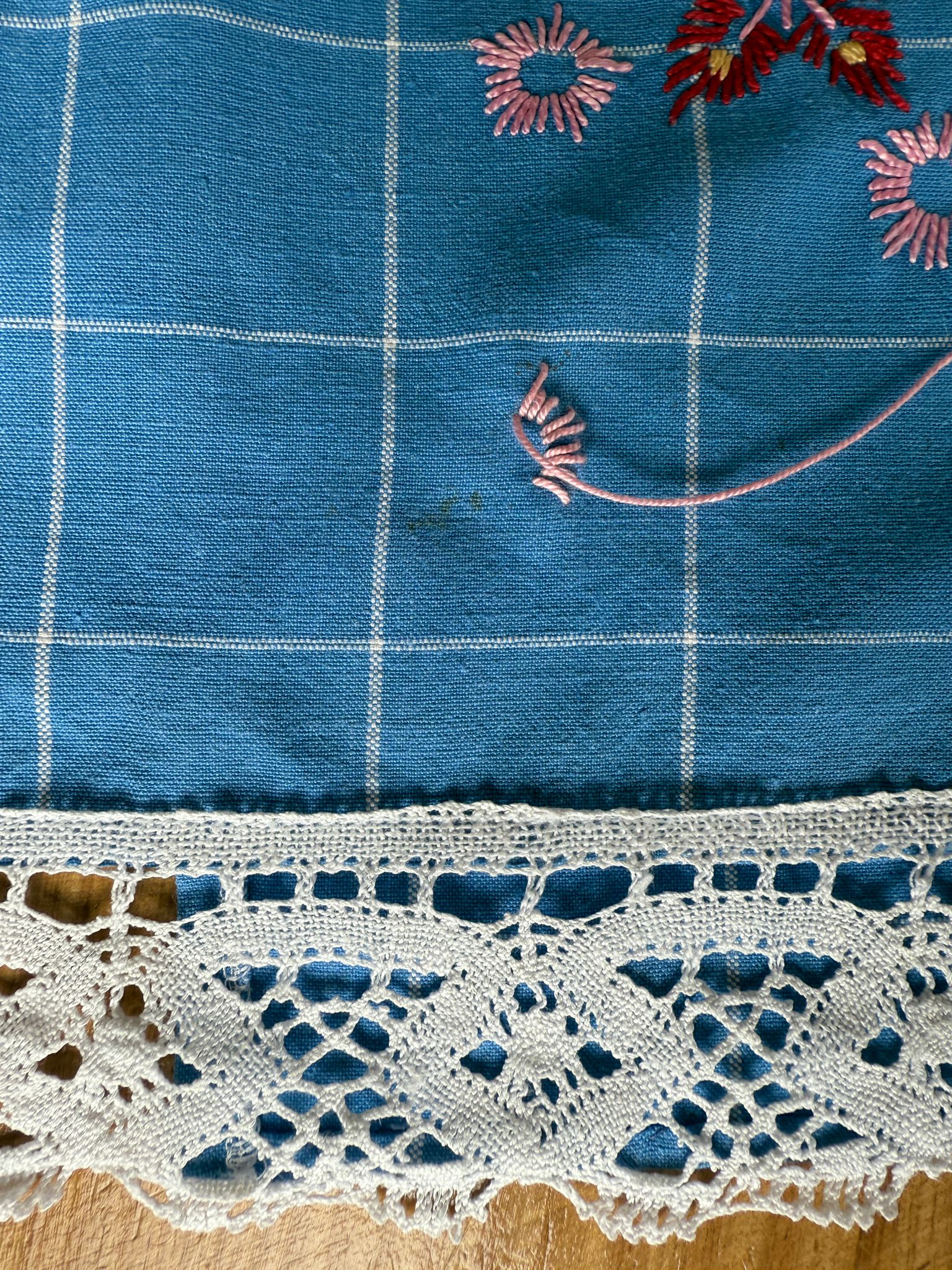 - Alguns bordados foram feitos a imitar o já existente para tapar umas pequenas manchas de ferrugem