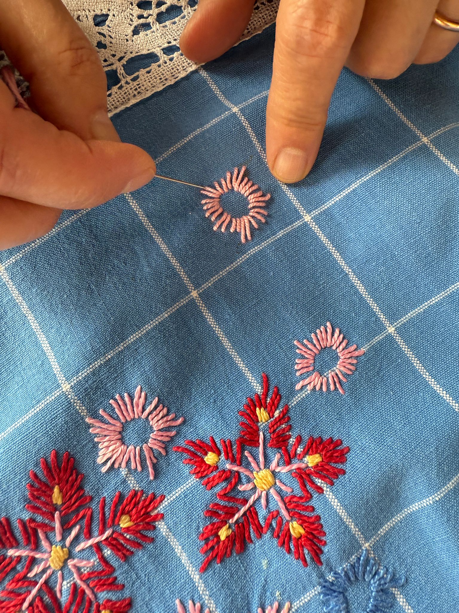 - Some embroidery was done to imitate the existing one to cover some small rust stains