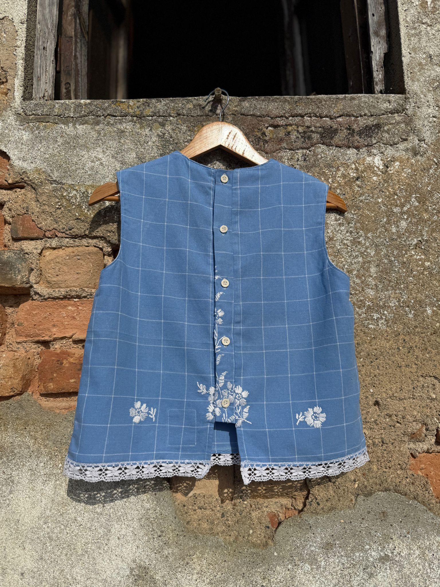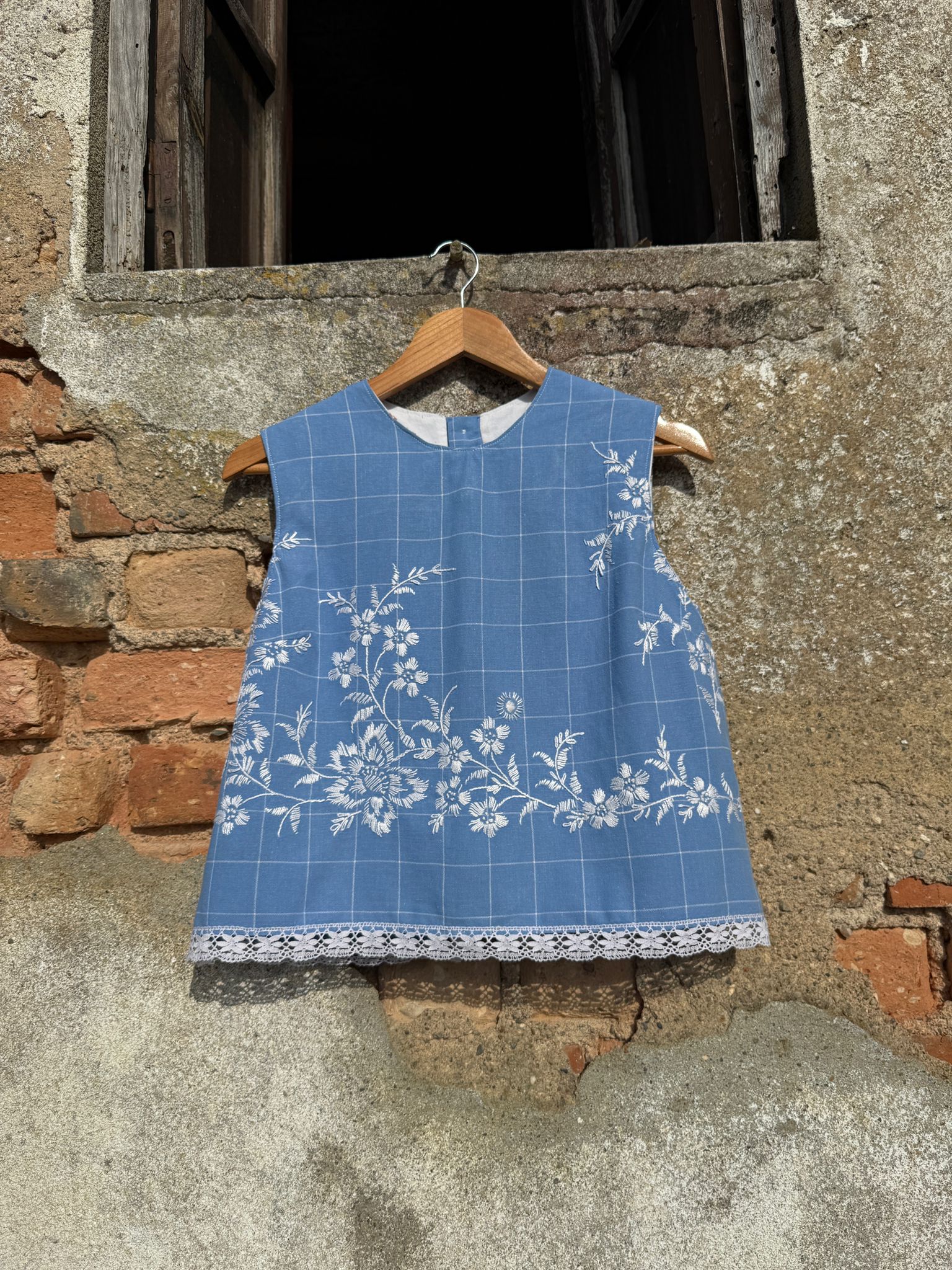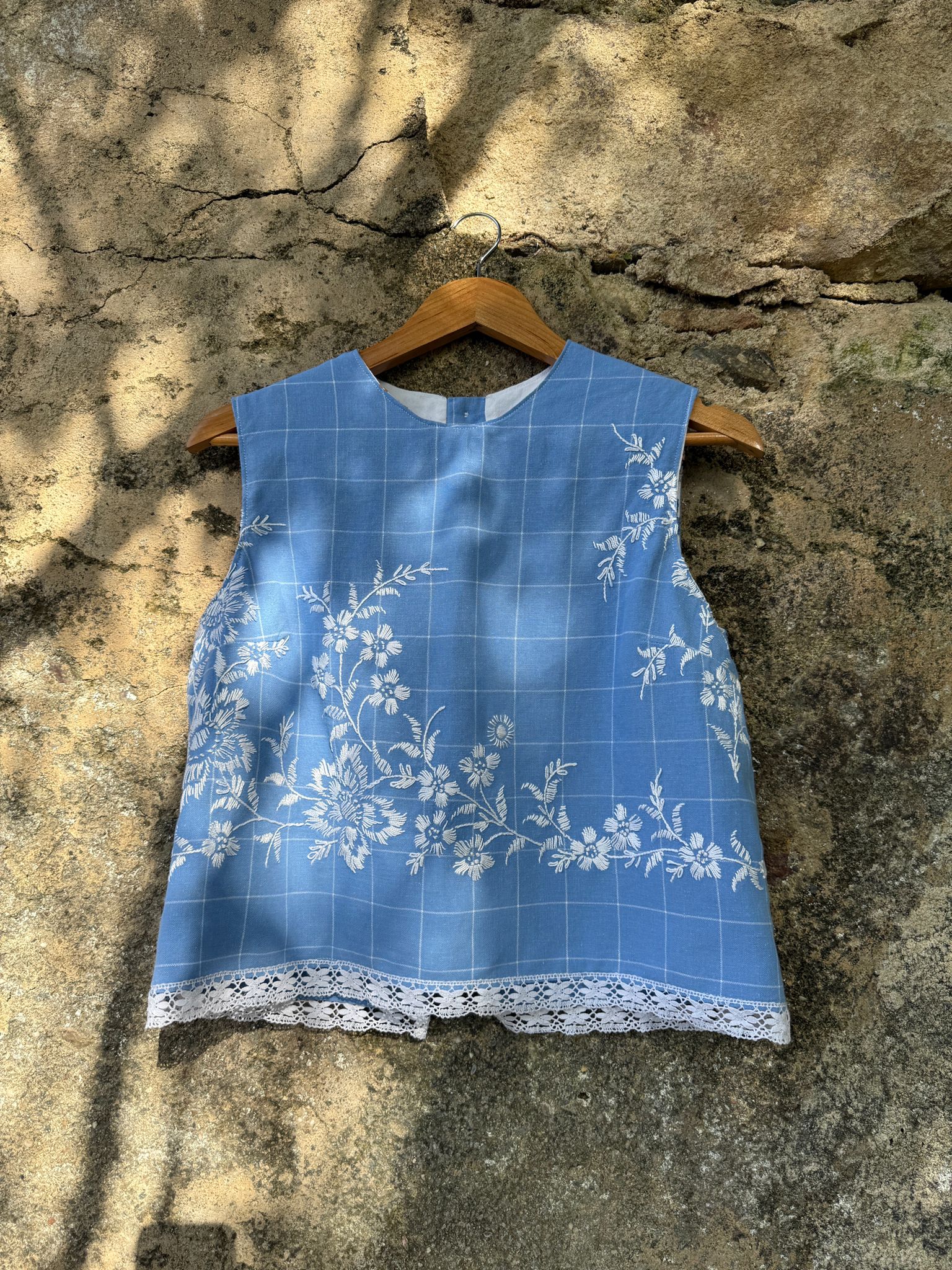 Top muito bonito feito com uma cortina em linho bordada à mão