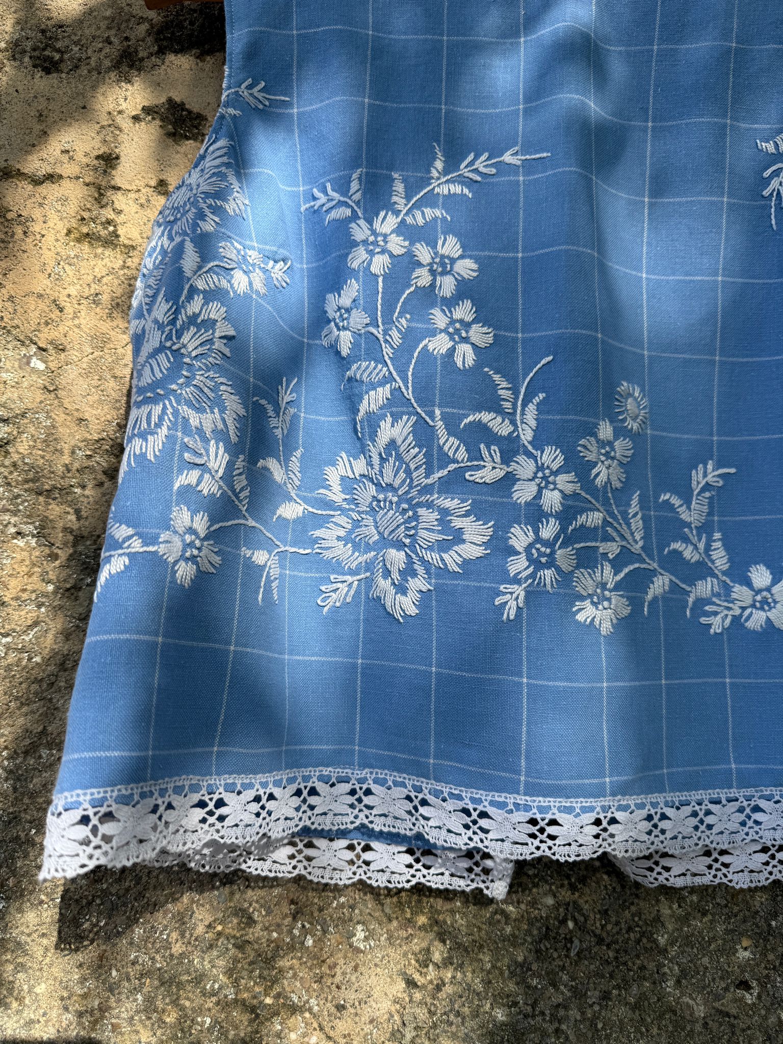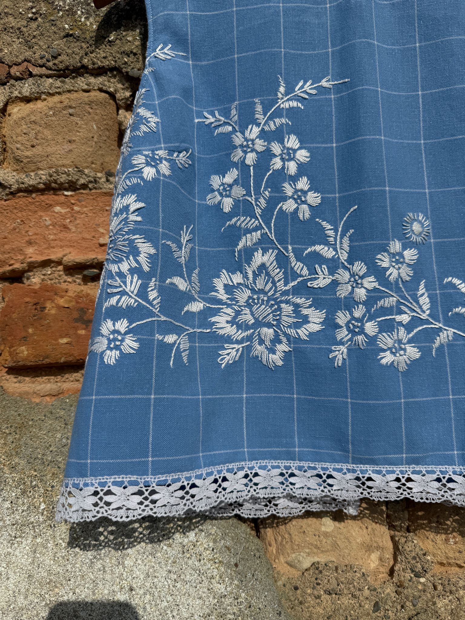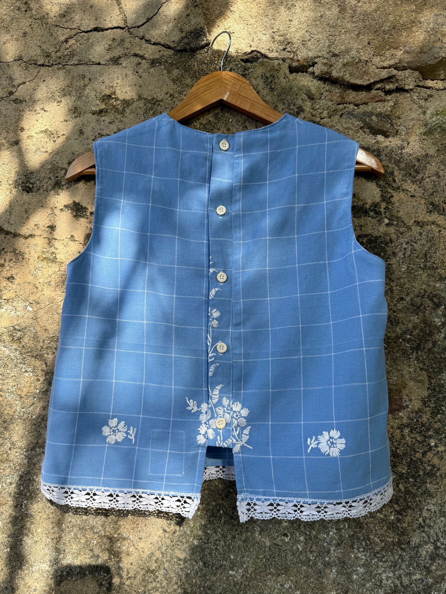 Top muito bonito feito com uma cortina em linho bordada à mão