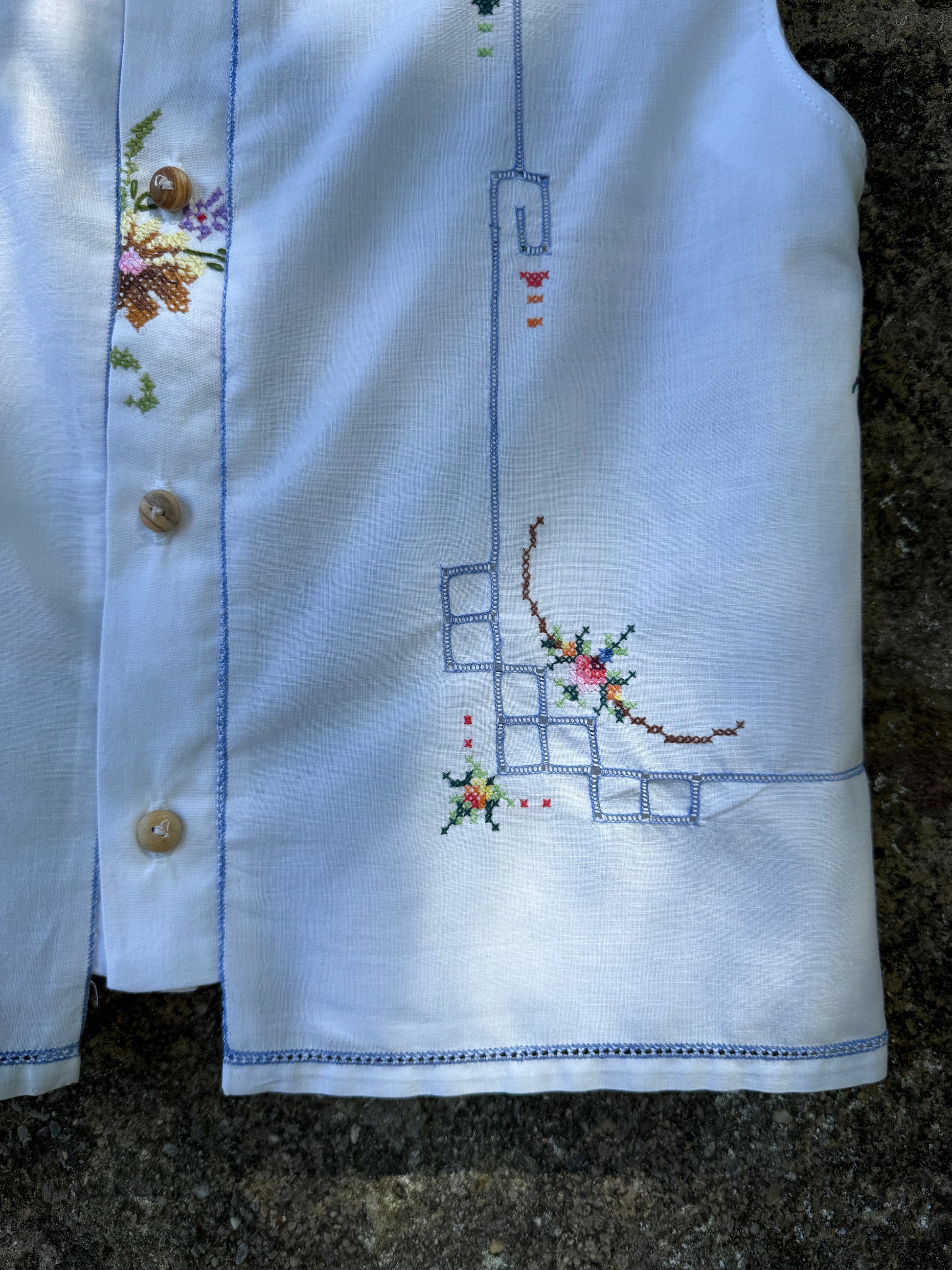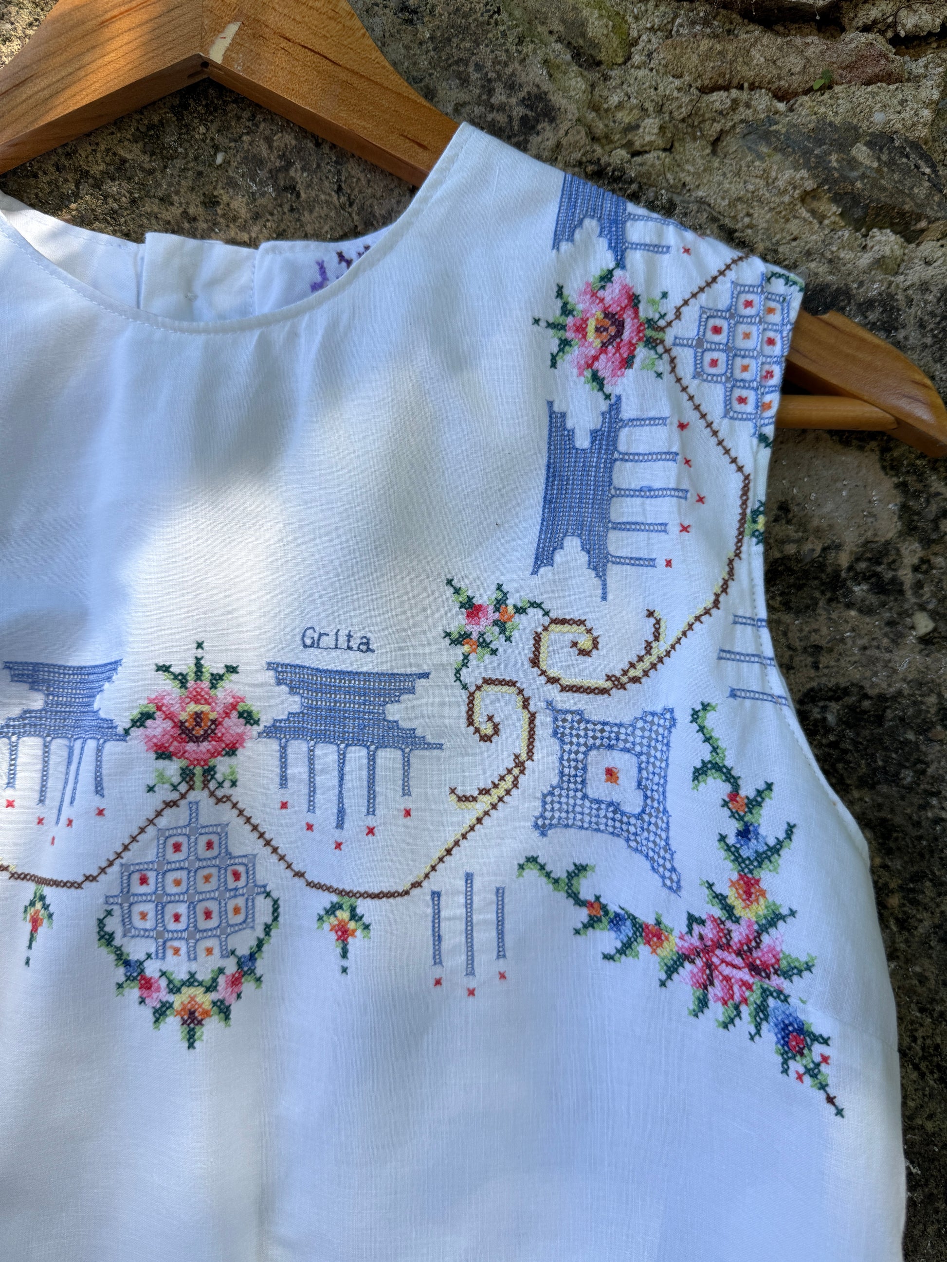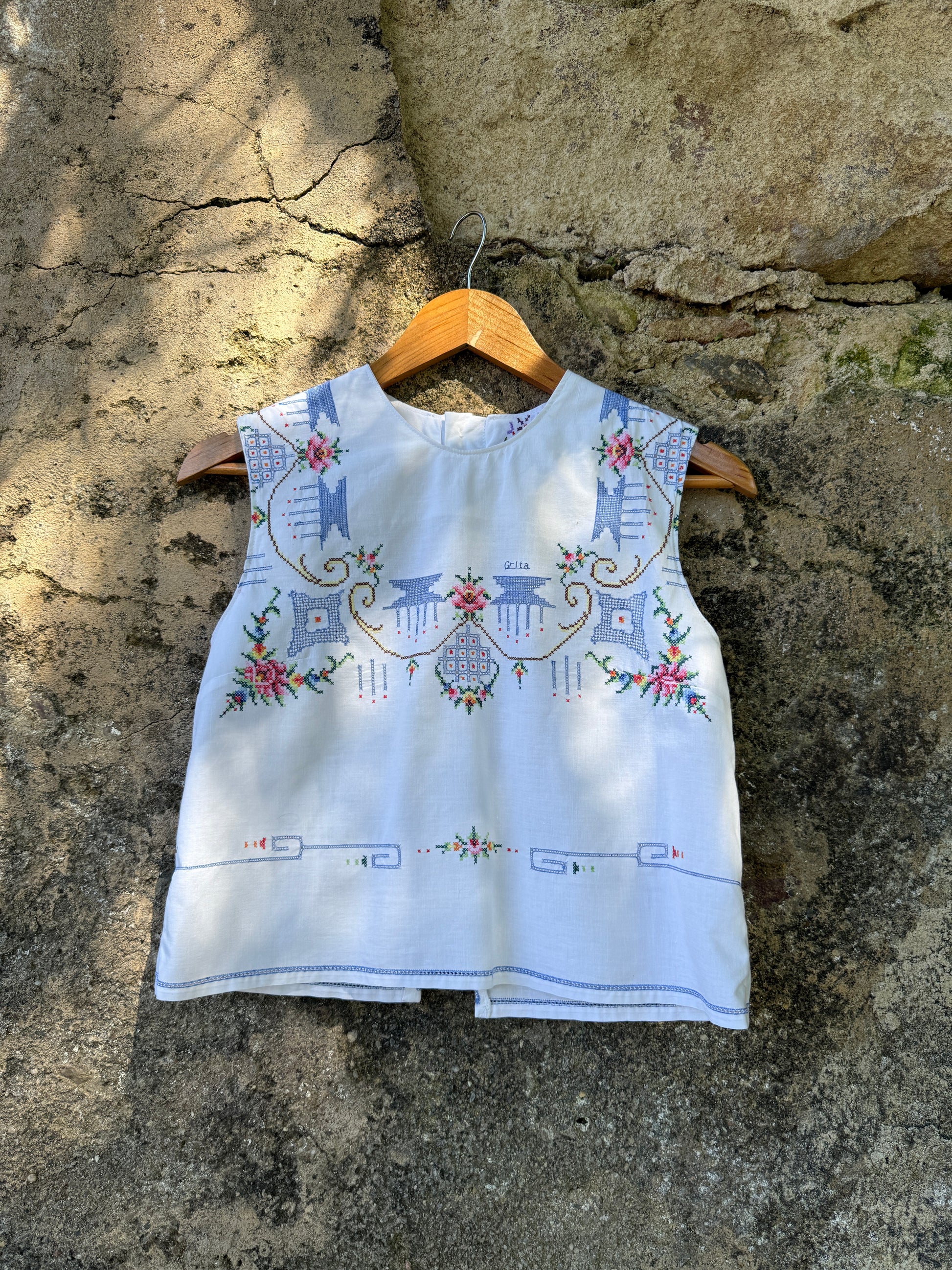 Top muito bonito feito com uma toalha de chá bordada à mão