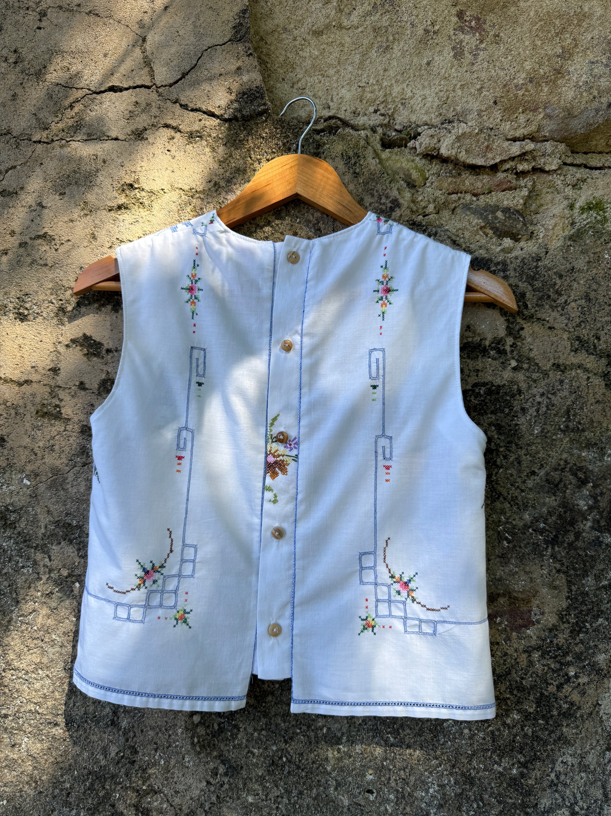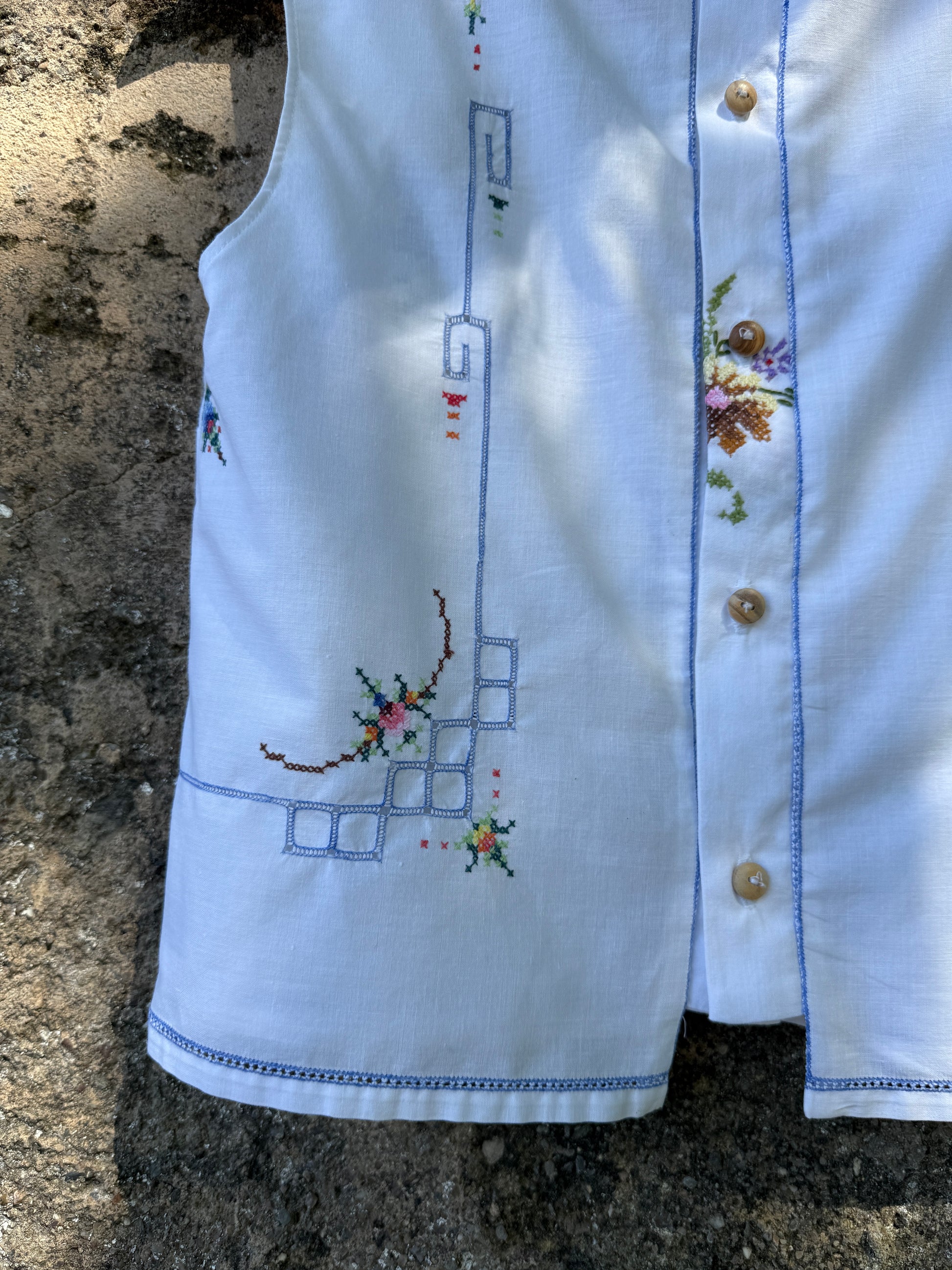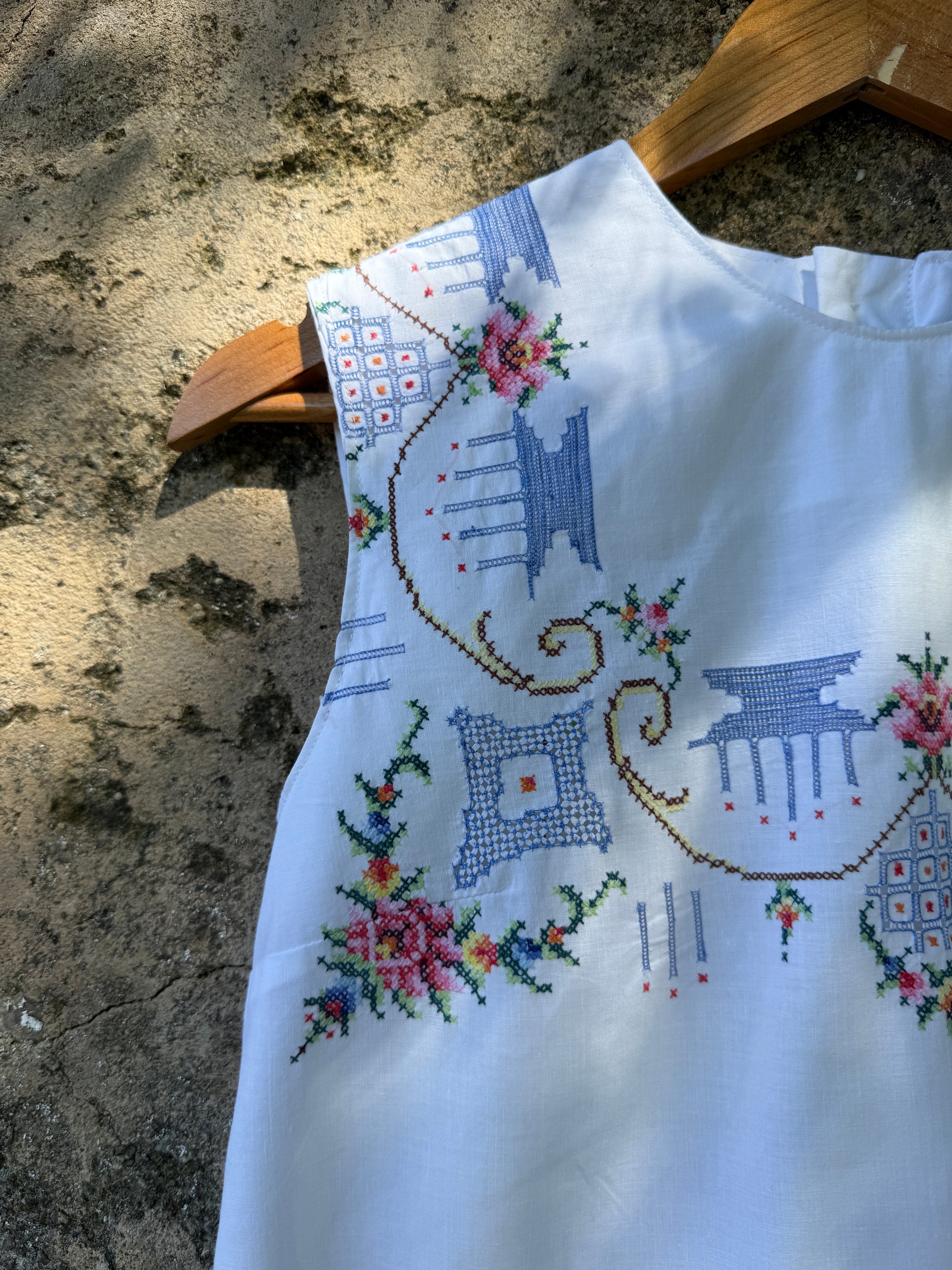 Top muito bonito feito com uma toalha de chá bordada à mão