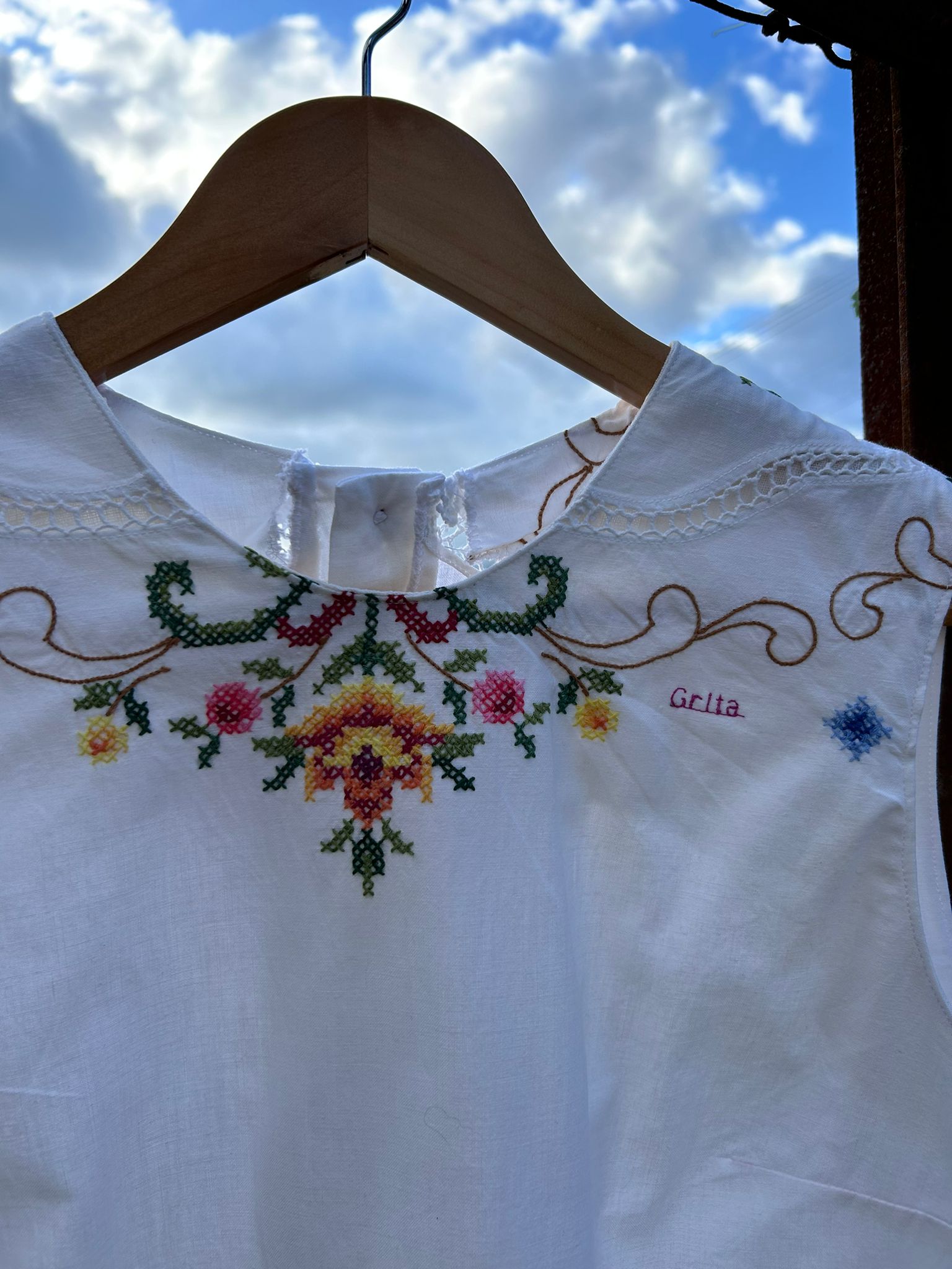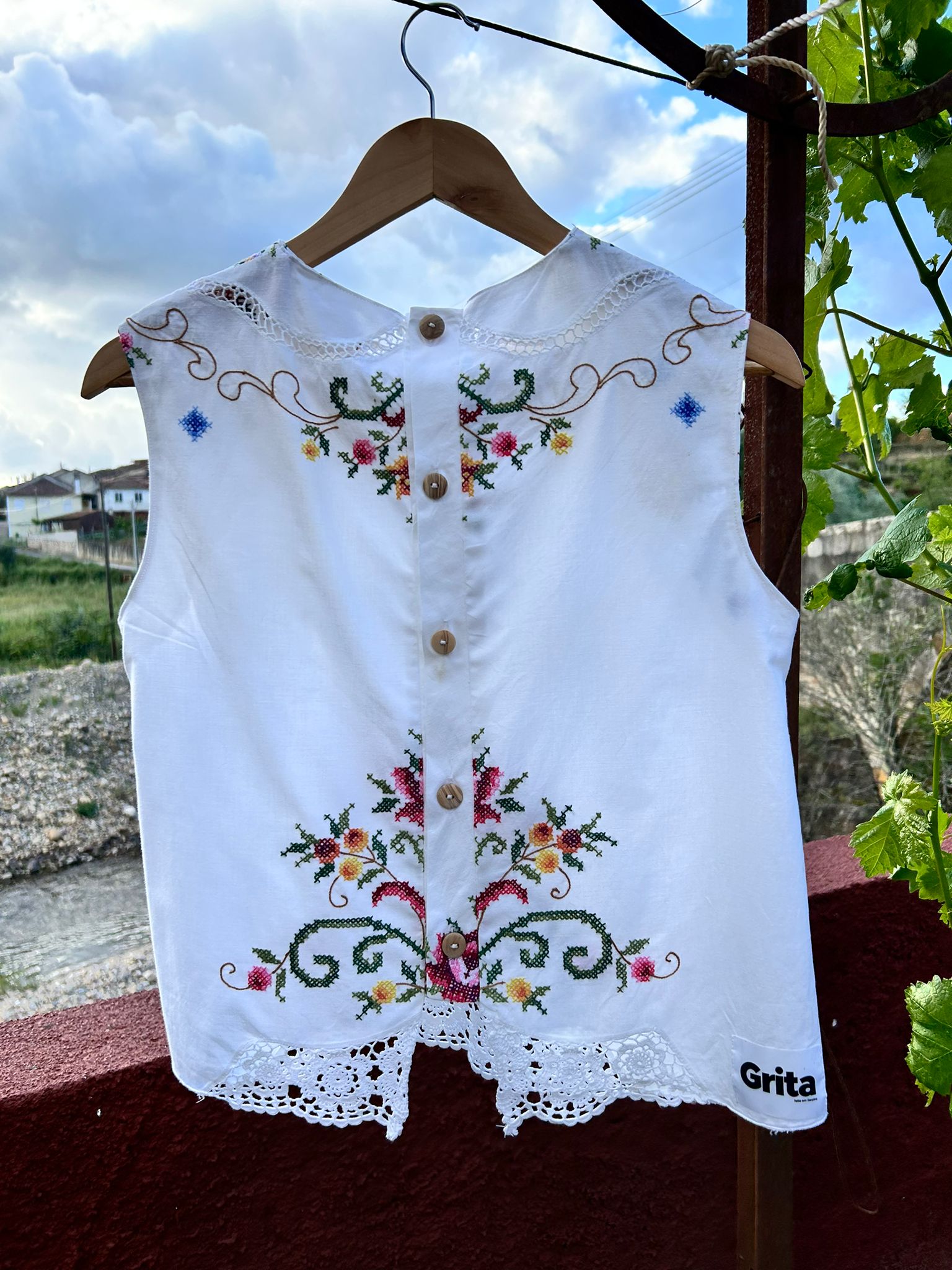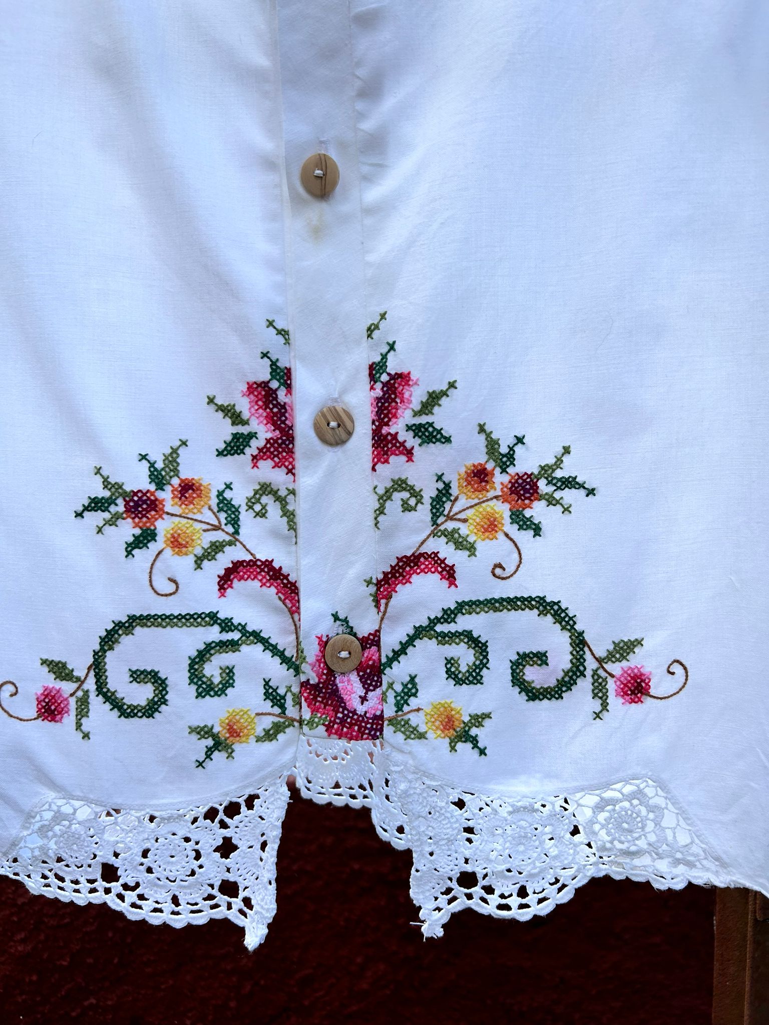 - Handmade Top filled with cross stitch and crochet embroidery.