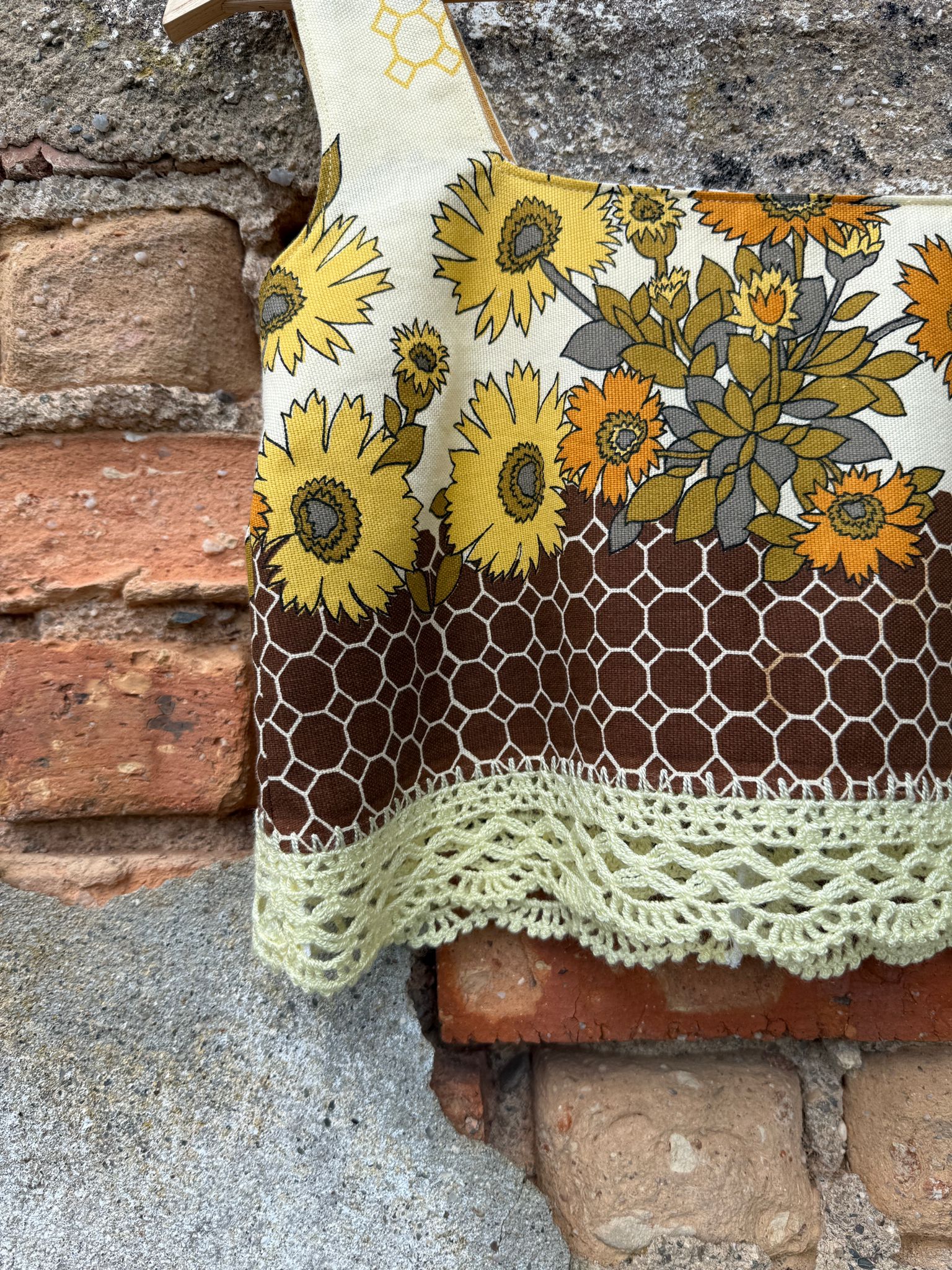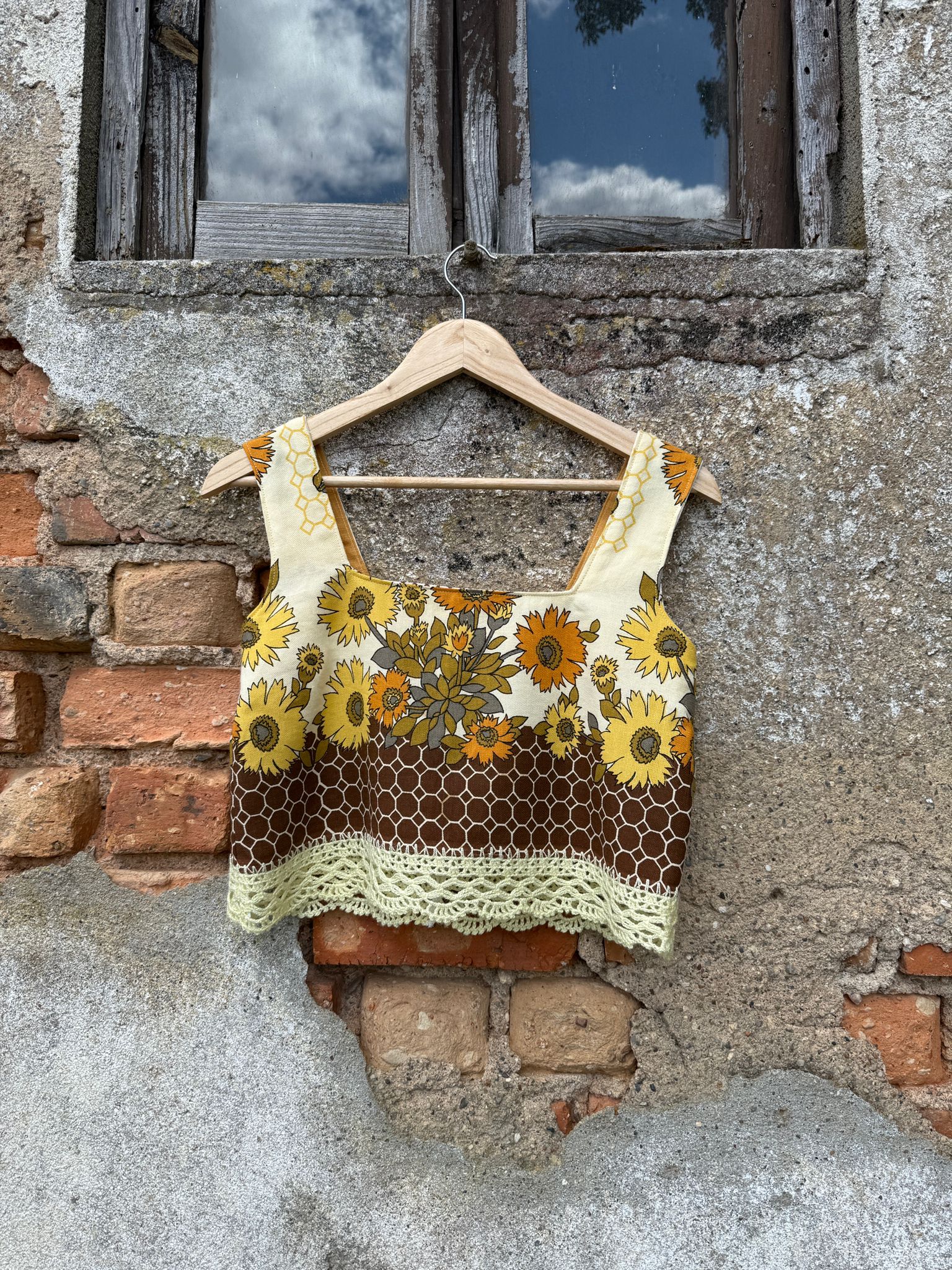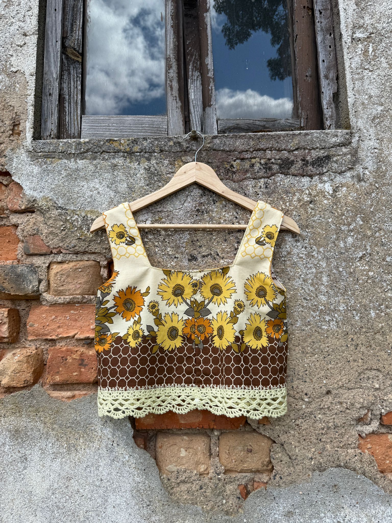 Very pretty top made from a tea towel collected from a used furniture collection warehouse