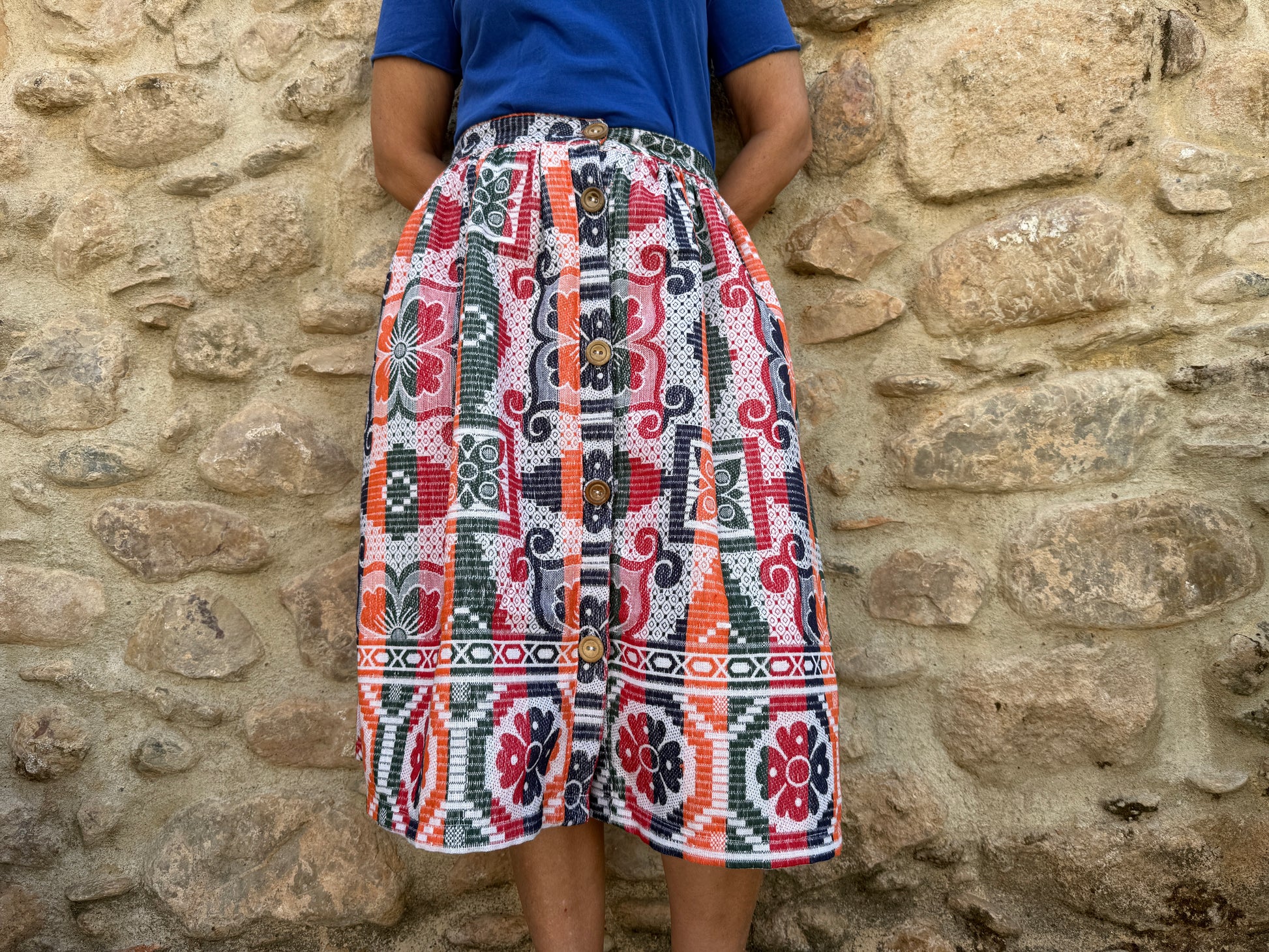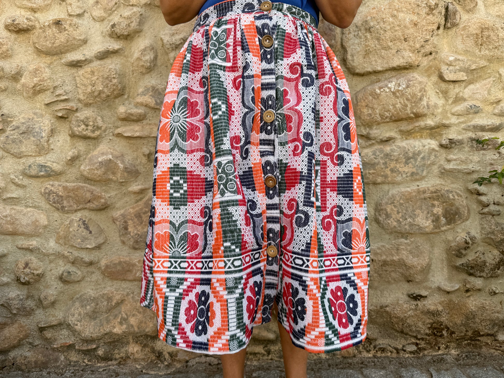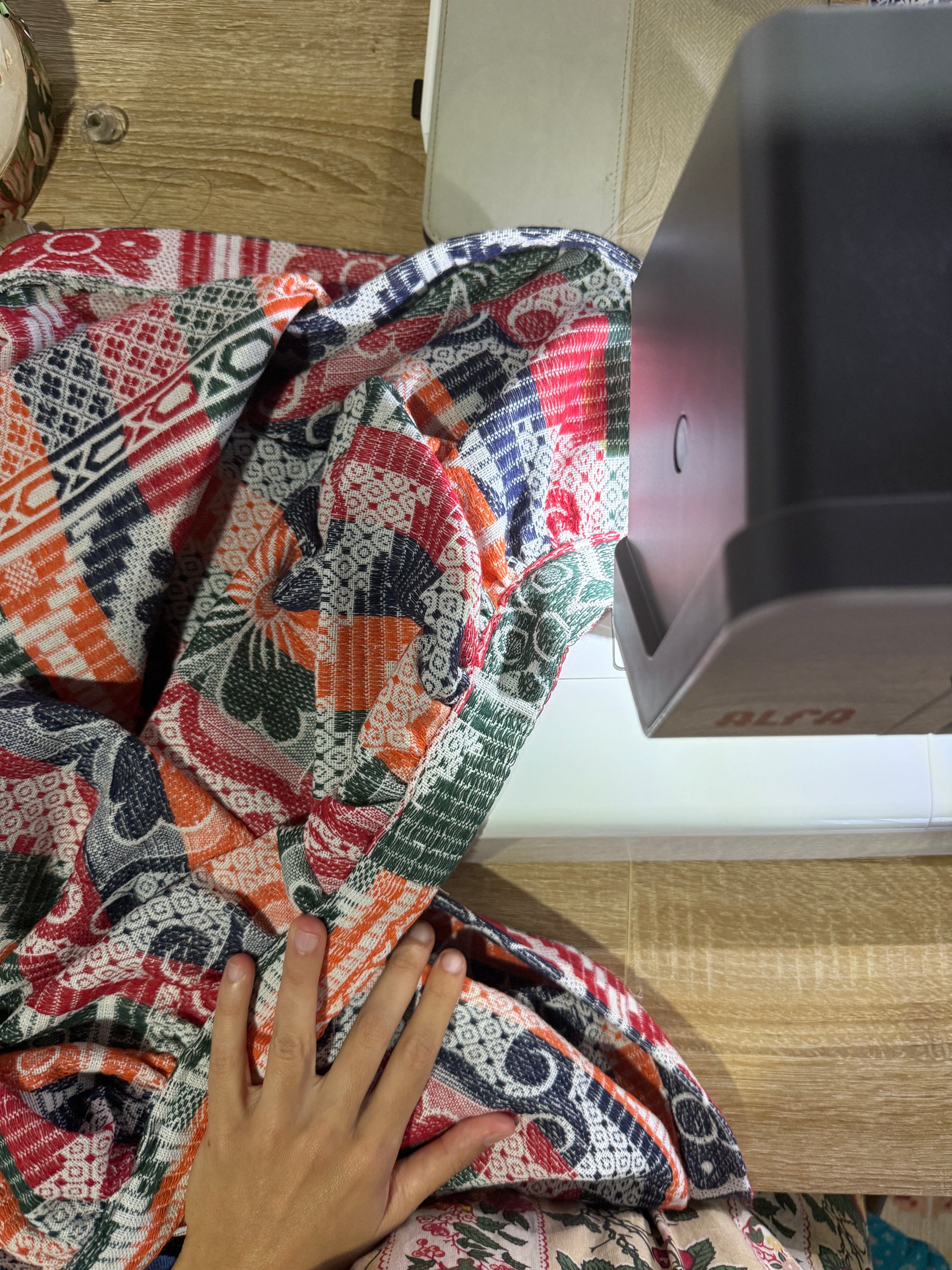 This piece is part of the “Grita Mumbai” collection, the result of a trip to India in September. During one of my walks, I came across a small, old shop run by a very kind couple, where I bought various linens (sheets and blankets). I fell in love with the patterns and colors of the sheets that were kept at the back of a display case, and it was in that place that this collection was born.