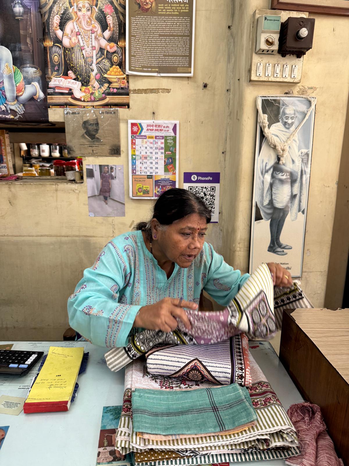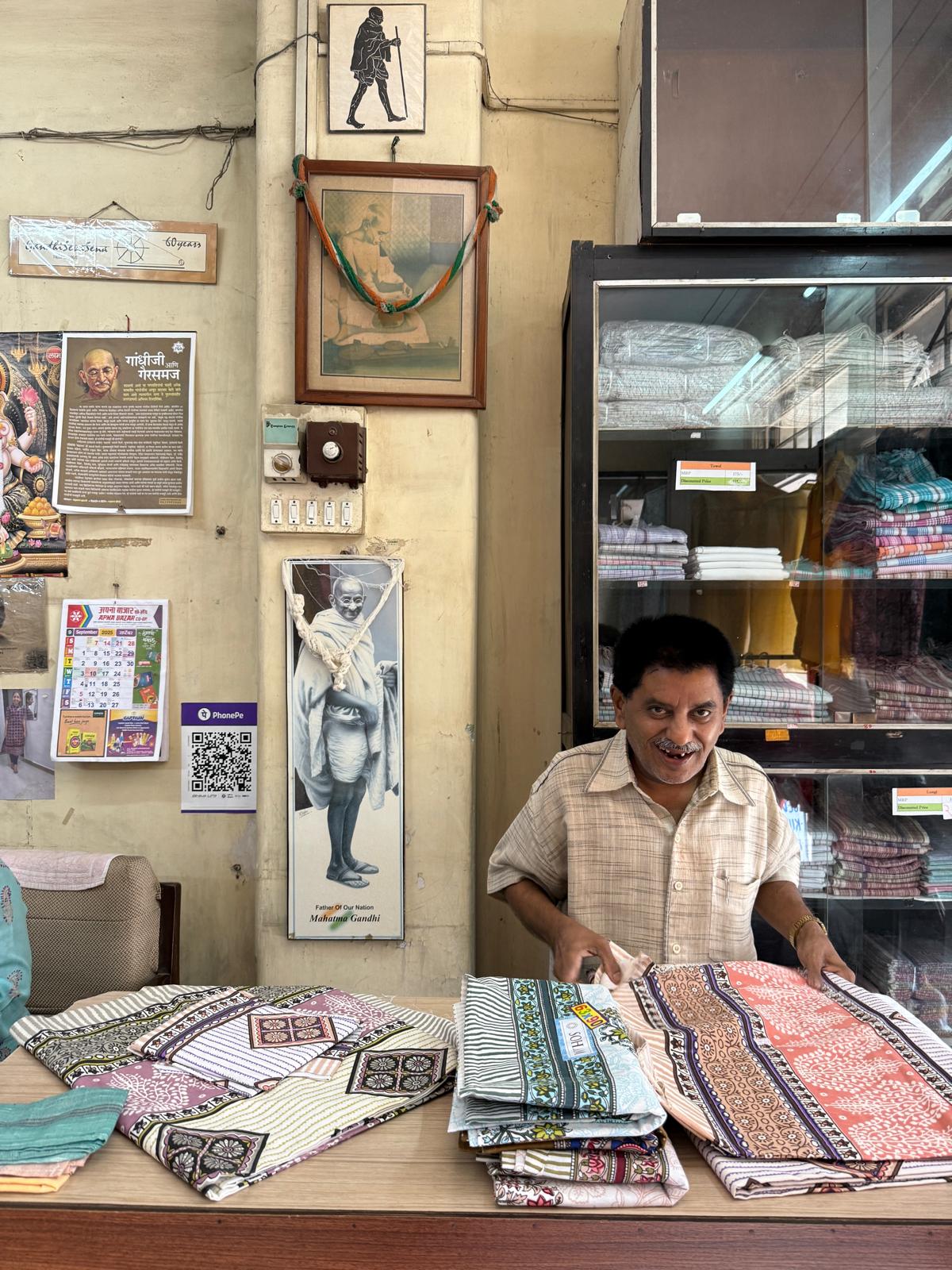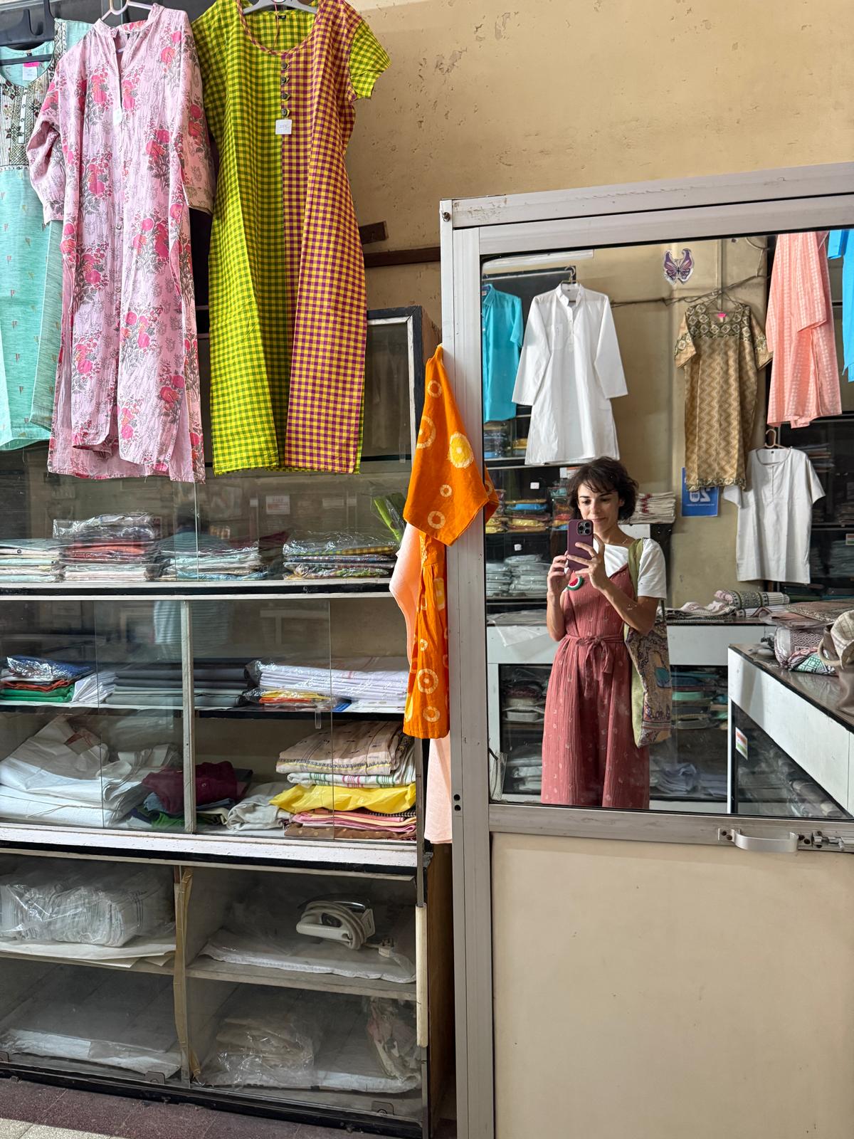 One-off-a-kind tunic made with a printed sheet brought from Mumbai