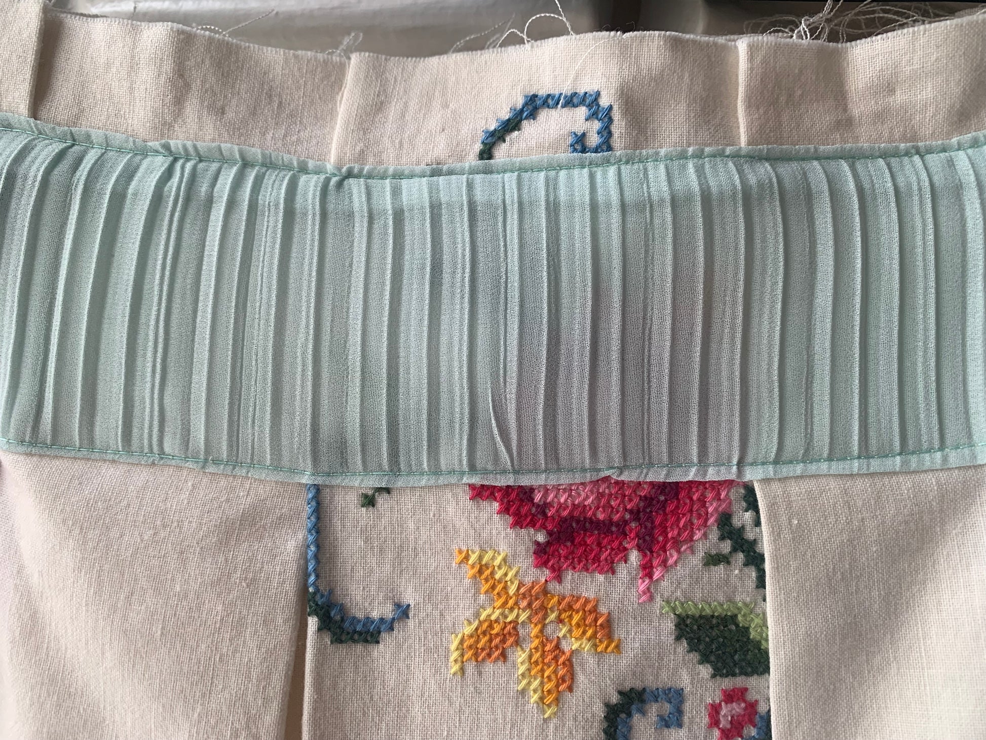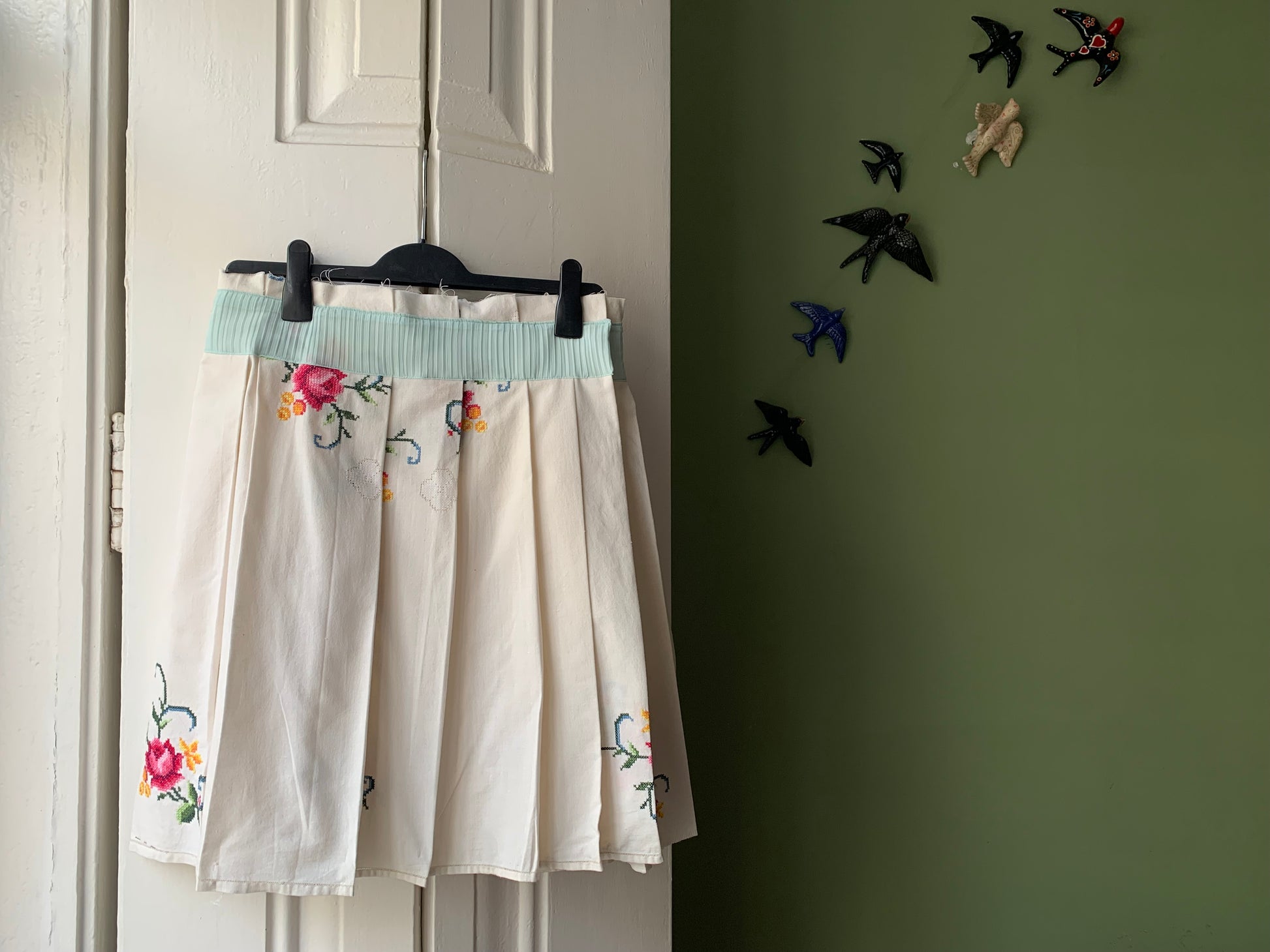 "Neste clássico reinventado, cada dobra desta saia conta uma história. Criada a partir de uma toalha de mesa bordada à mão, esta peça é uma celebração da tradição e do artesanato transformados em moda contemporânea.