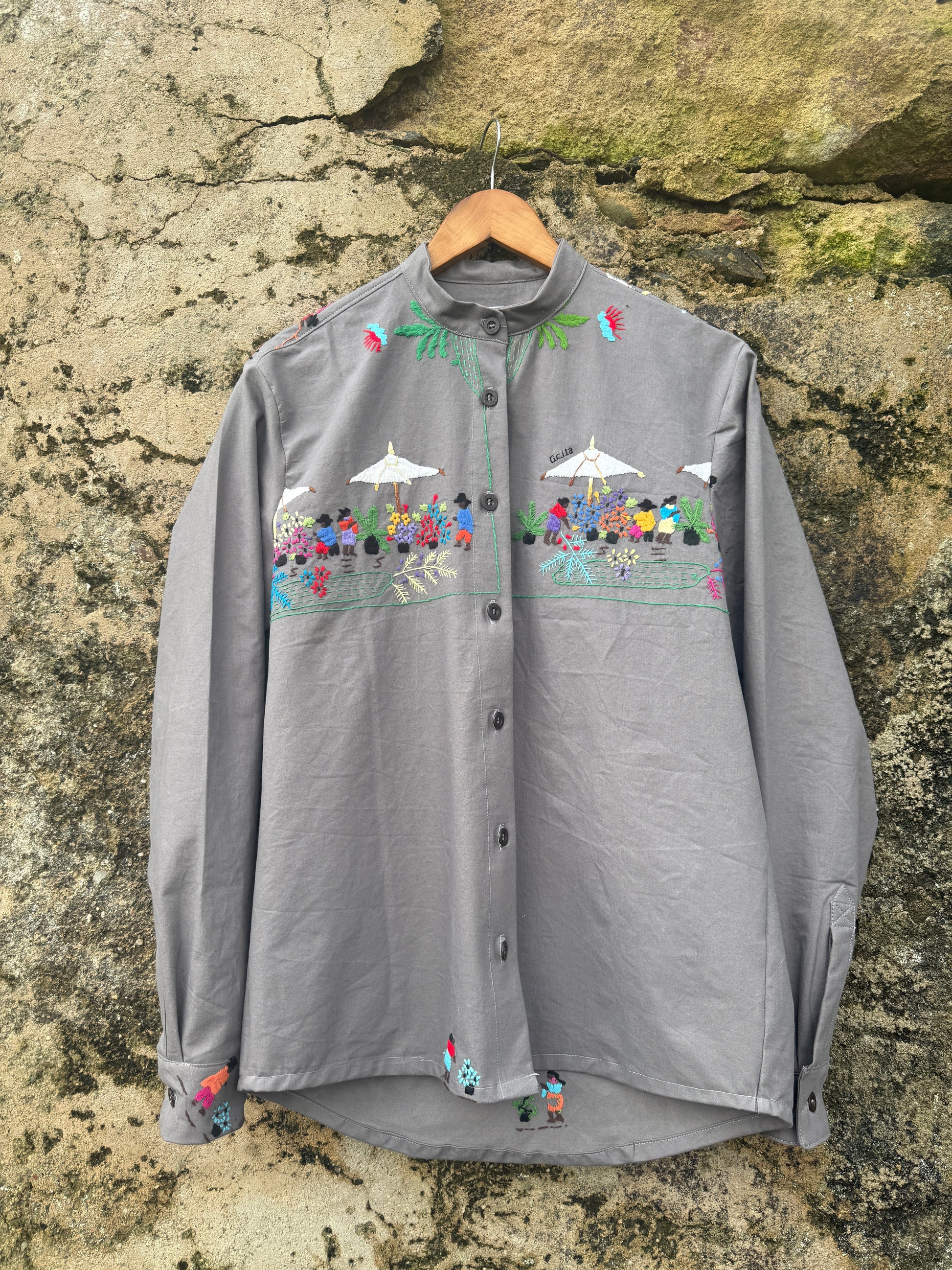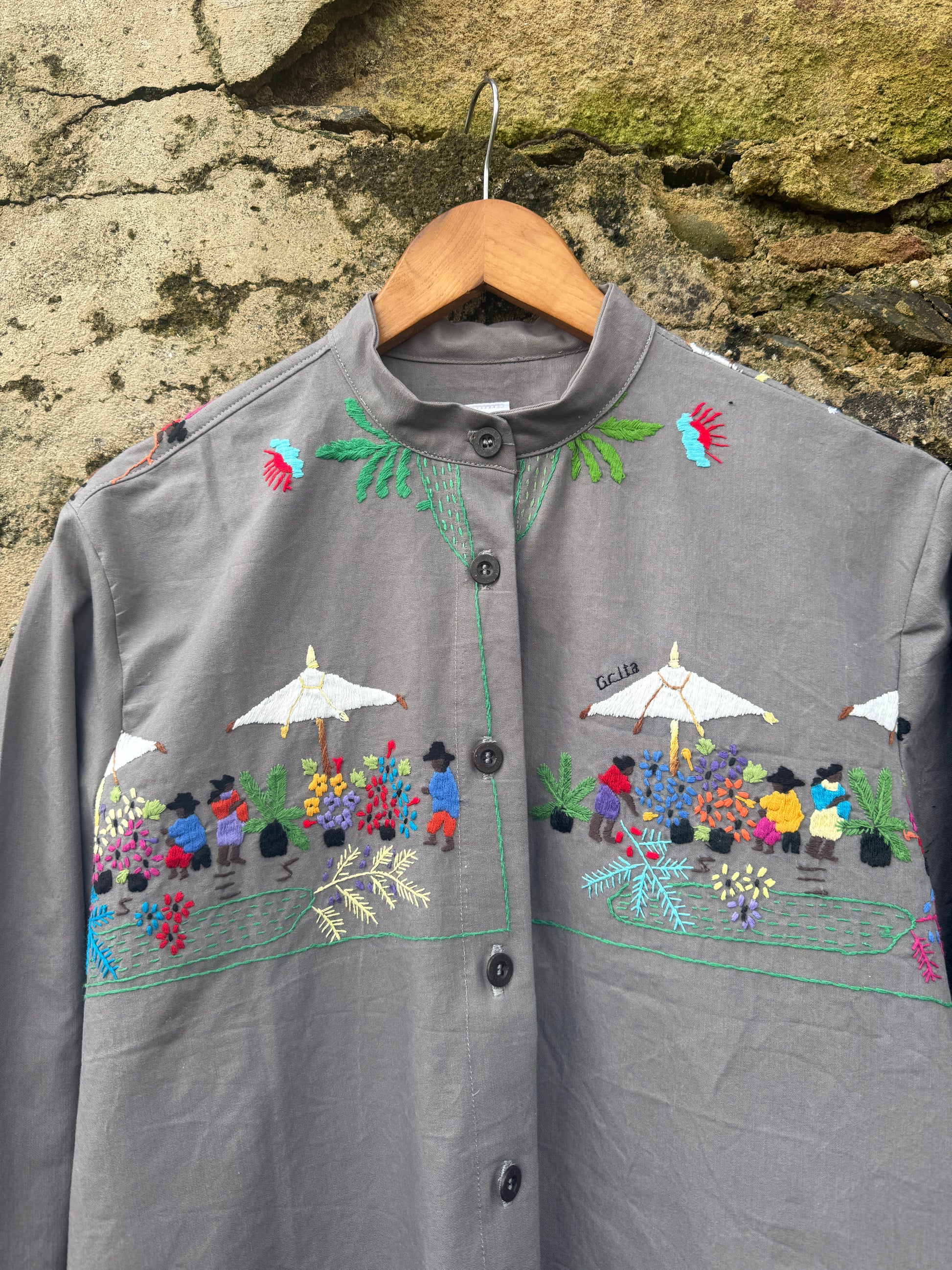 GRITA uses used fabrics giving them a new function. This shirt was an old tablecloth. Therefore, fabrics may have small imperfections or signs of wear that we try to disguise as best as possible.