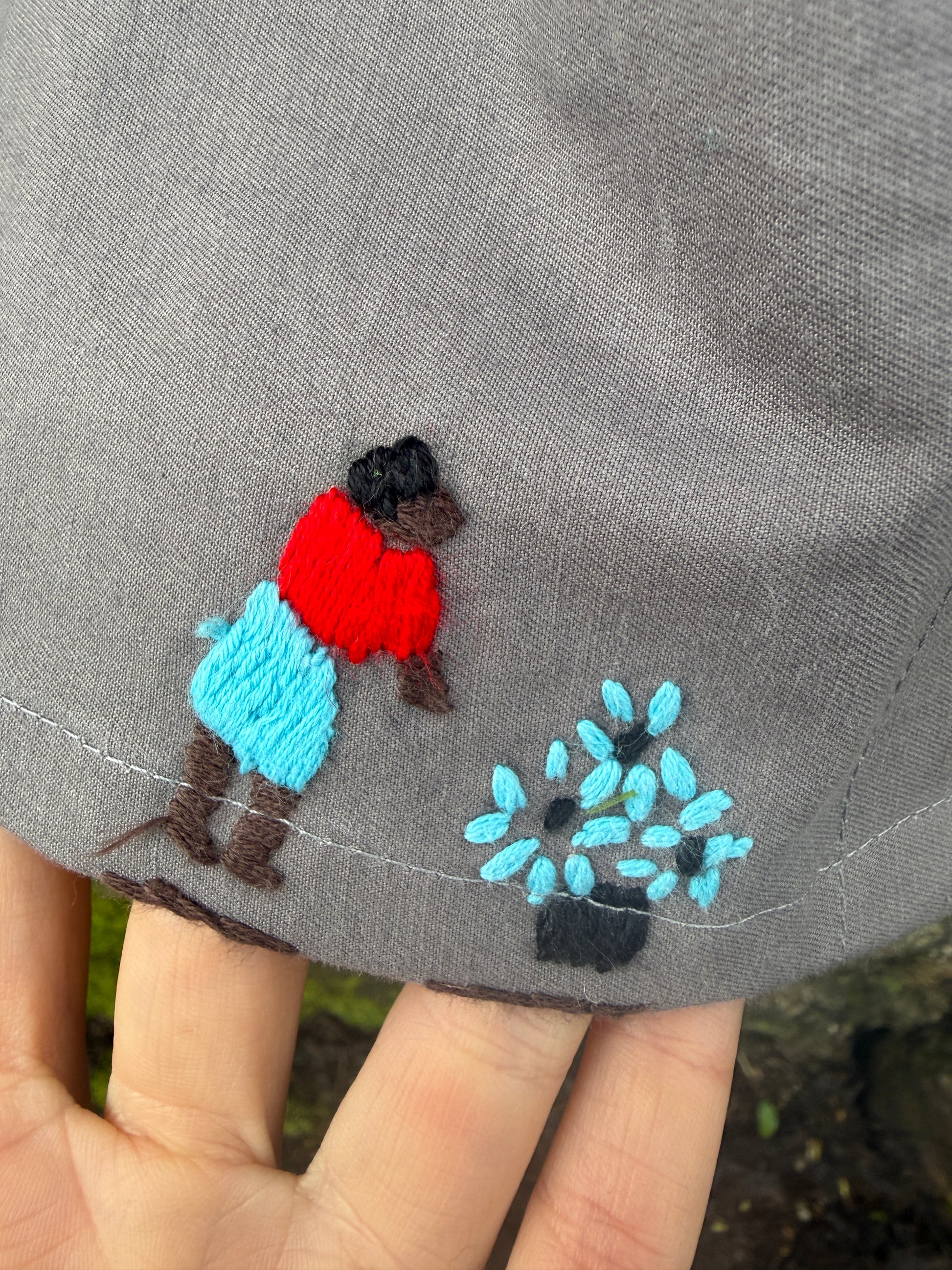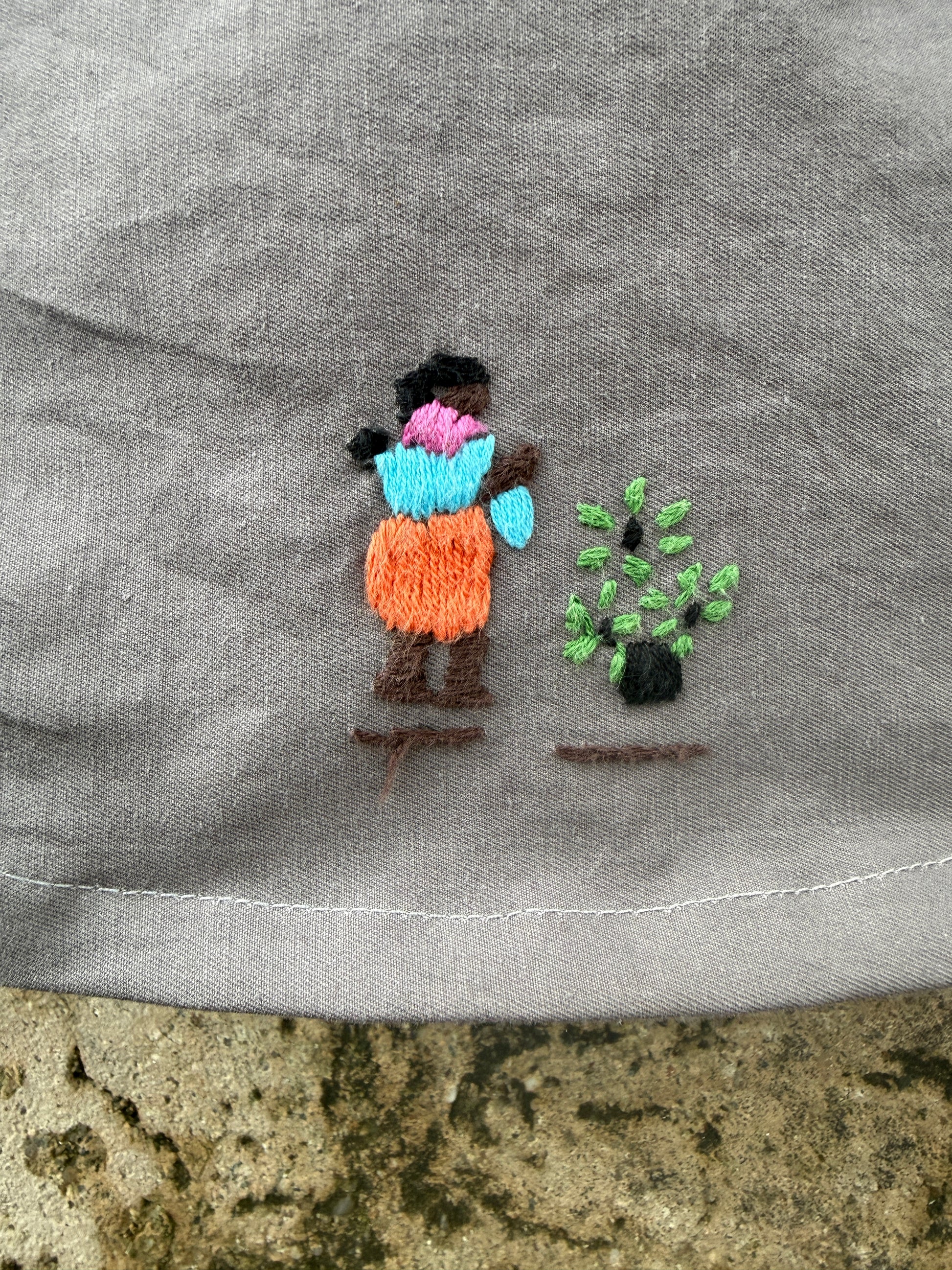 - Made from a discarded tablecloth and with a very special embroidery