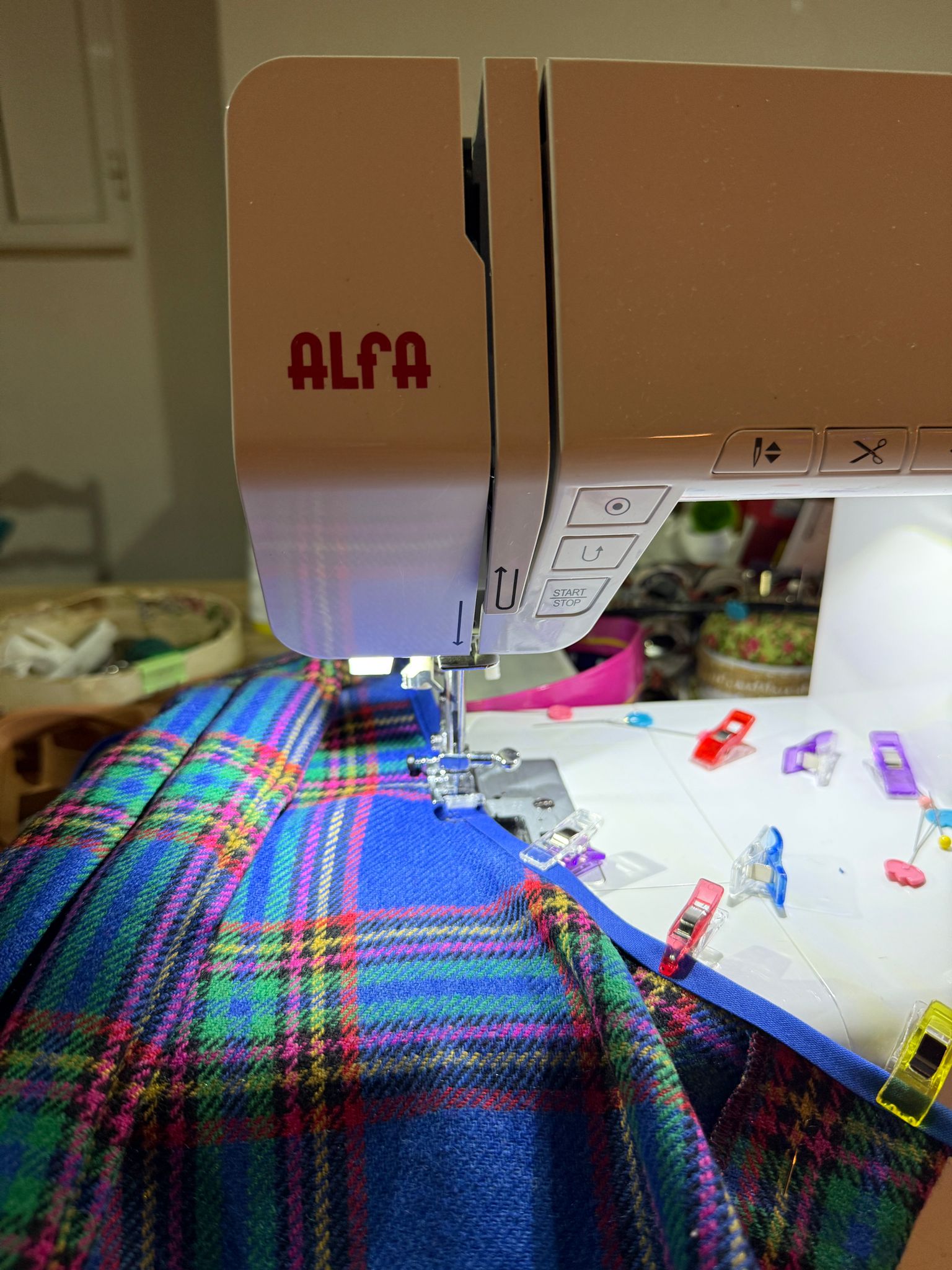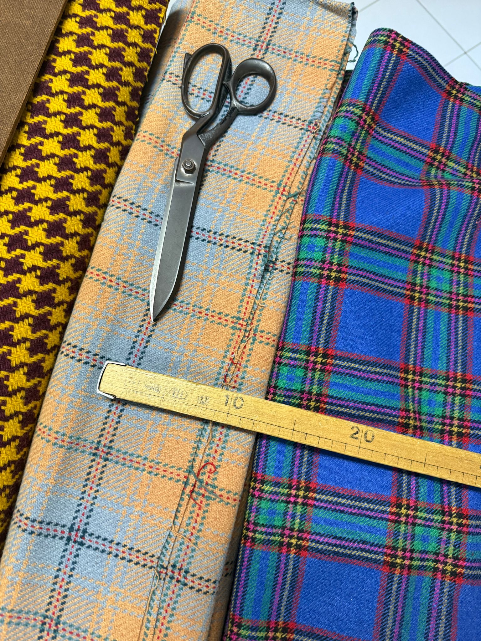 - Tecido azul em lã (90%)