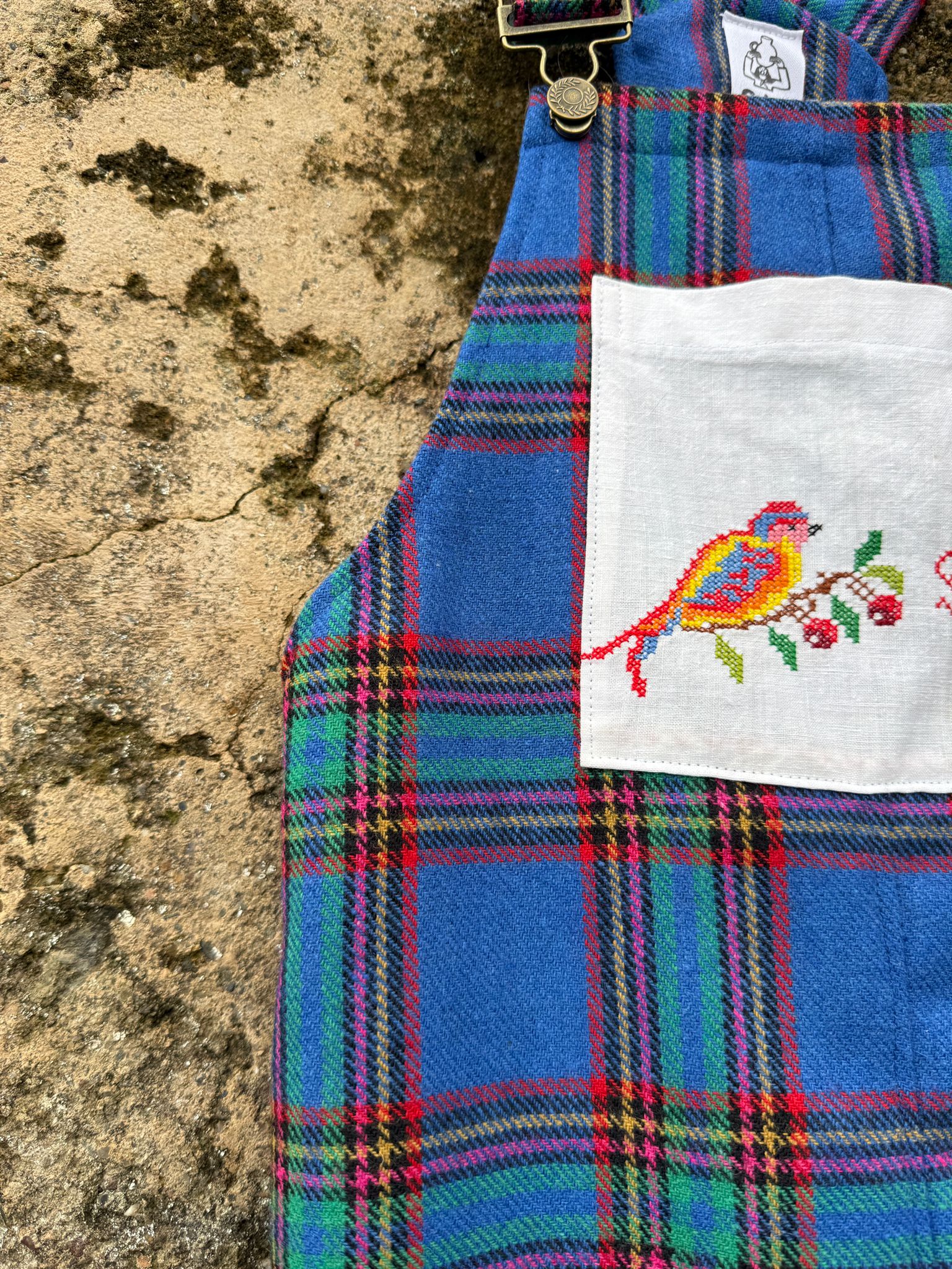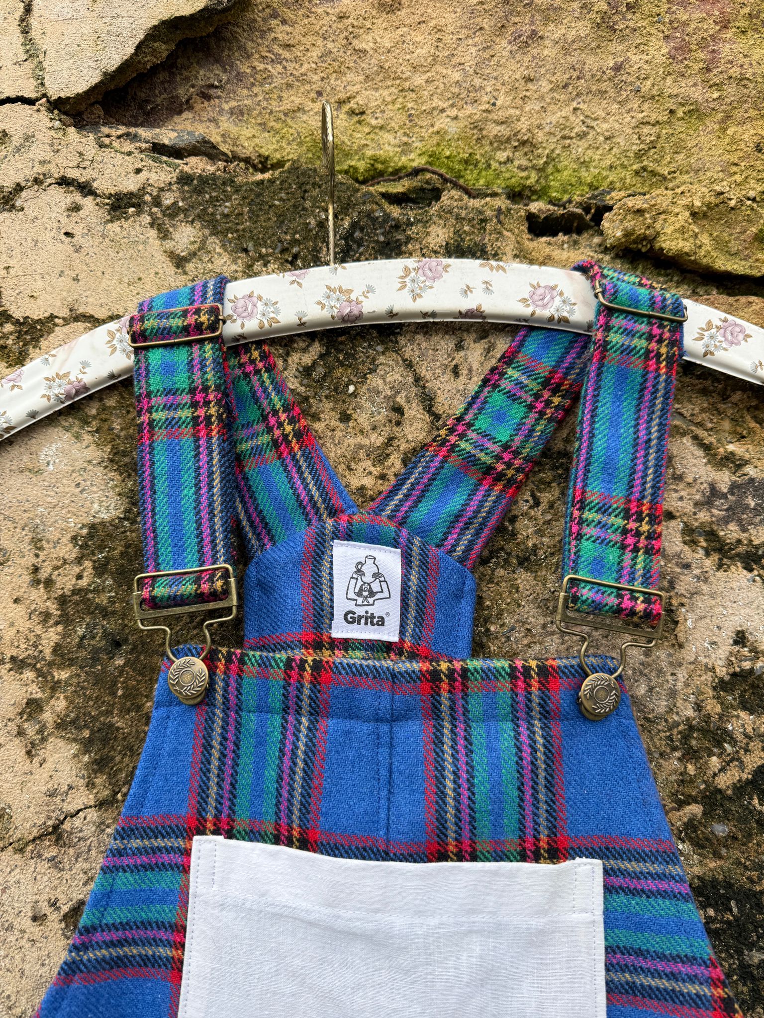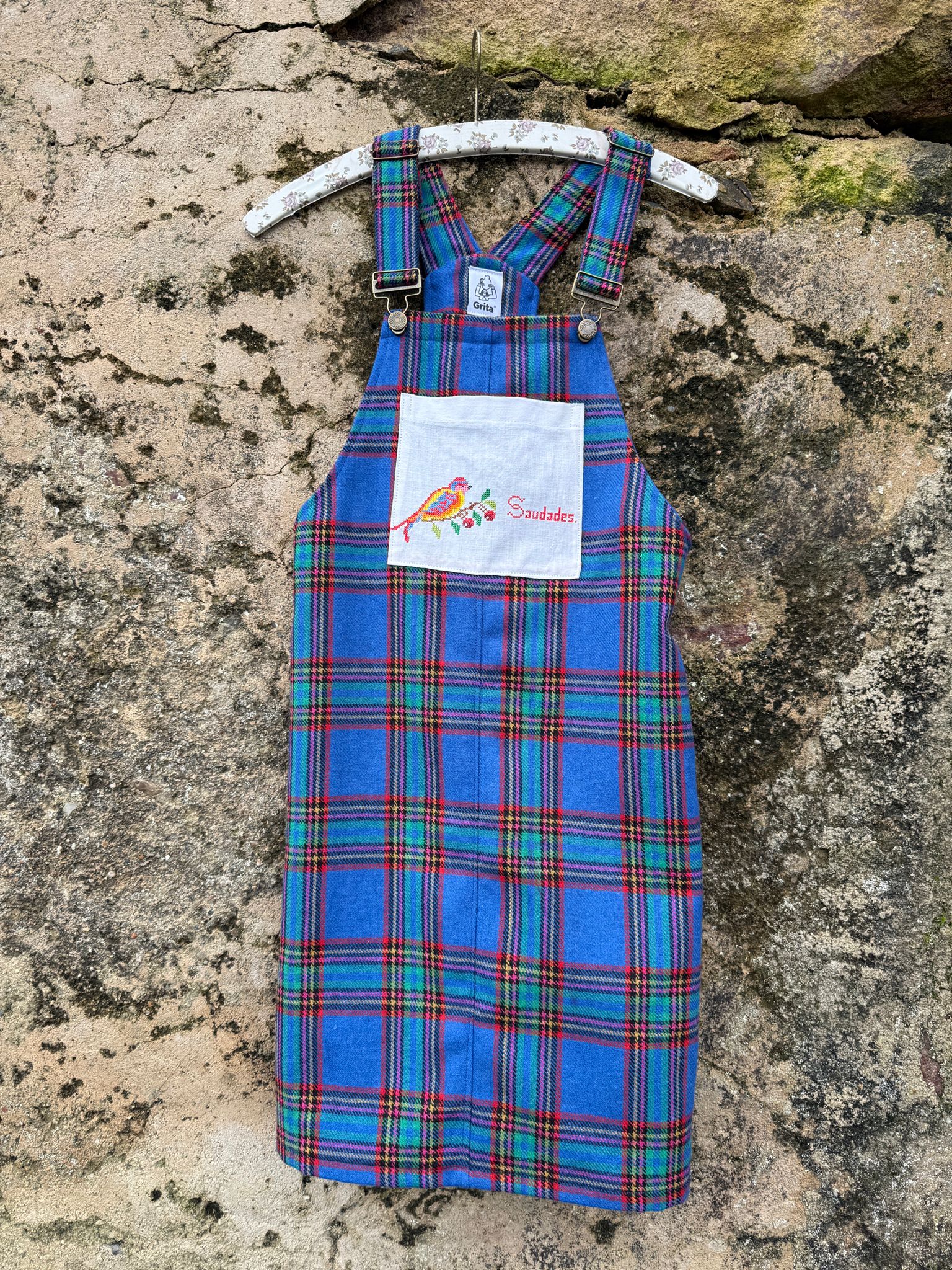 Jardineiras muito giras e quentinhas feitas com um tecido em lã (90%) e um bolso "Grita" feito com um envelope de guardanapo