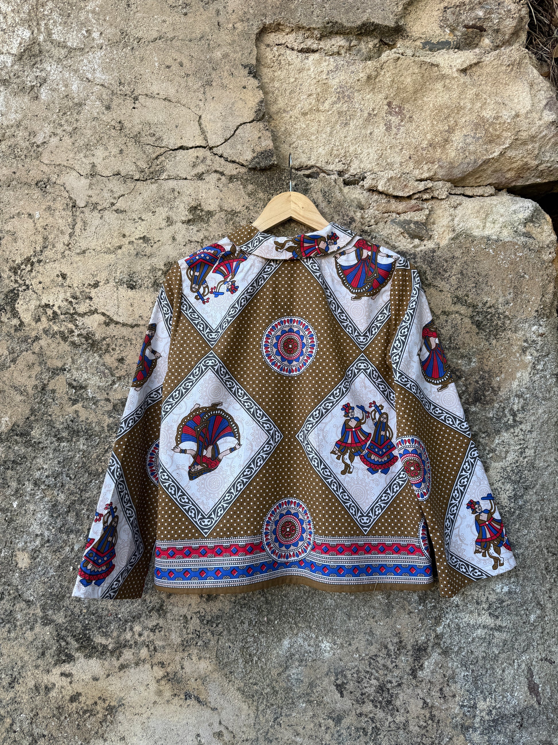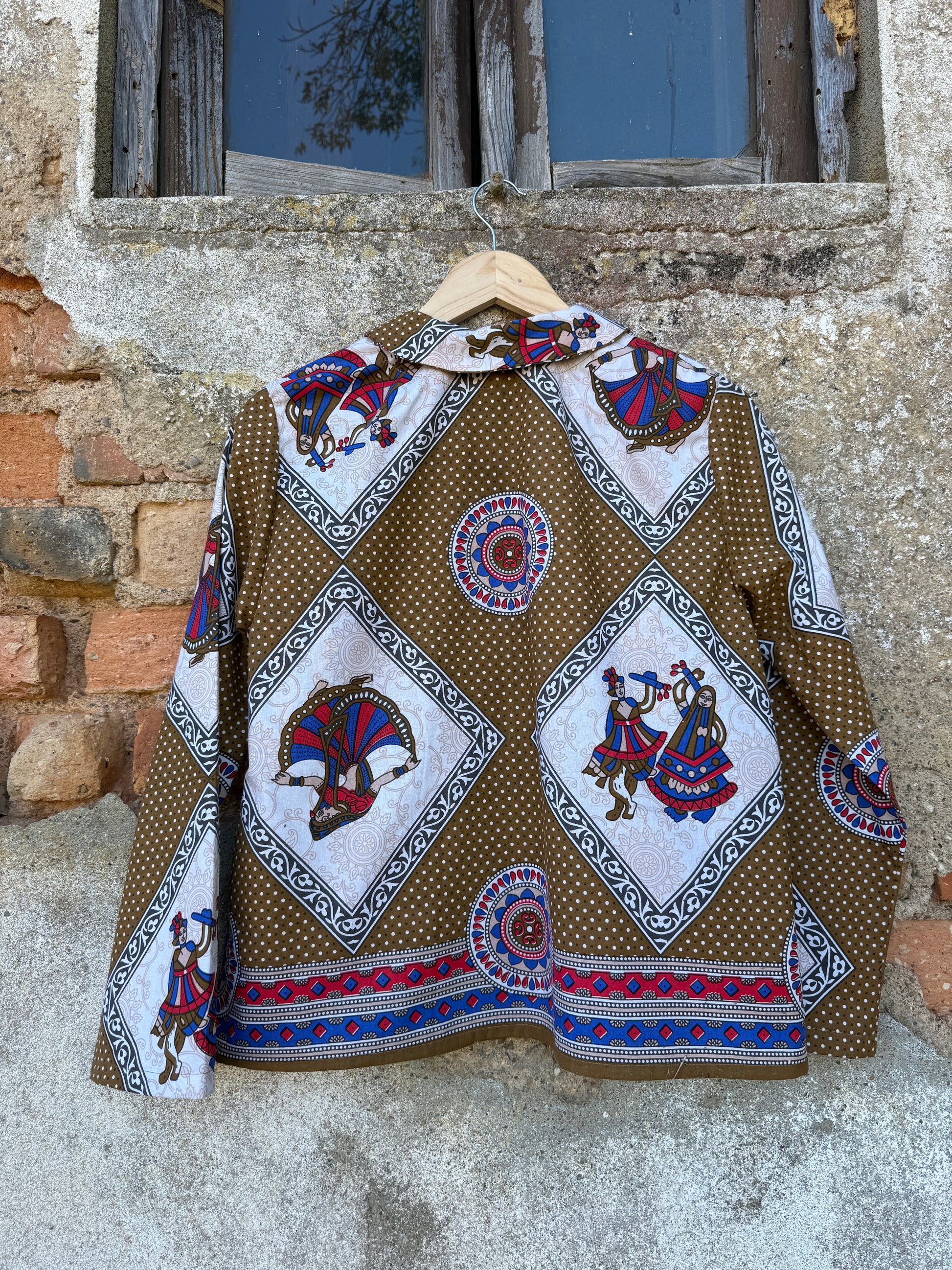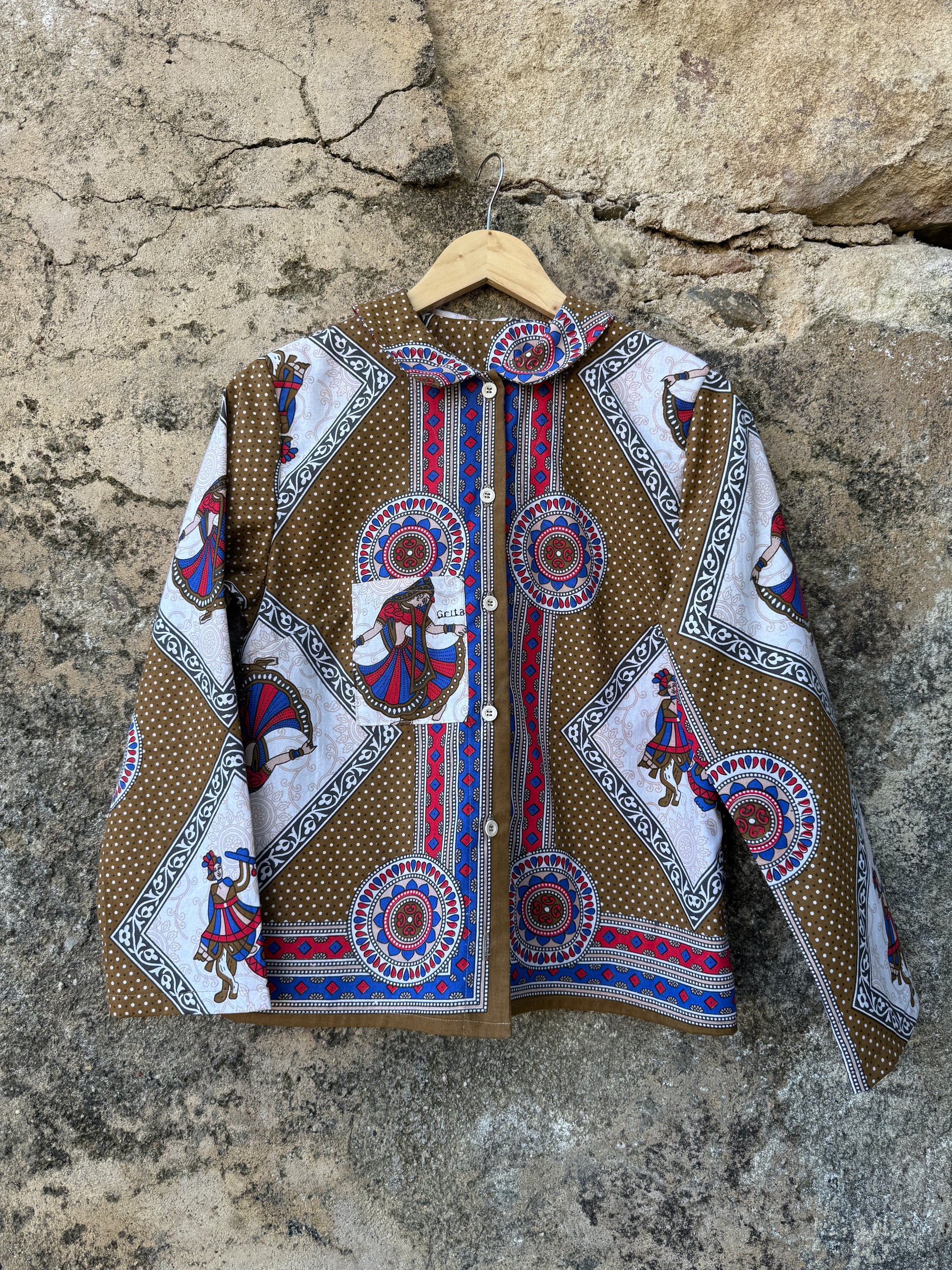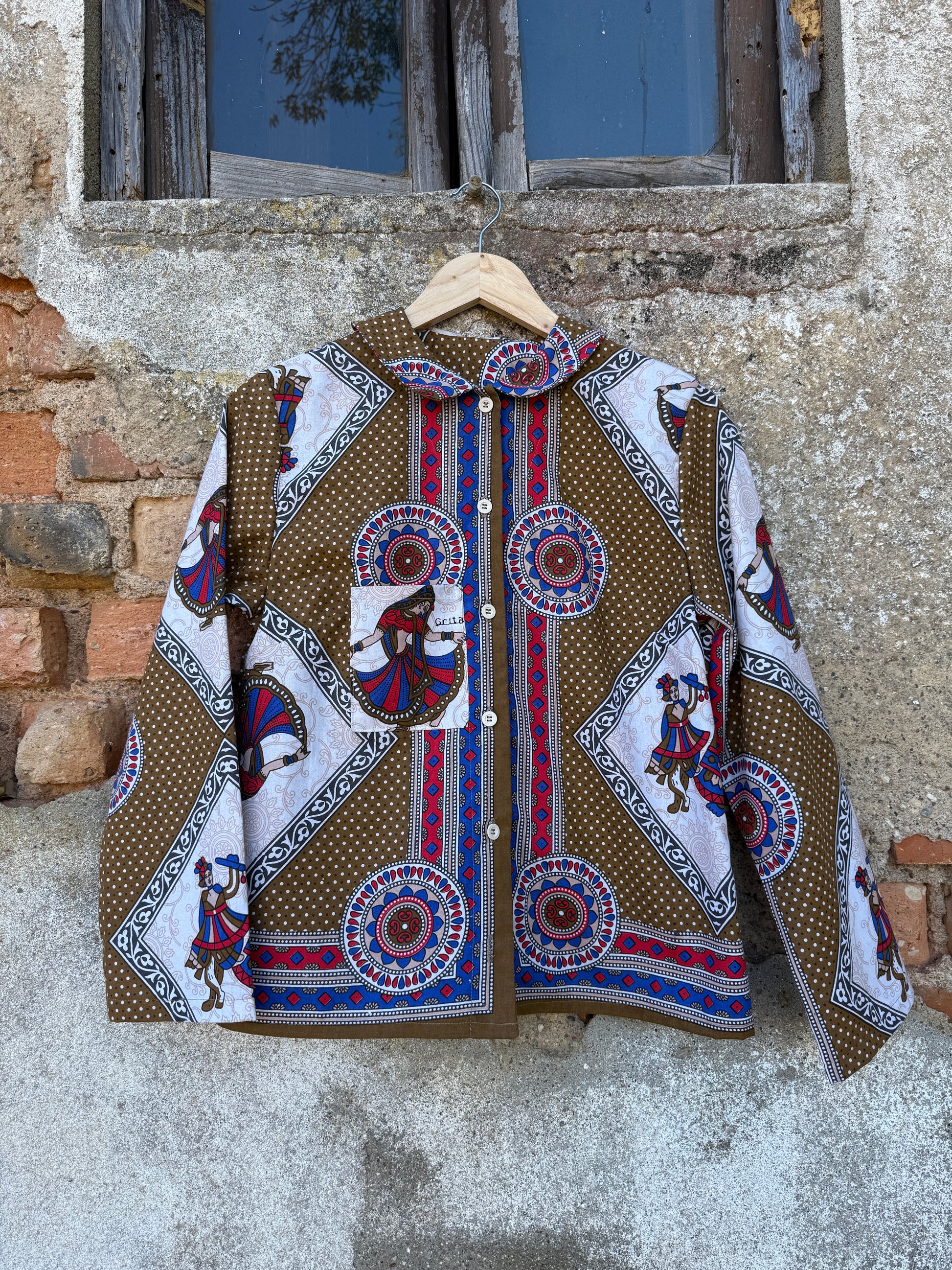 Camisa-jaqueta única e especial feita com um lençol estampado trazido de Mumbai, Índia