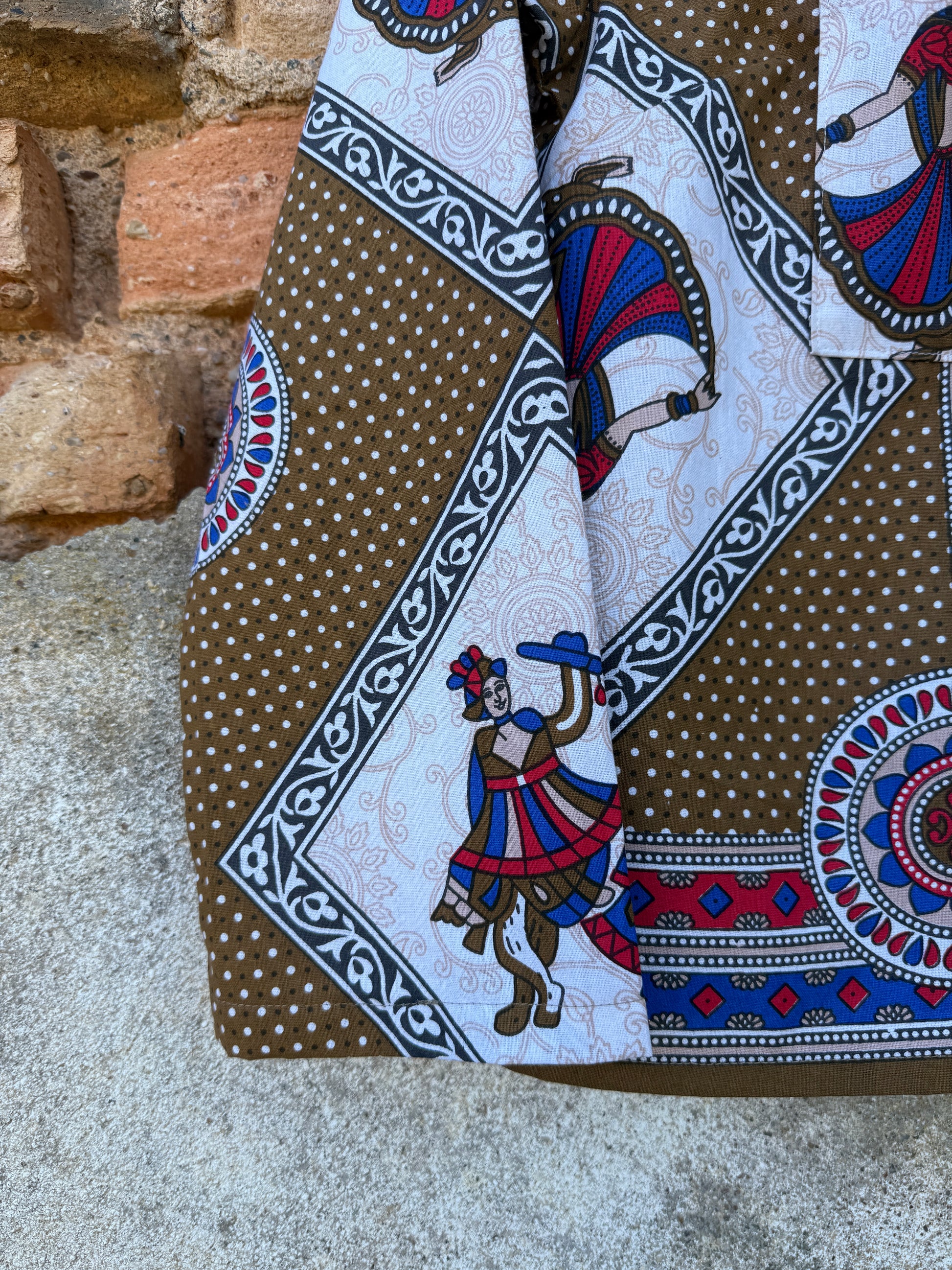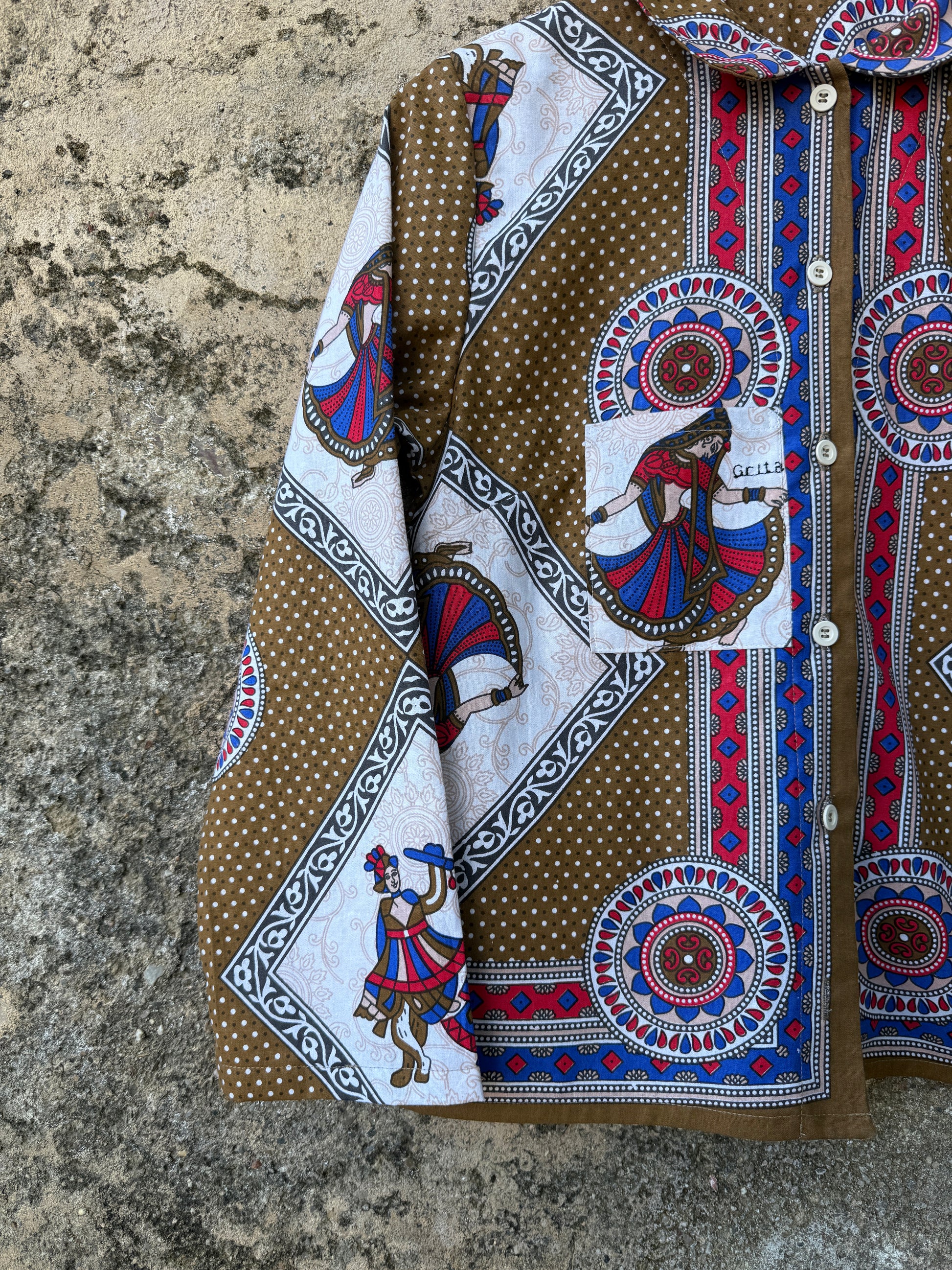 One-off-a-kind shirt made with a printed sheet brought from Mumbai