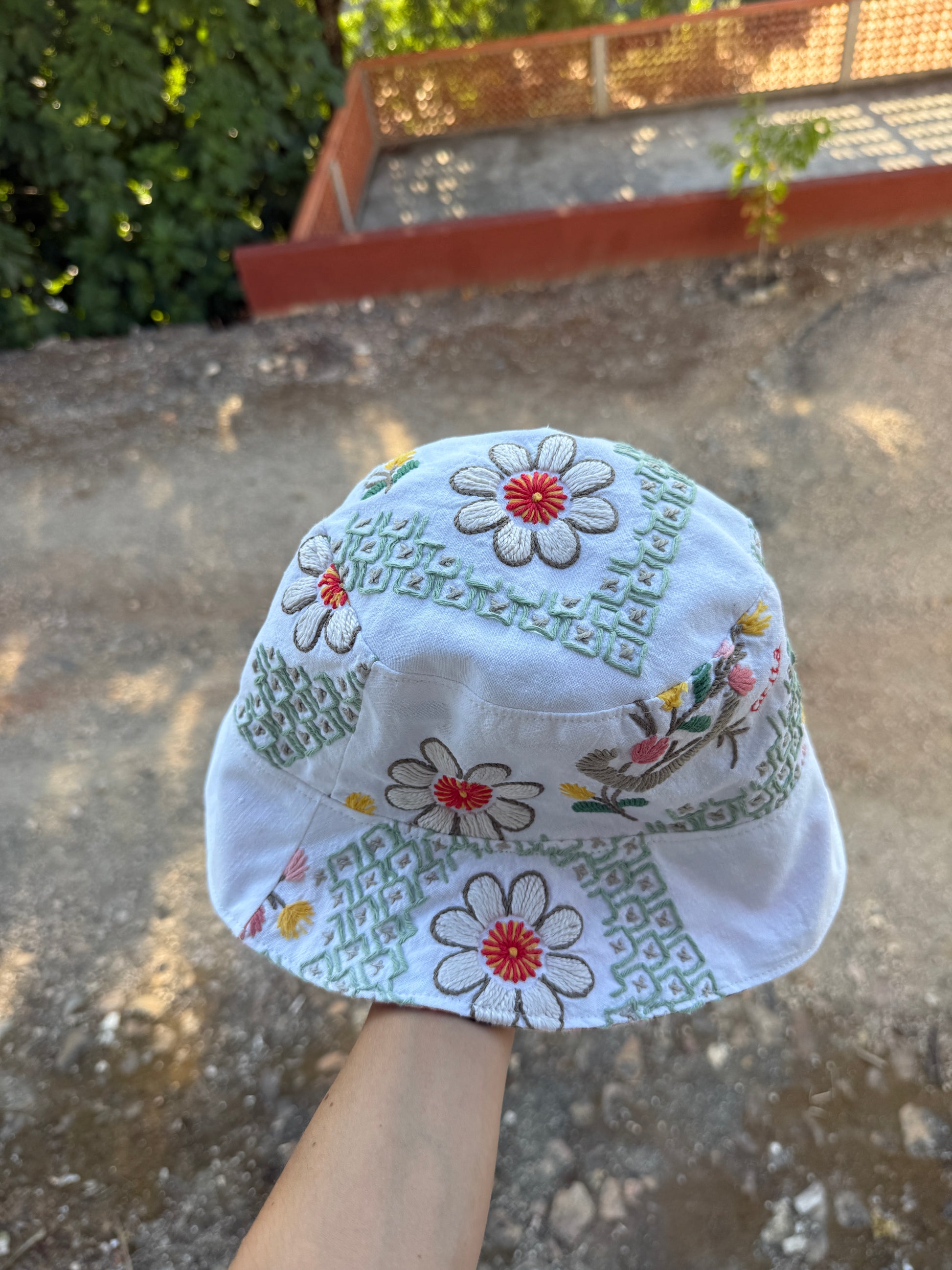- Made with a hand-embroidered linen tablecloth and an old flowery fabric that was normally used in home decoration