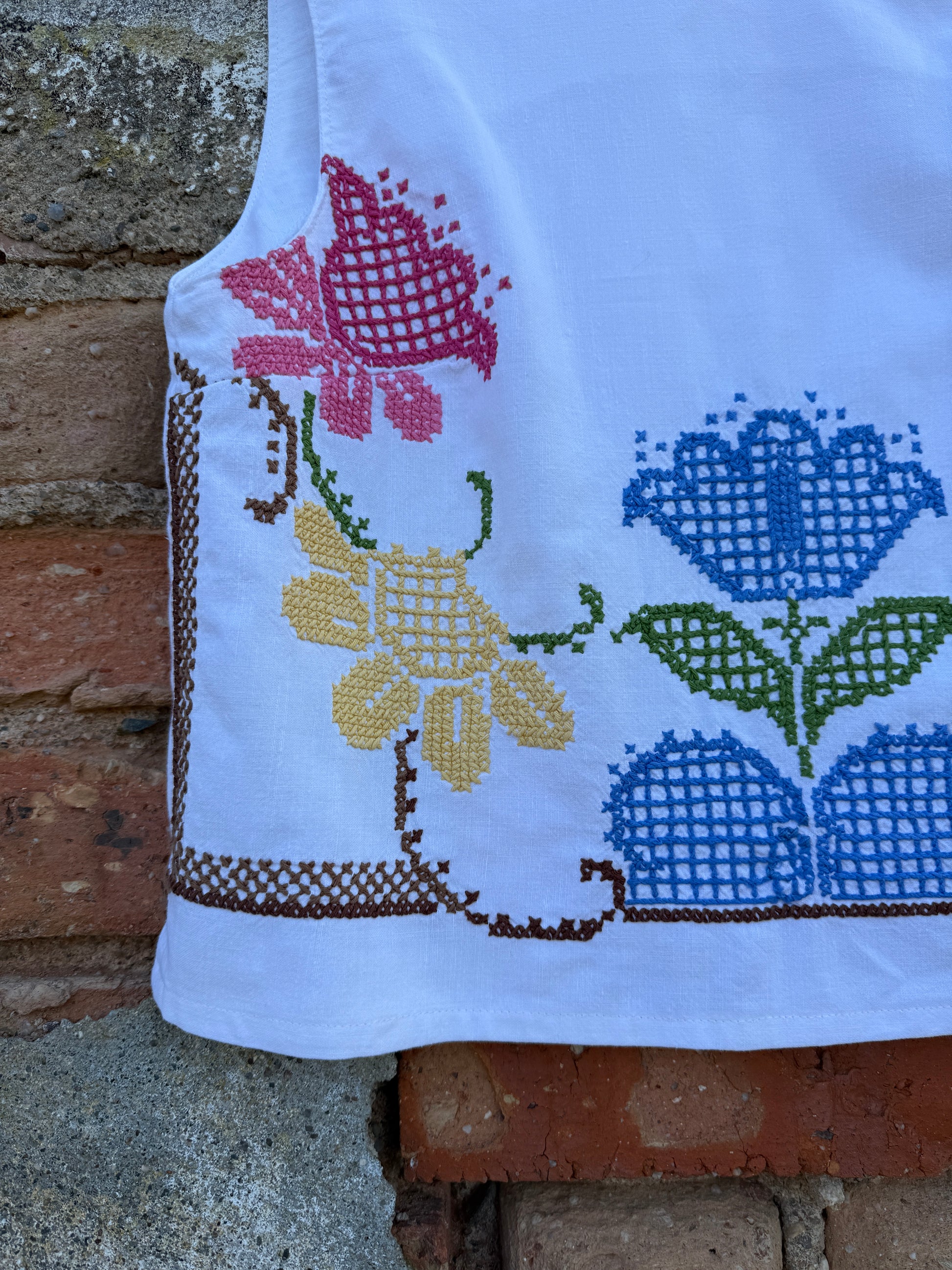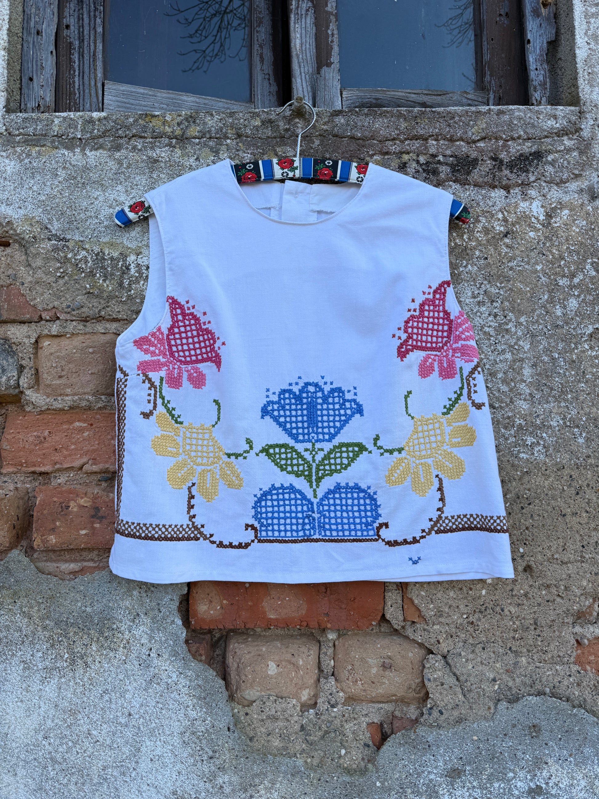 Beautiful top made from a hand-embroidered linen curtain