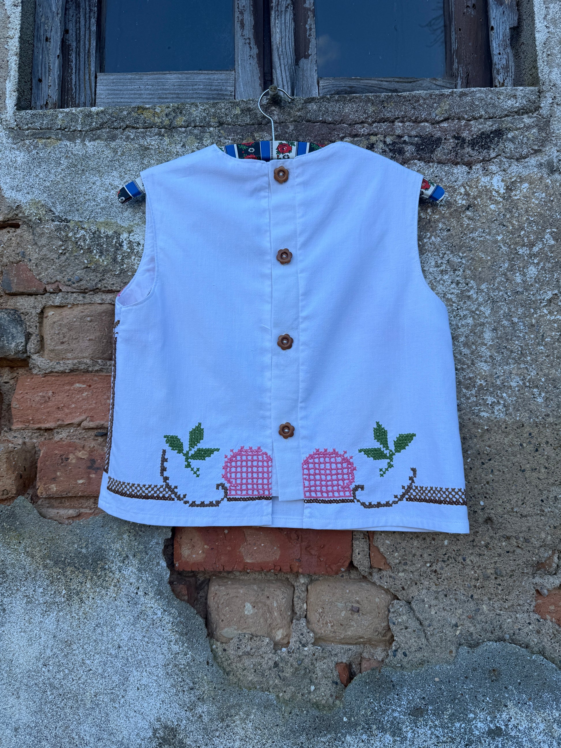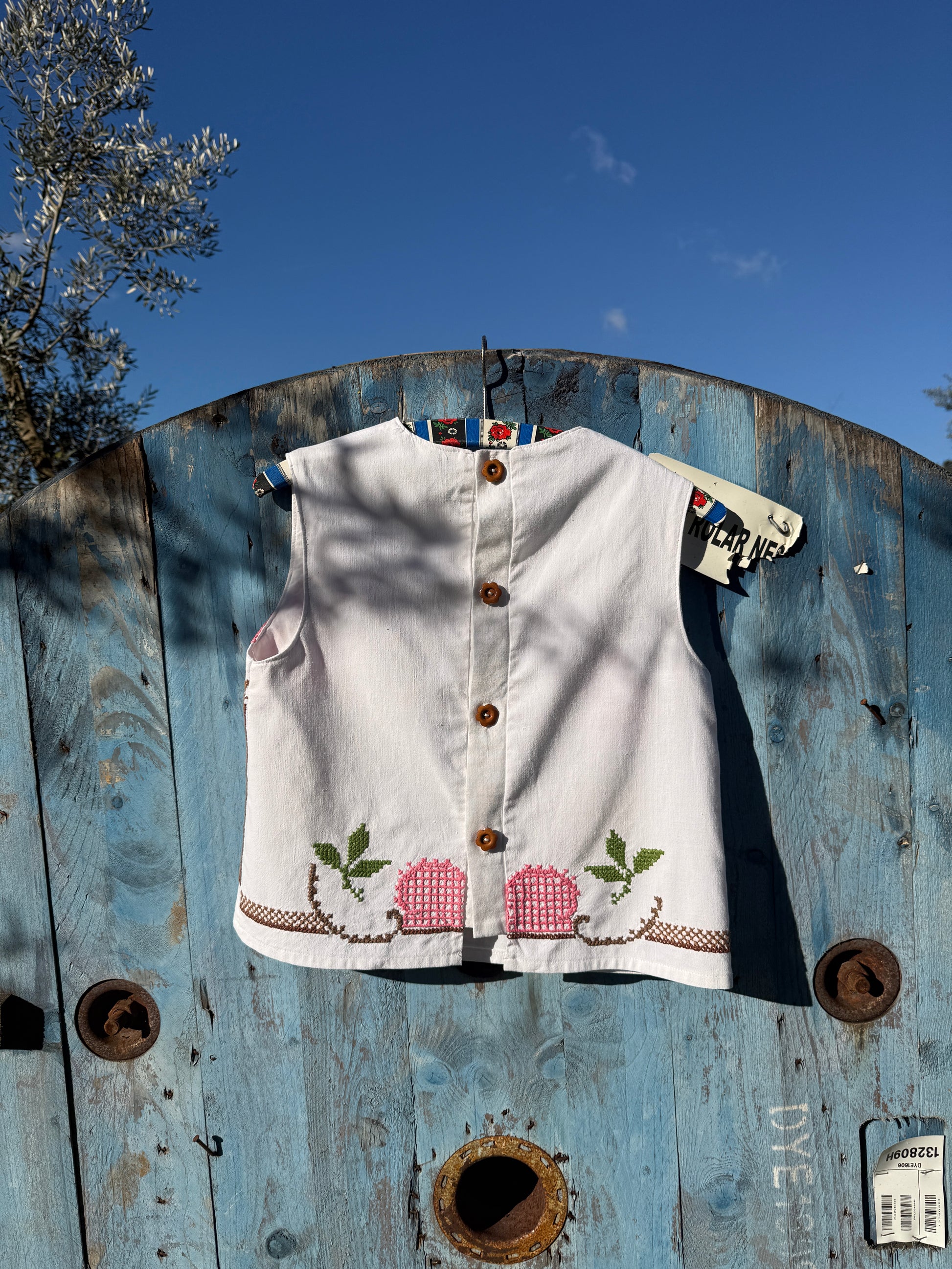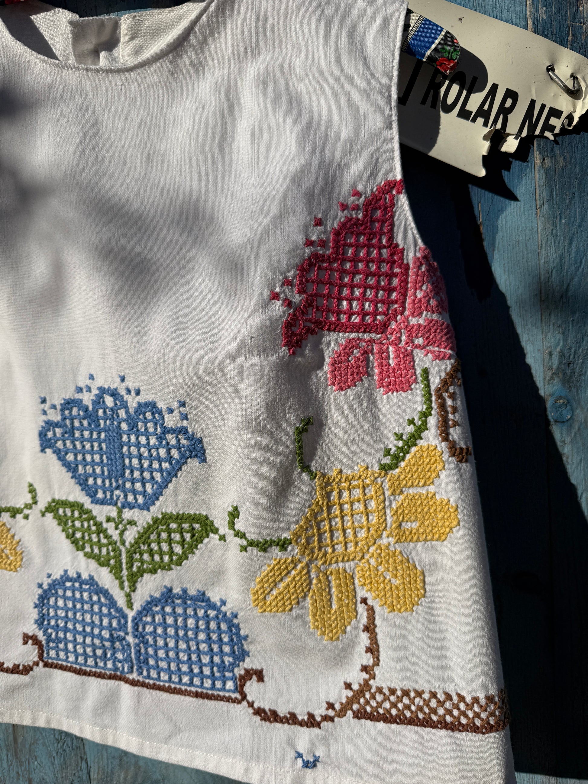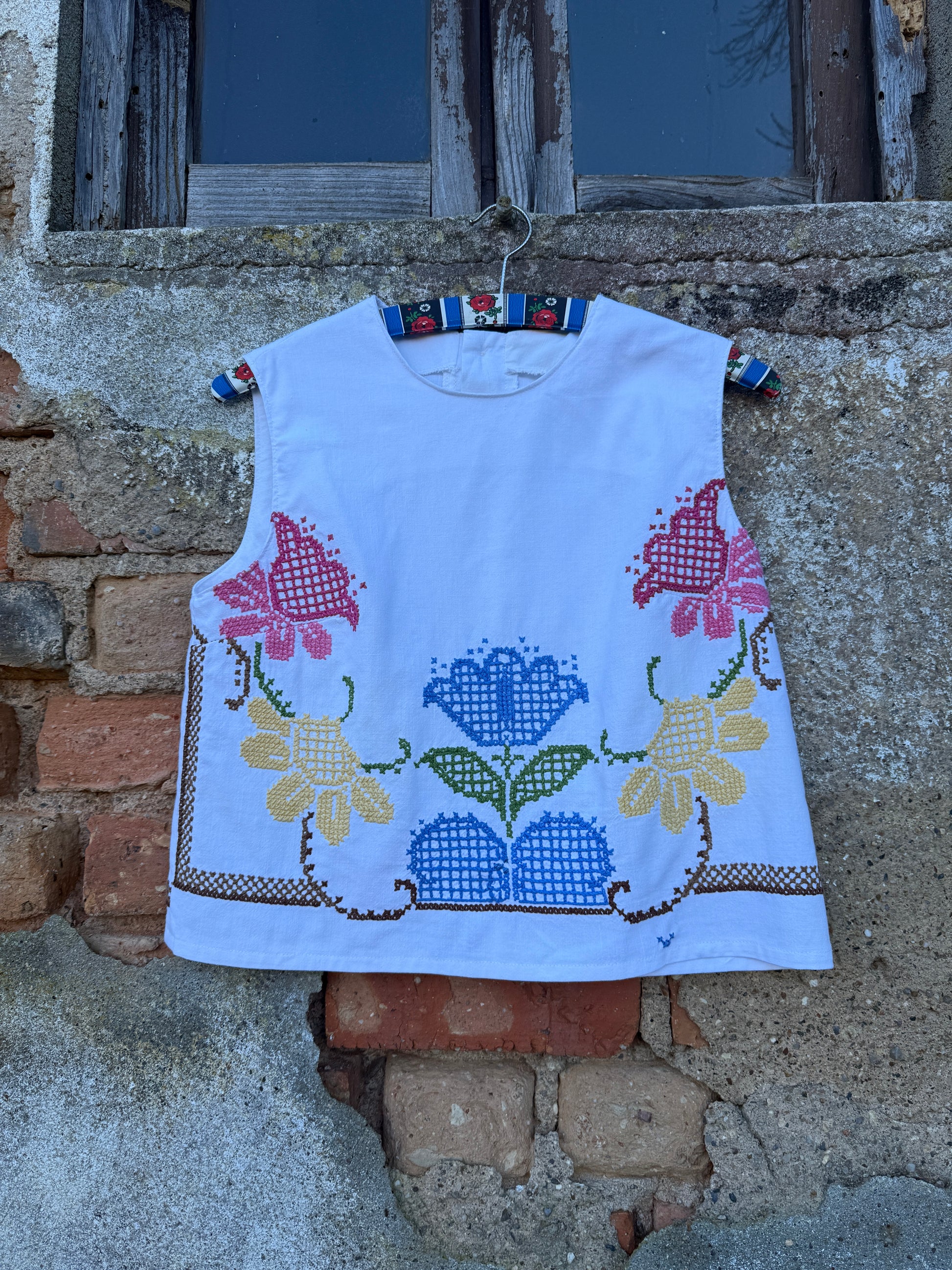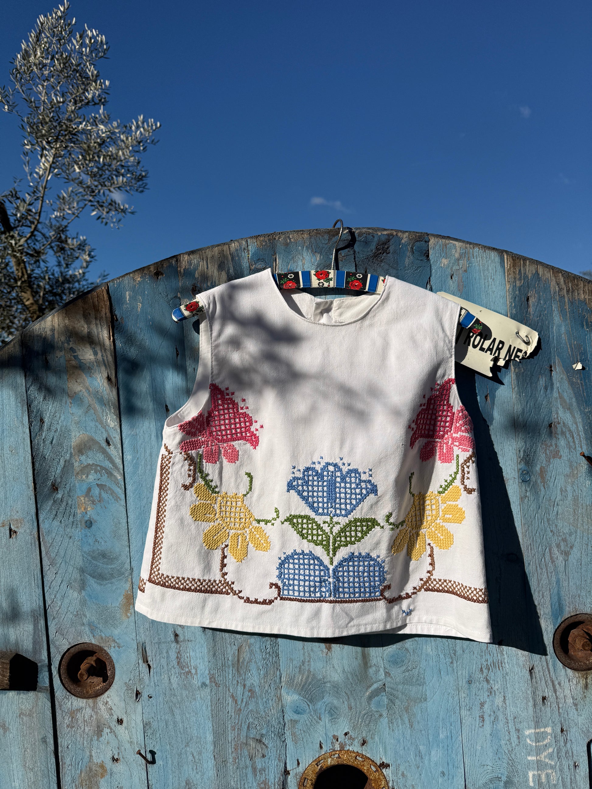 Top muito bonito feito com uma cortina em linho bordada à mão