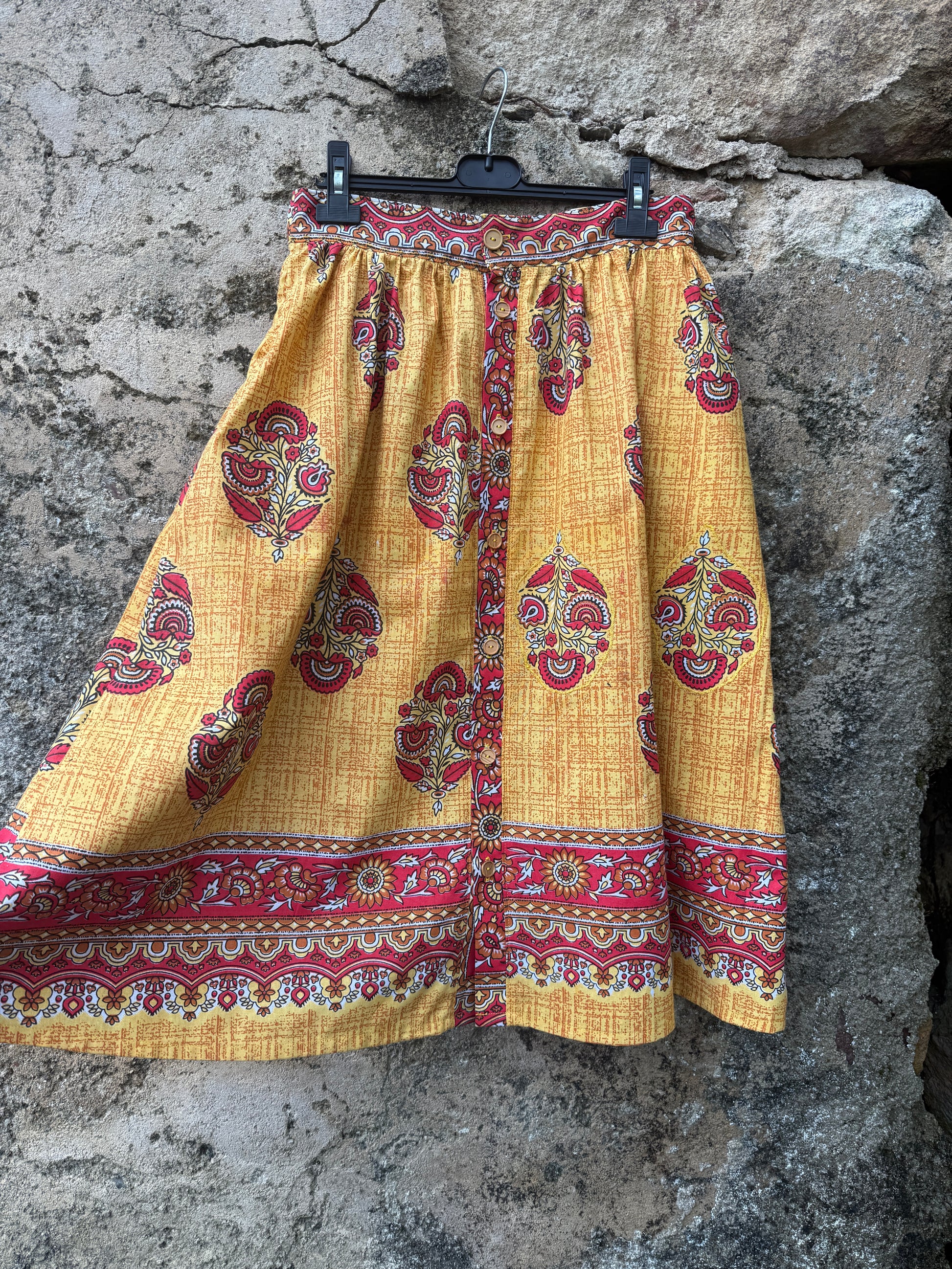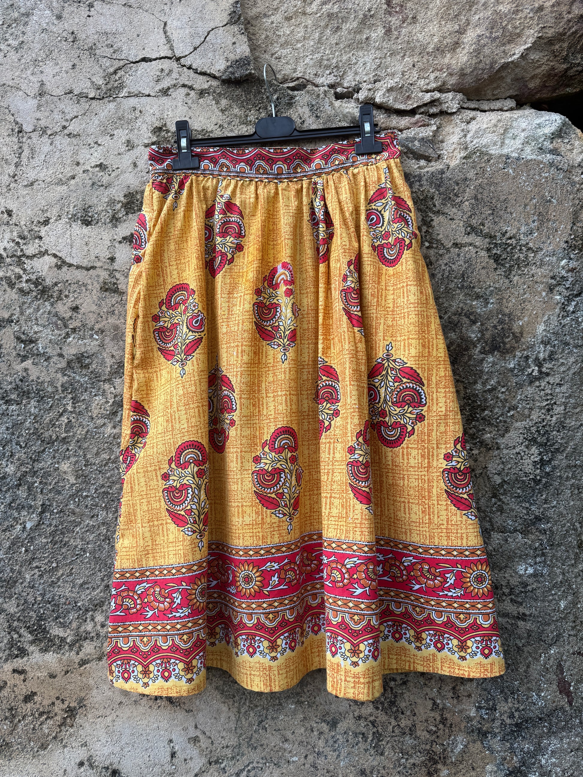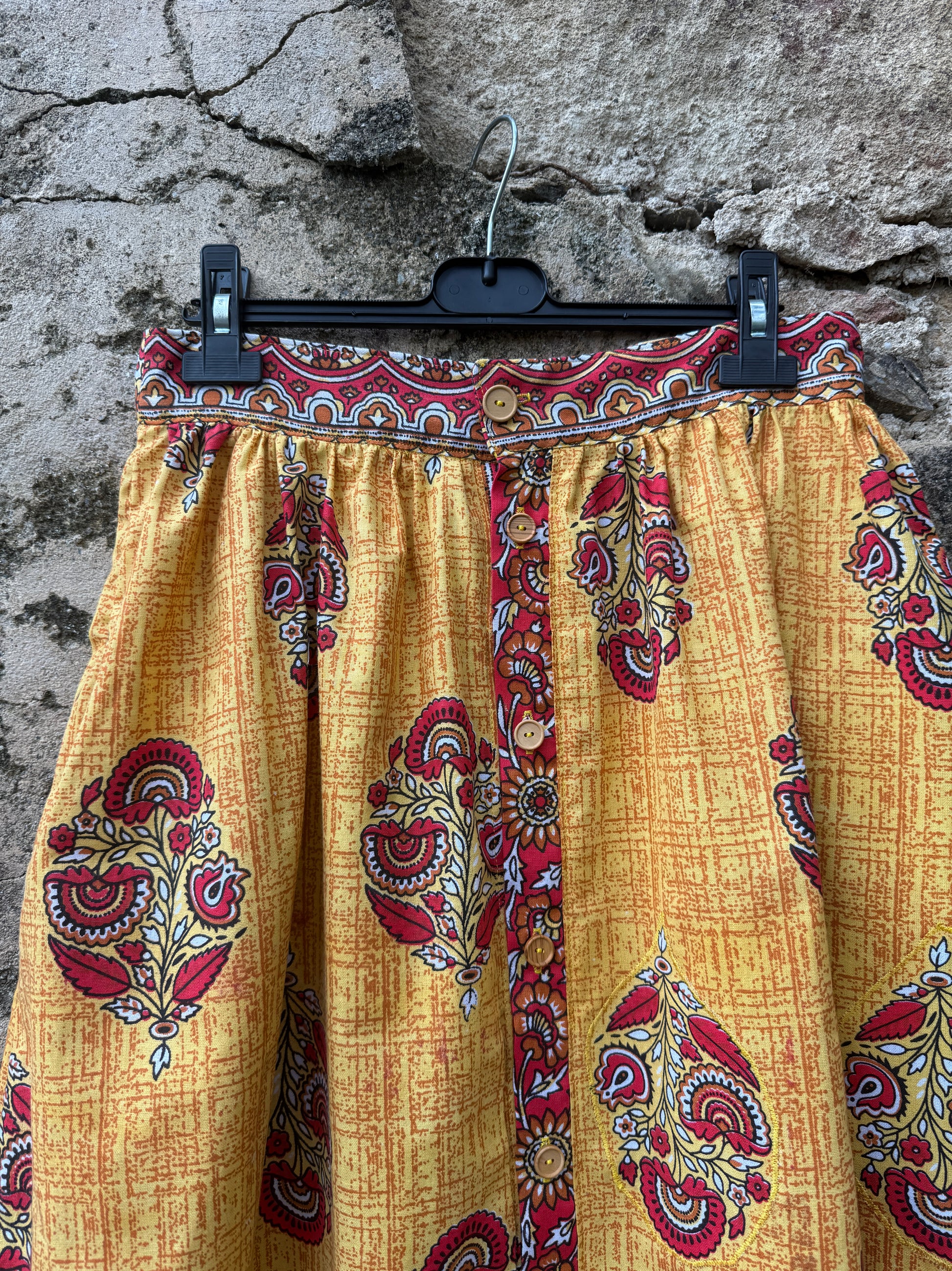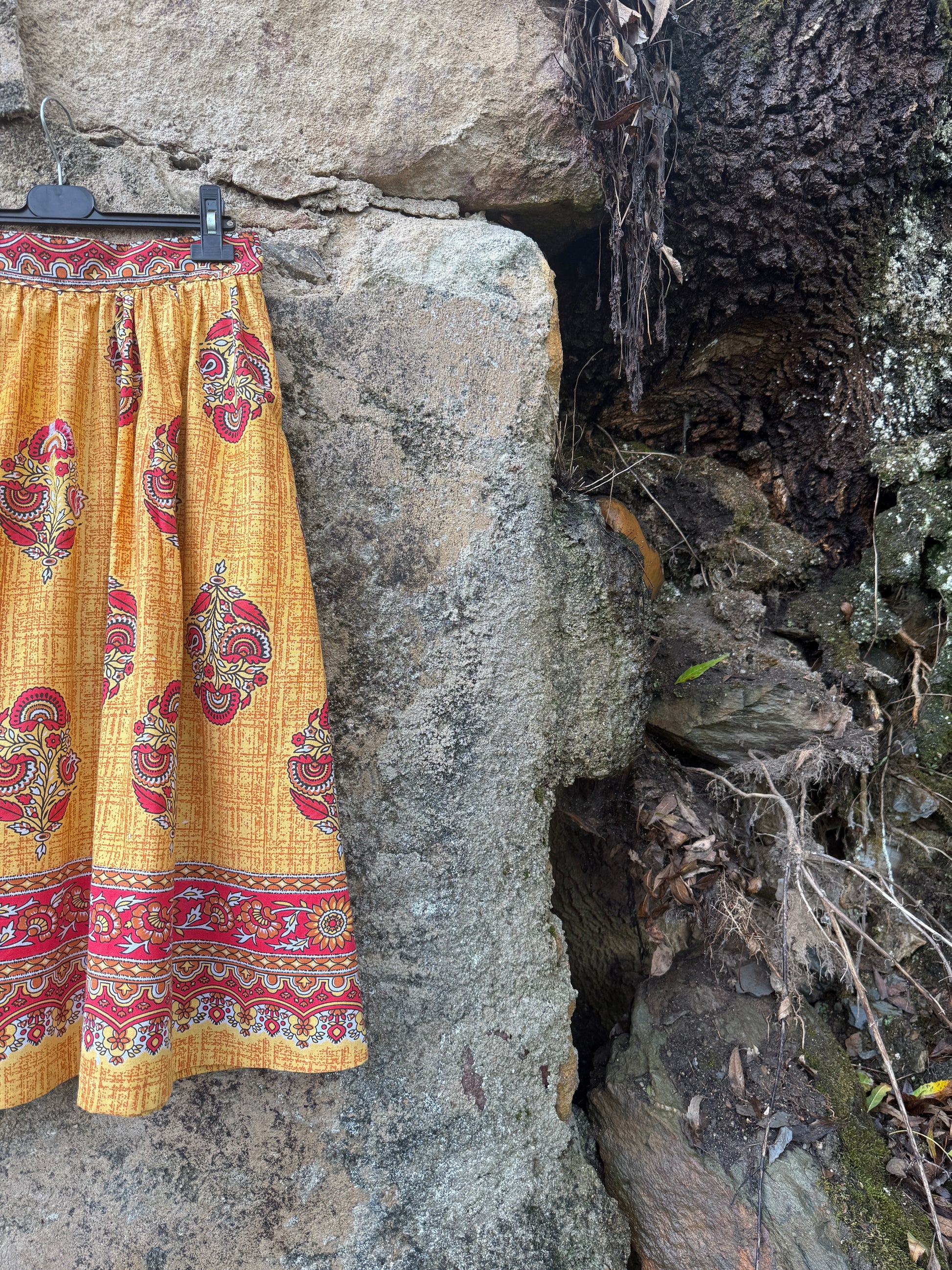 One-off-a-kind skirt made with a printed sheet brought from Mumbai