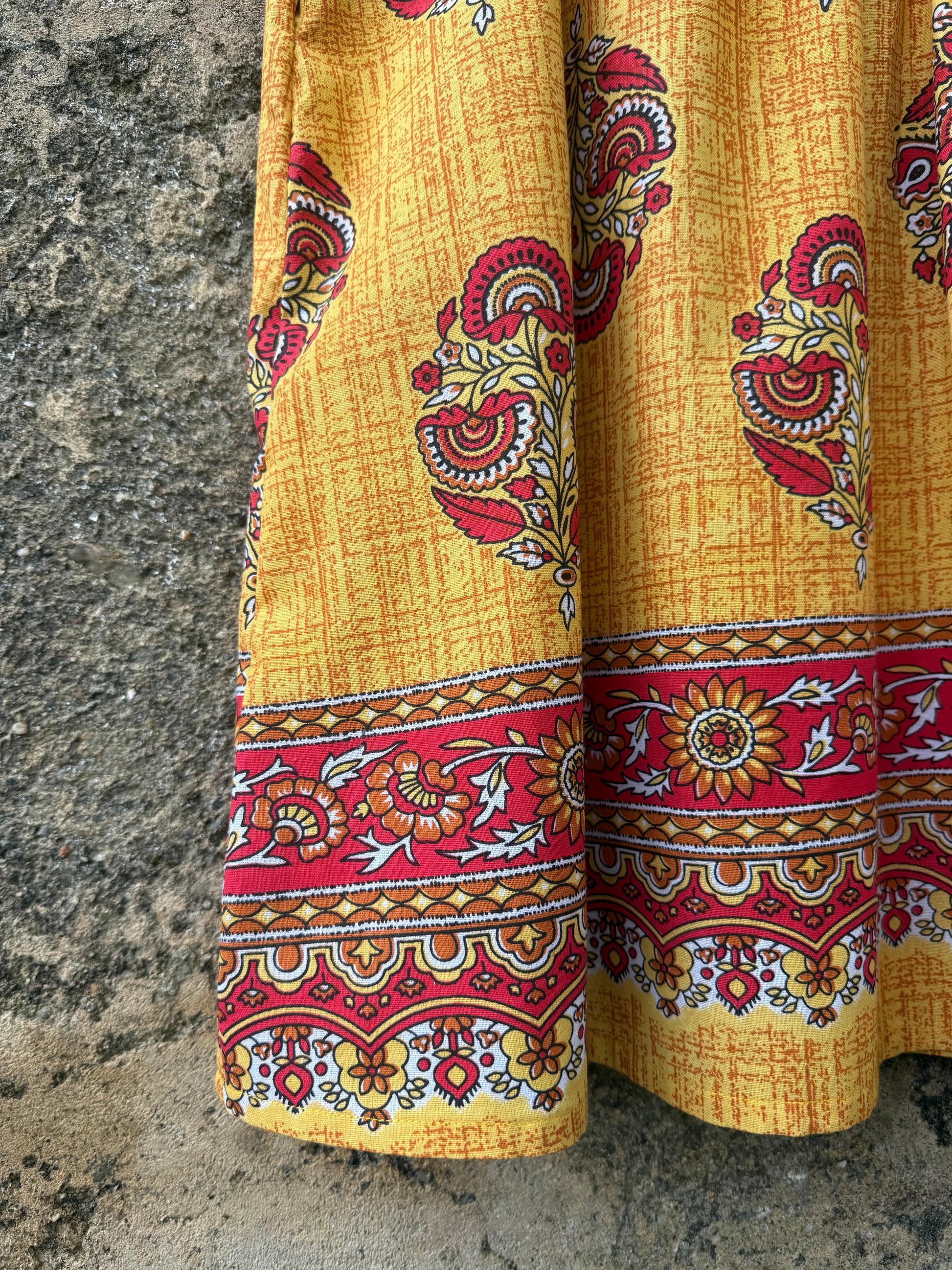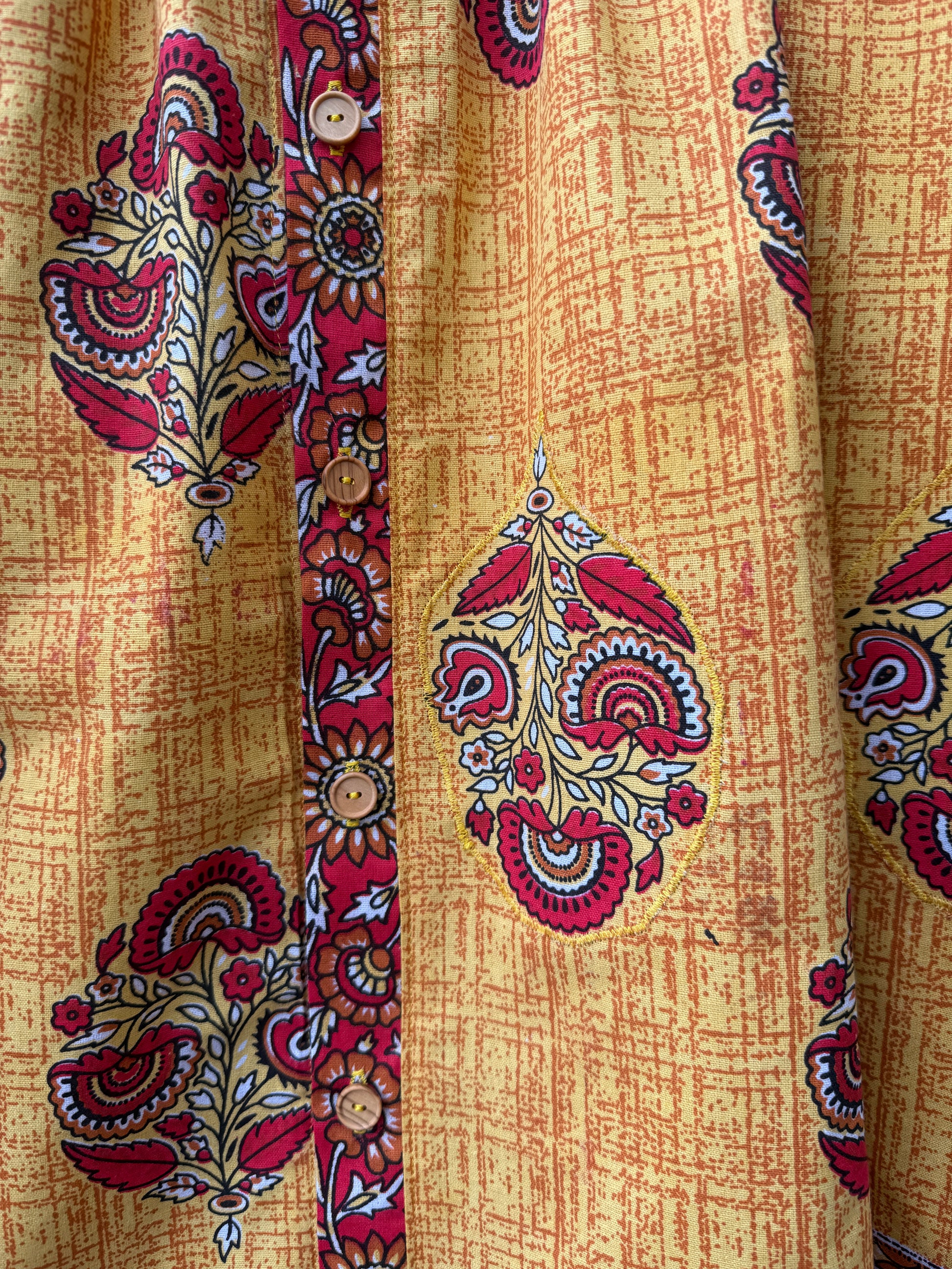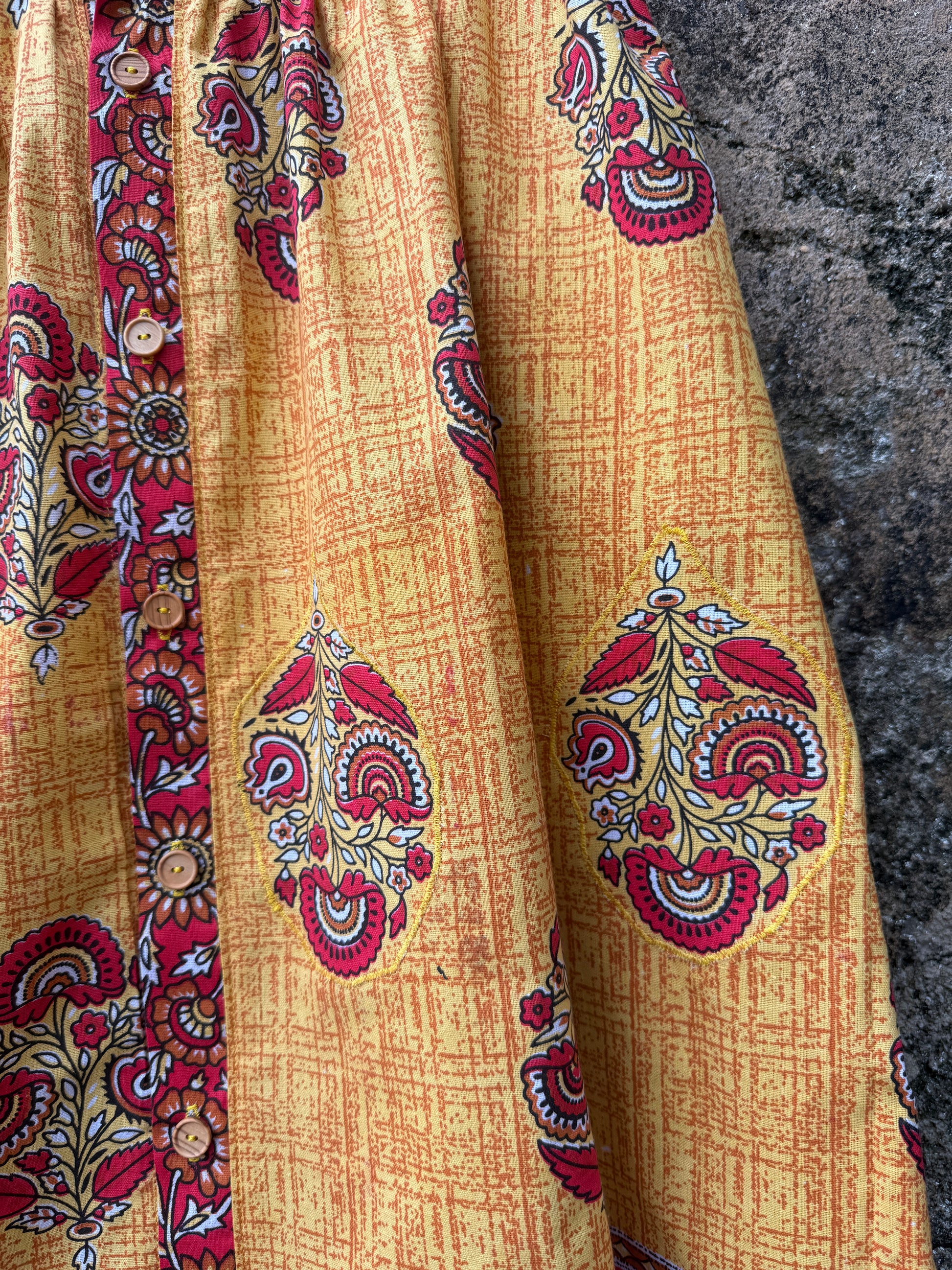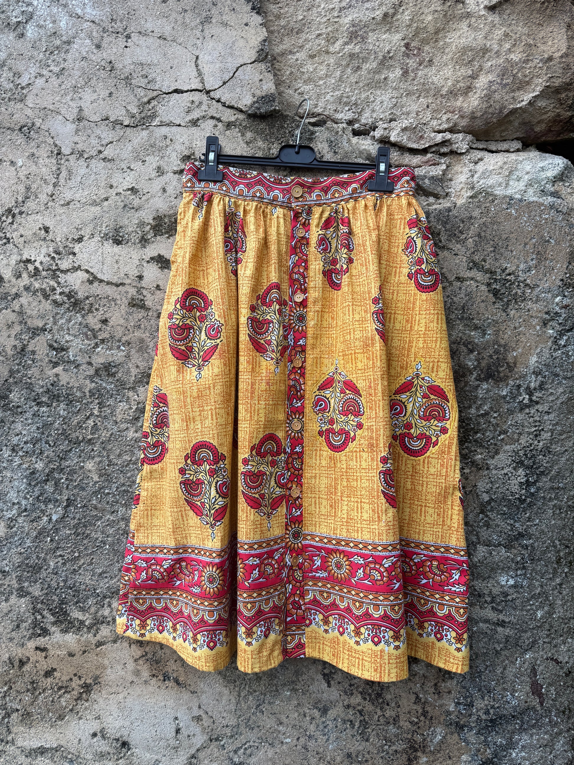 One-off-a-kind skirt made with a printed sheet brought from Mumbai