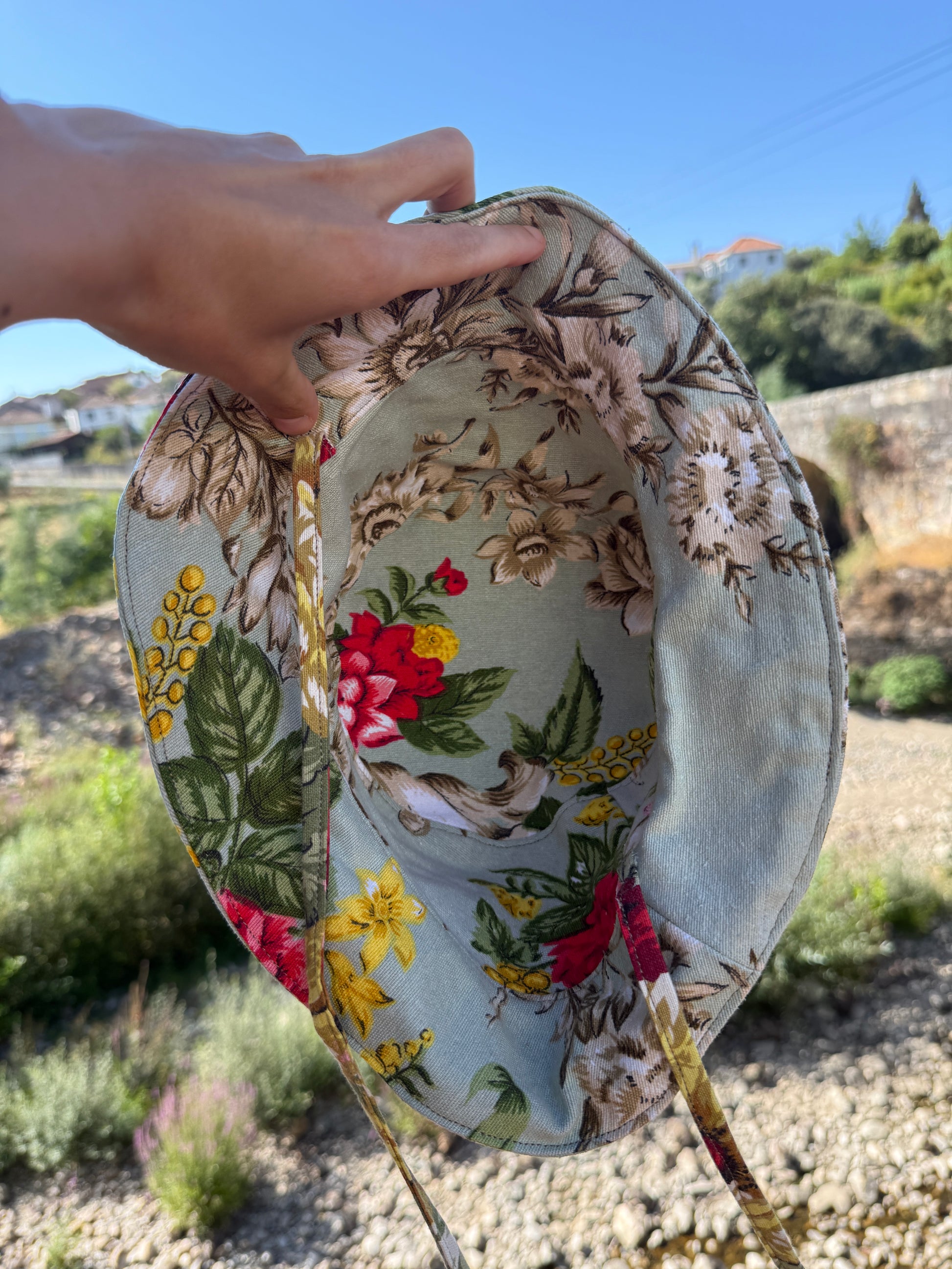 Bonito chapéu bordado reversível
