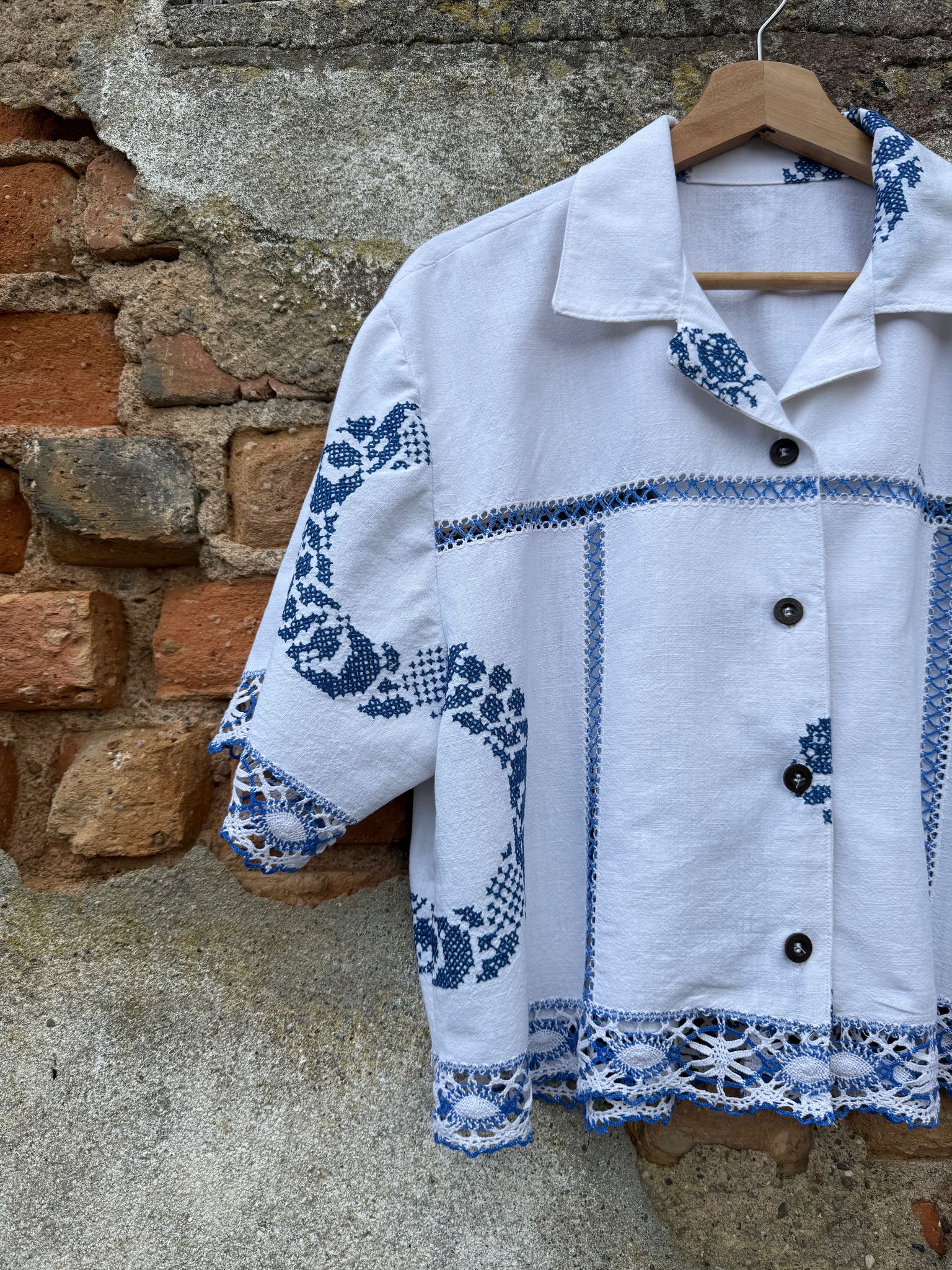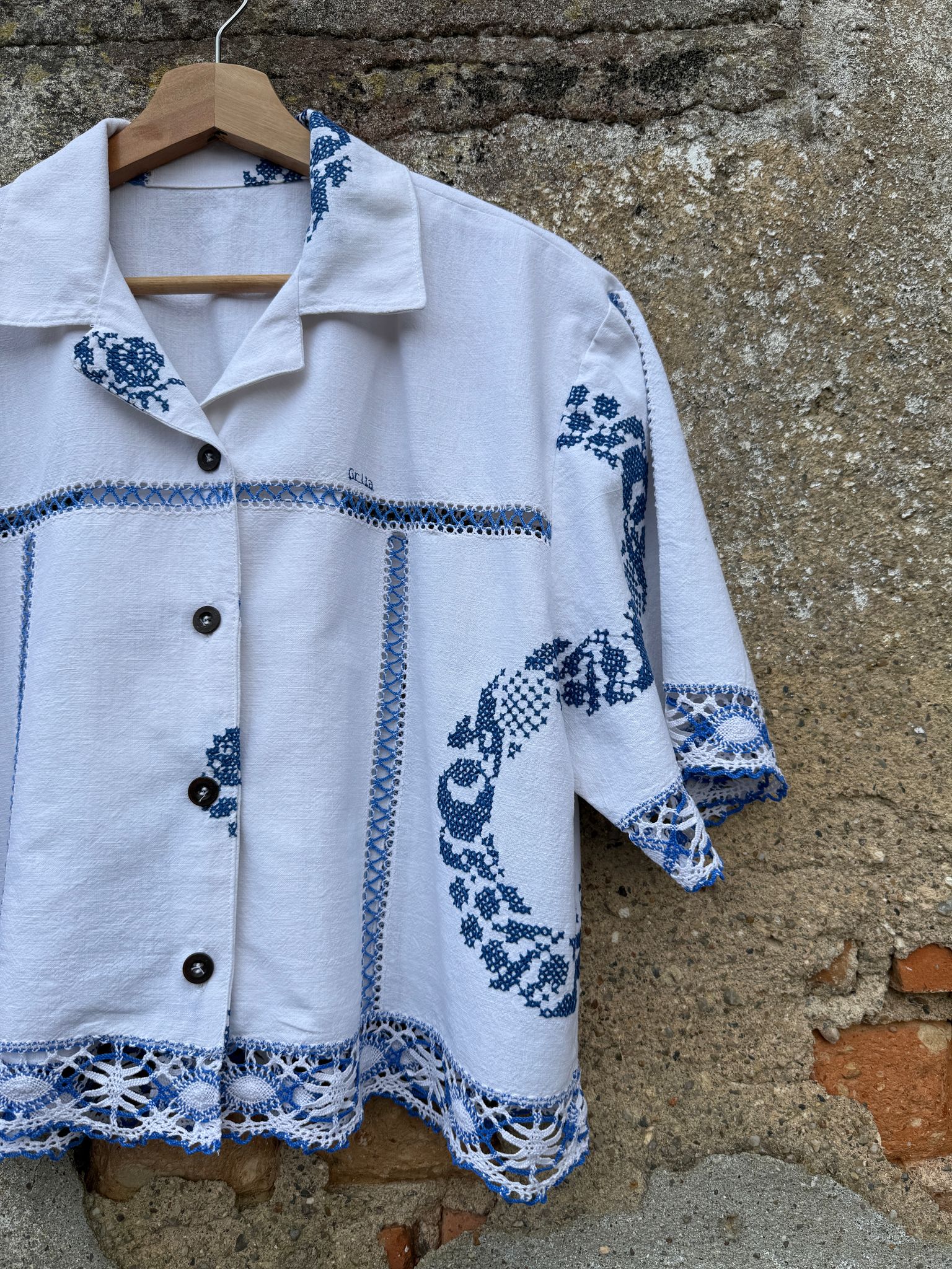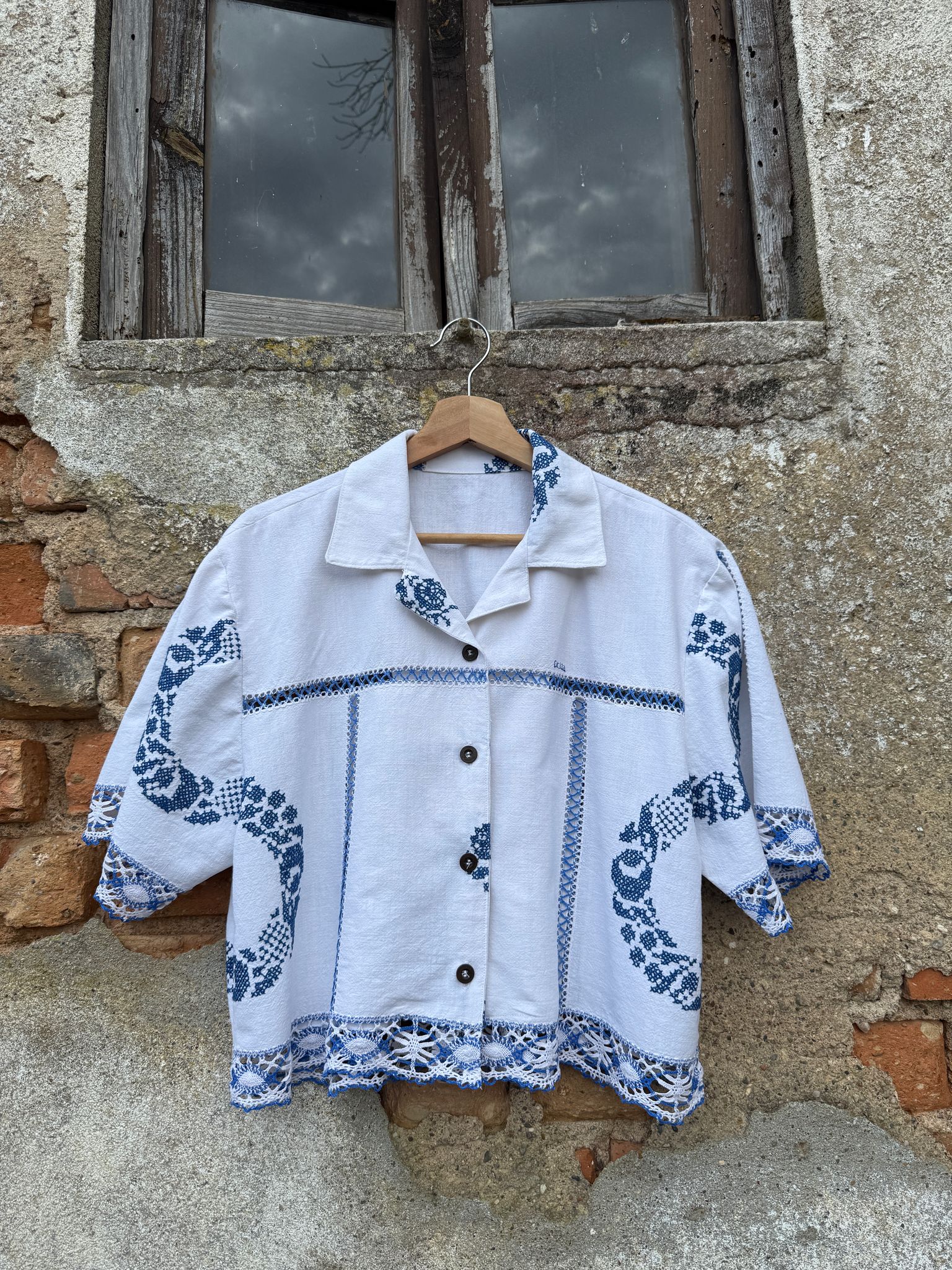 Beautiful shirt, made from a hand-embroidered tablecloth
