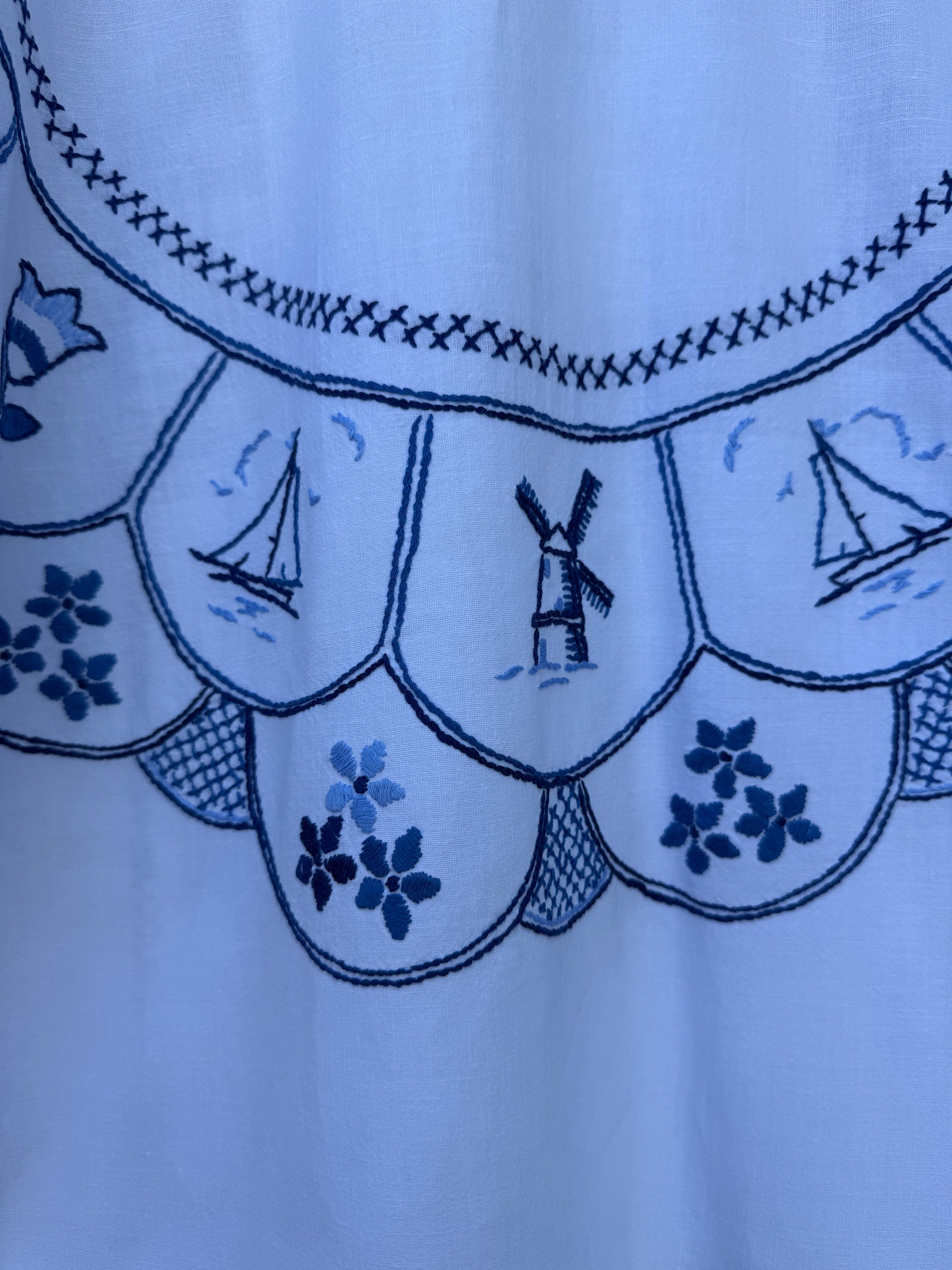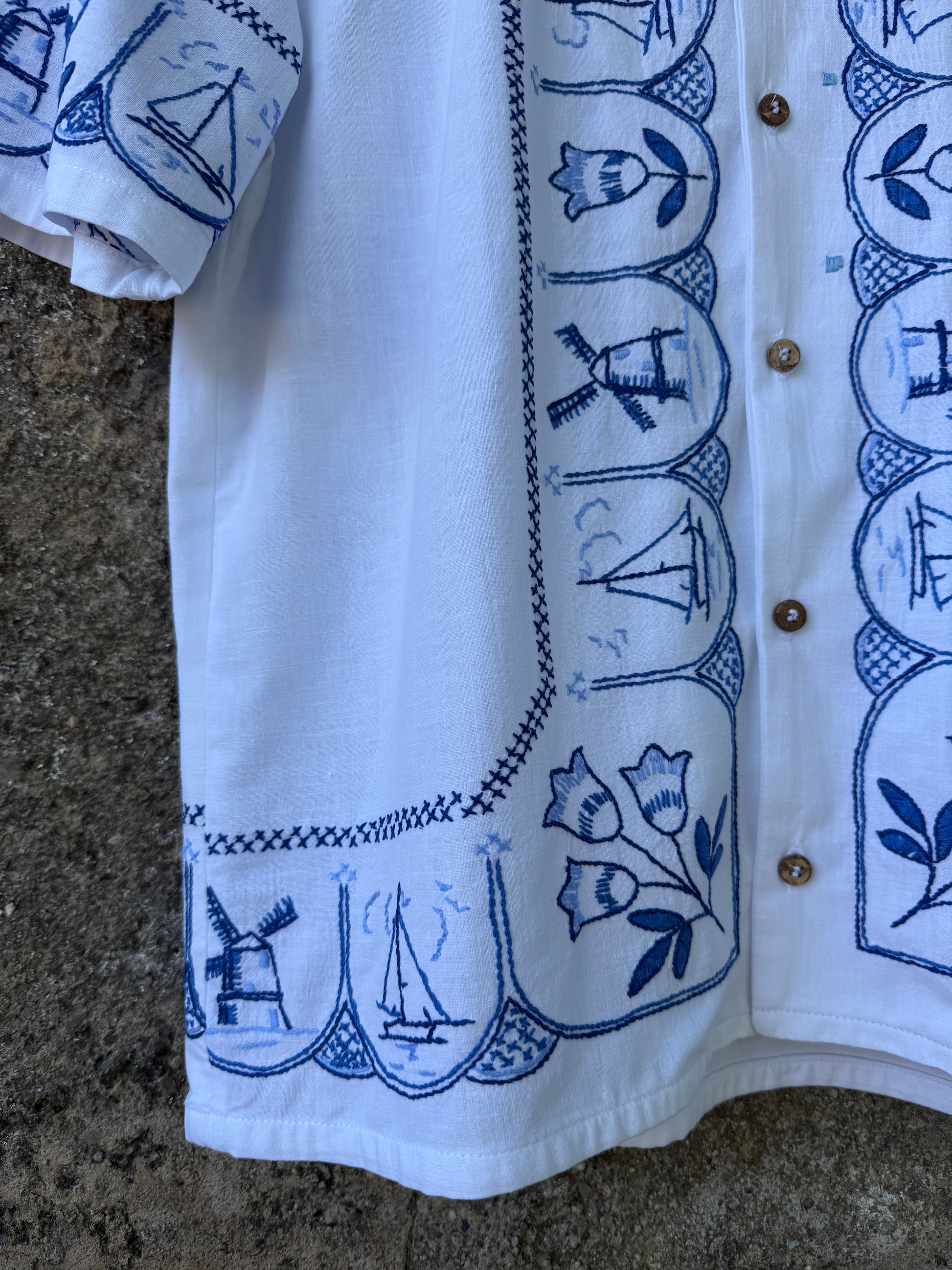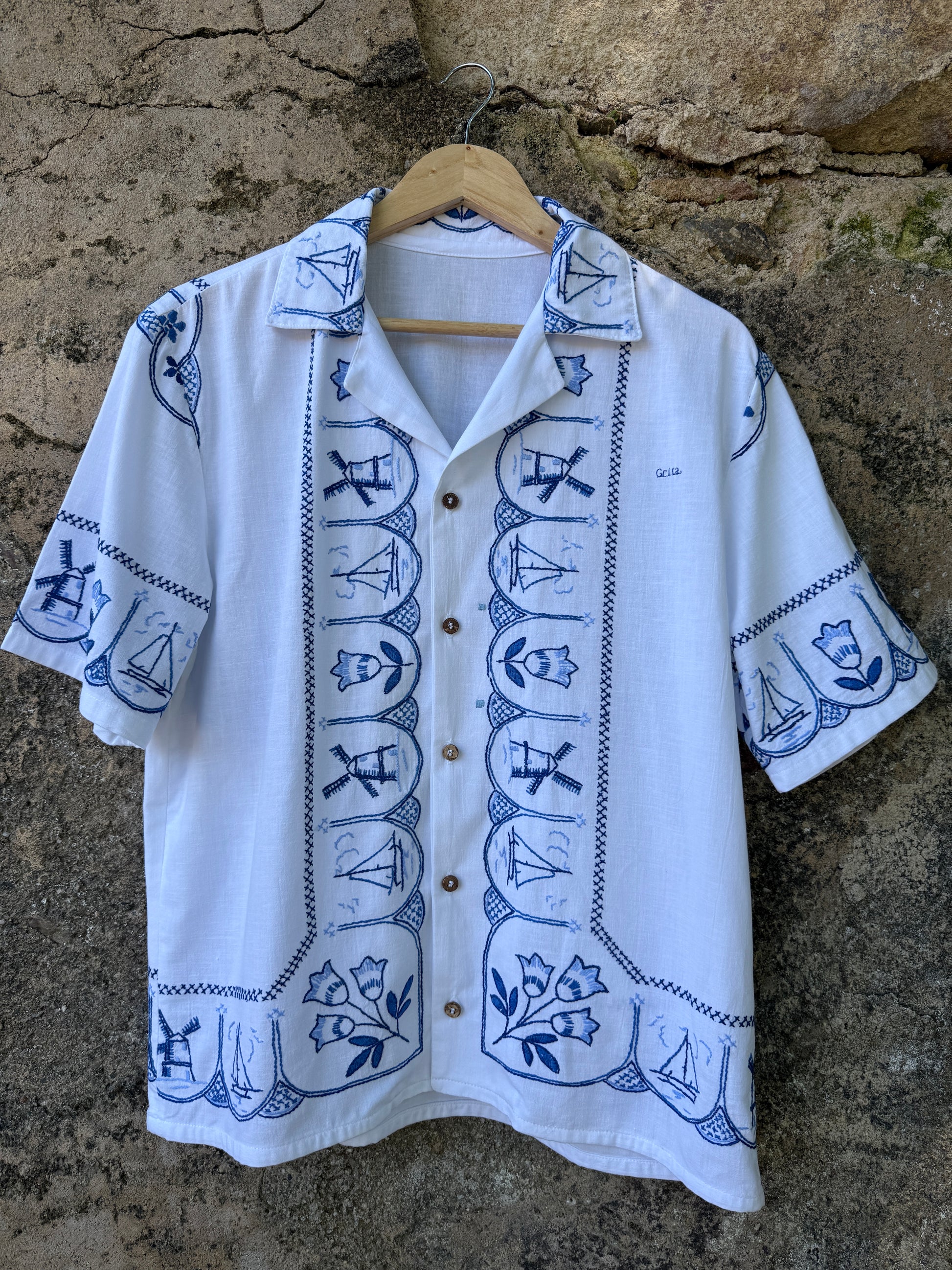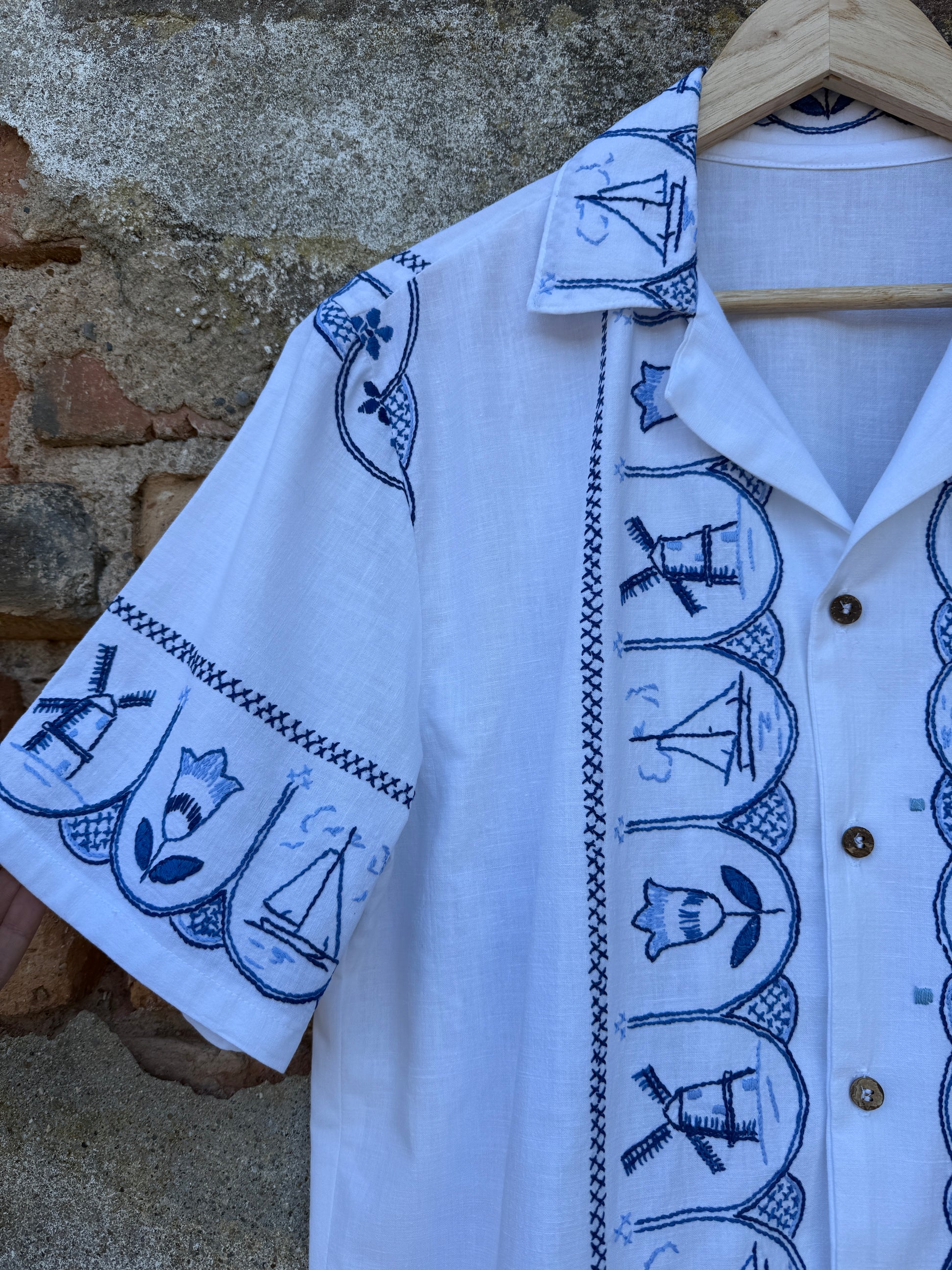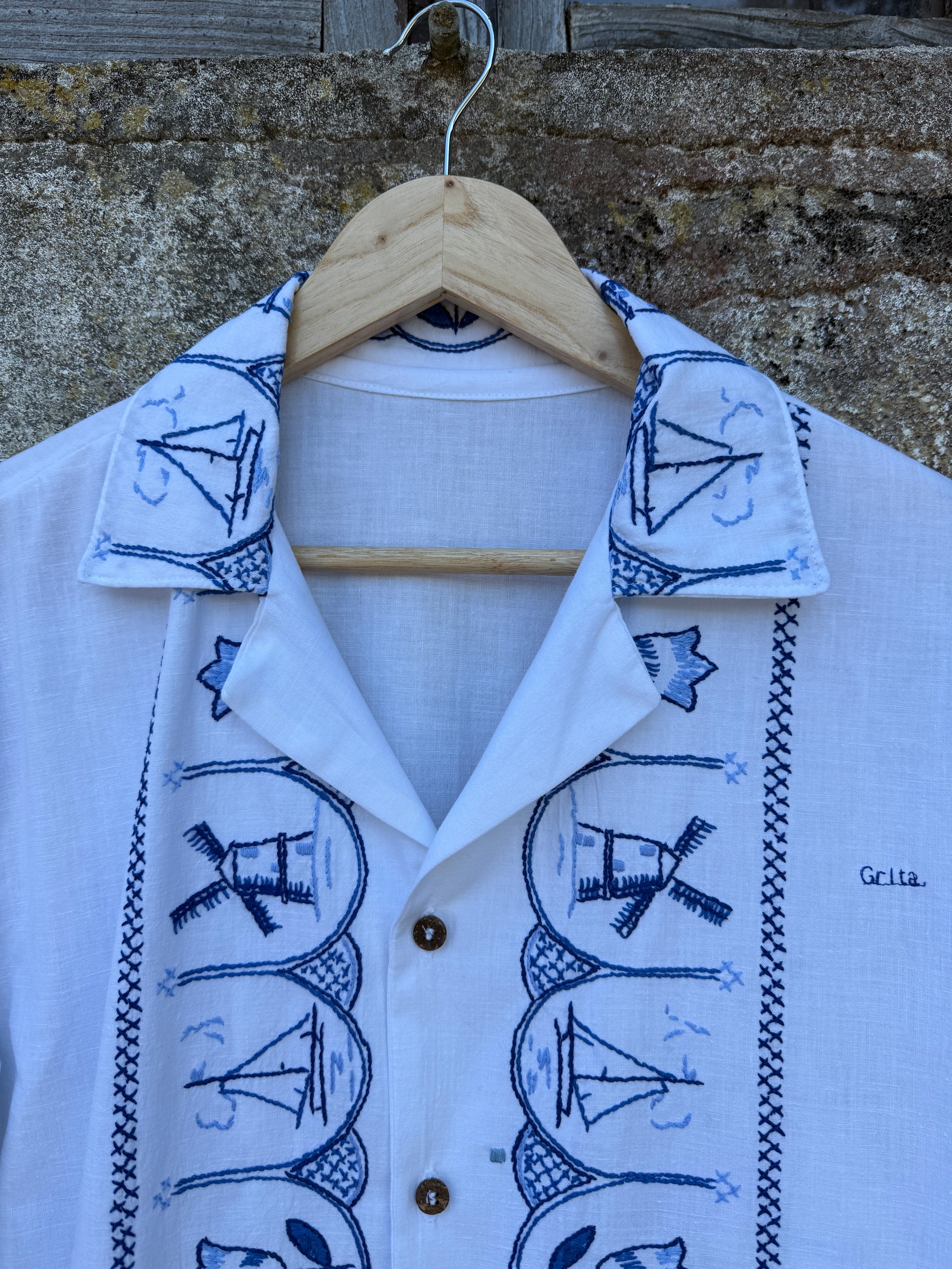 Camisa muito bonita feita com uma toalha de mesa antiga bordada à mão