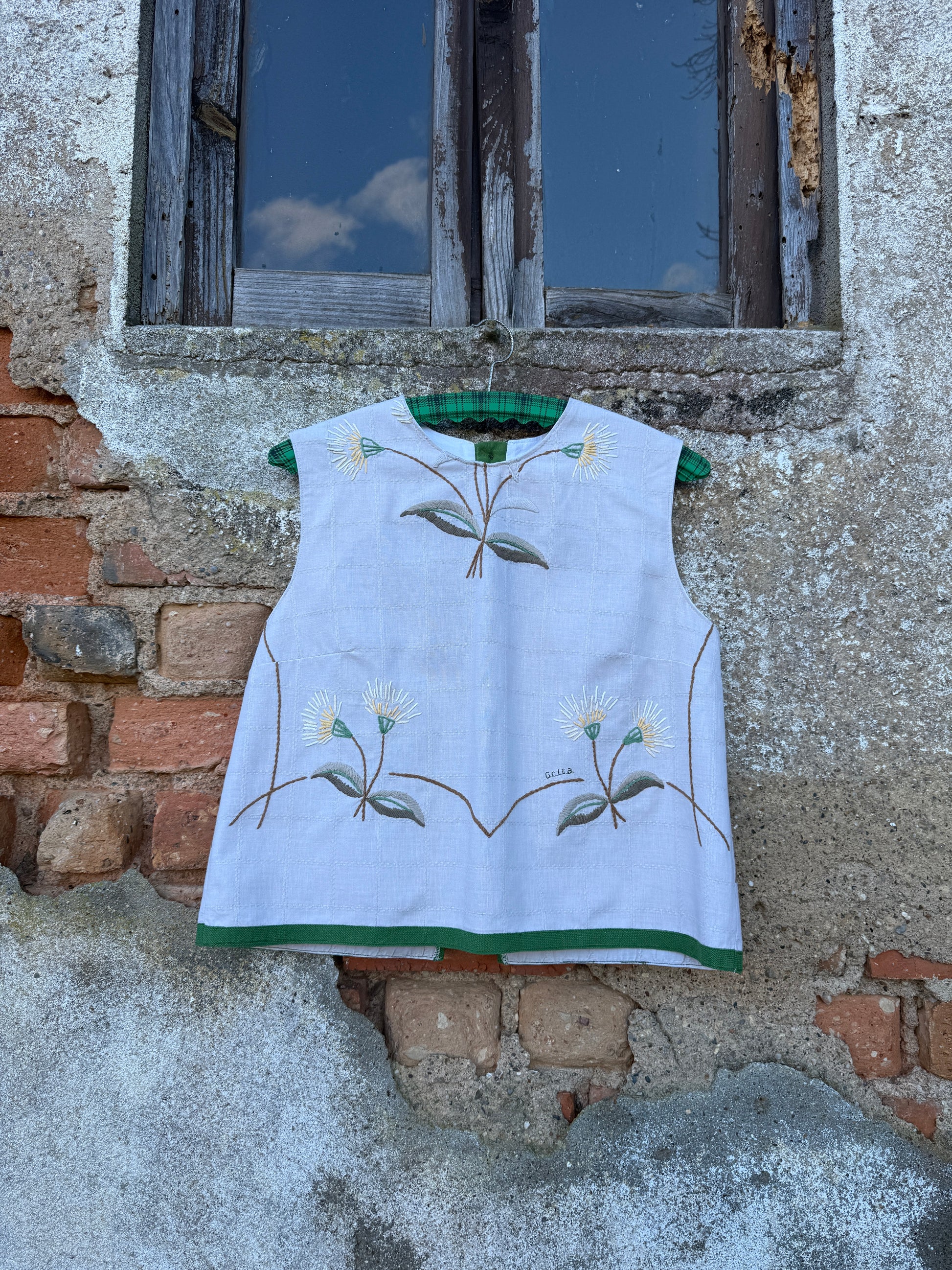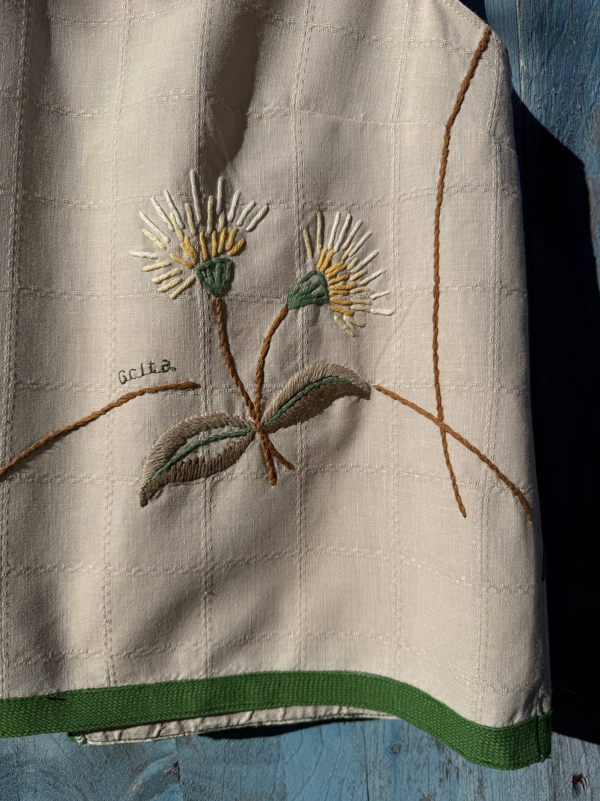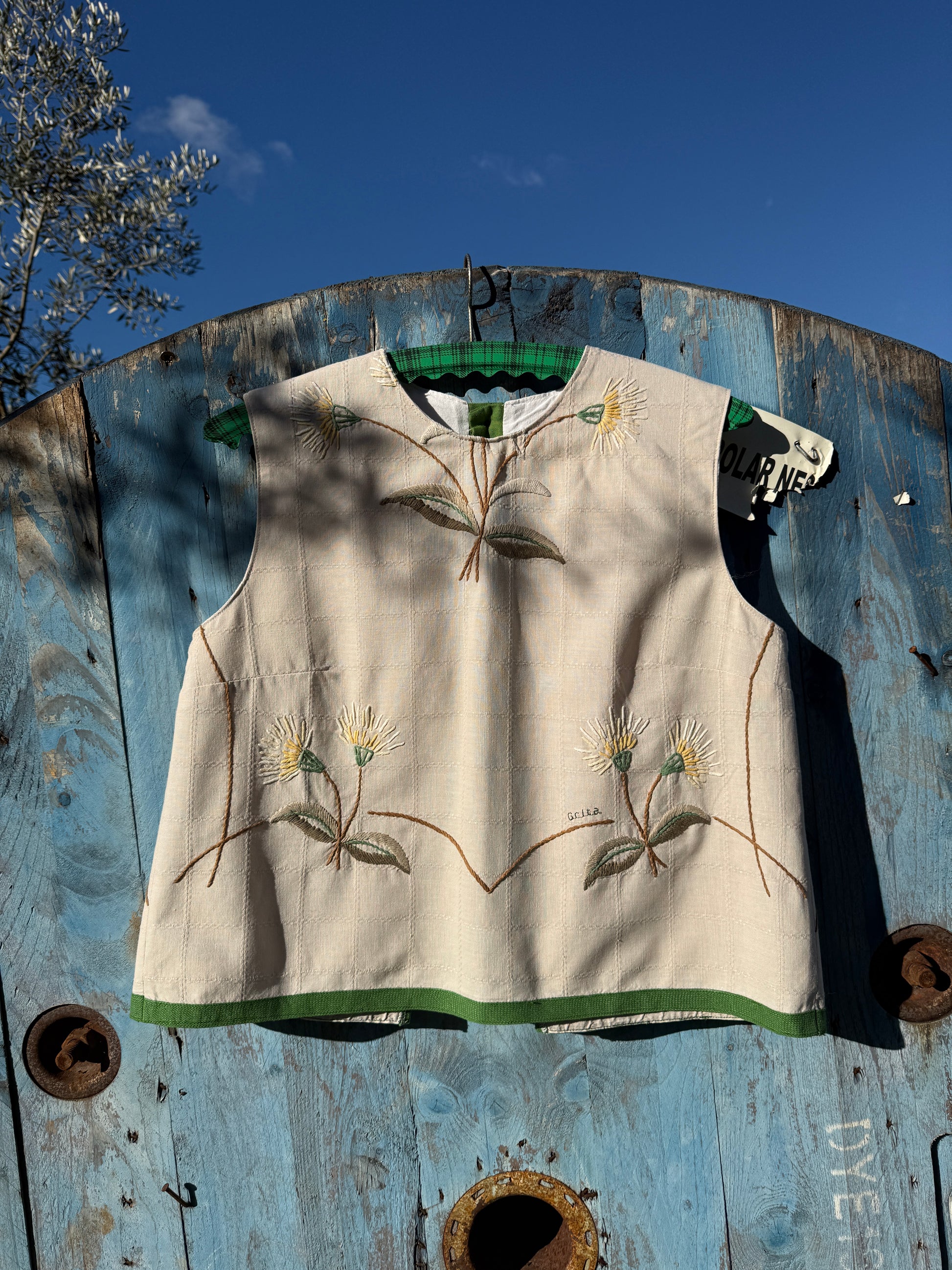 Top muito bonito feito com uma cortina em linho bordada à mão