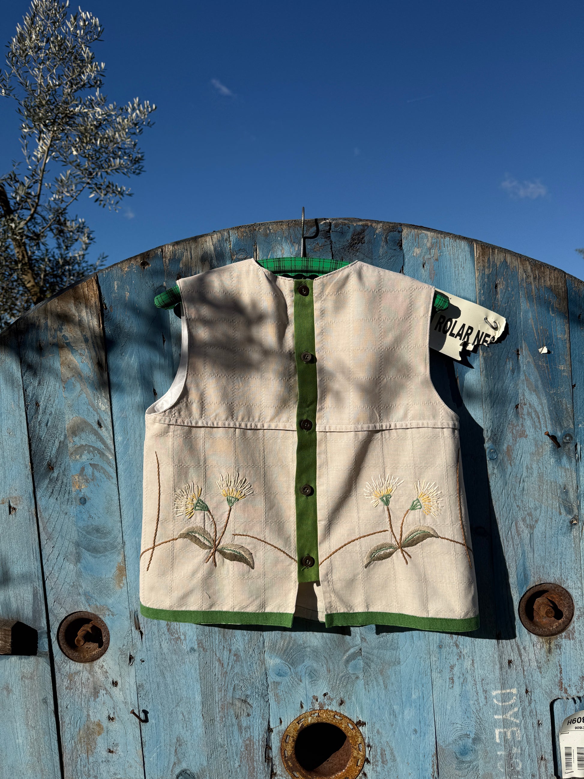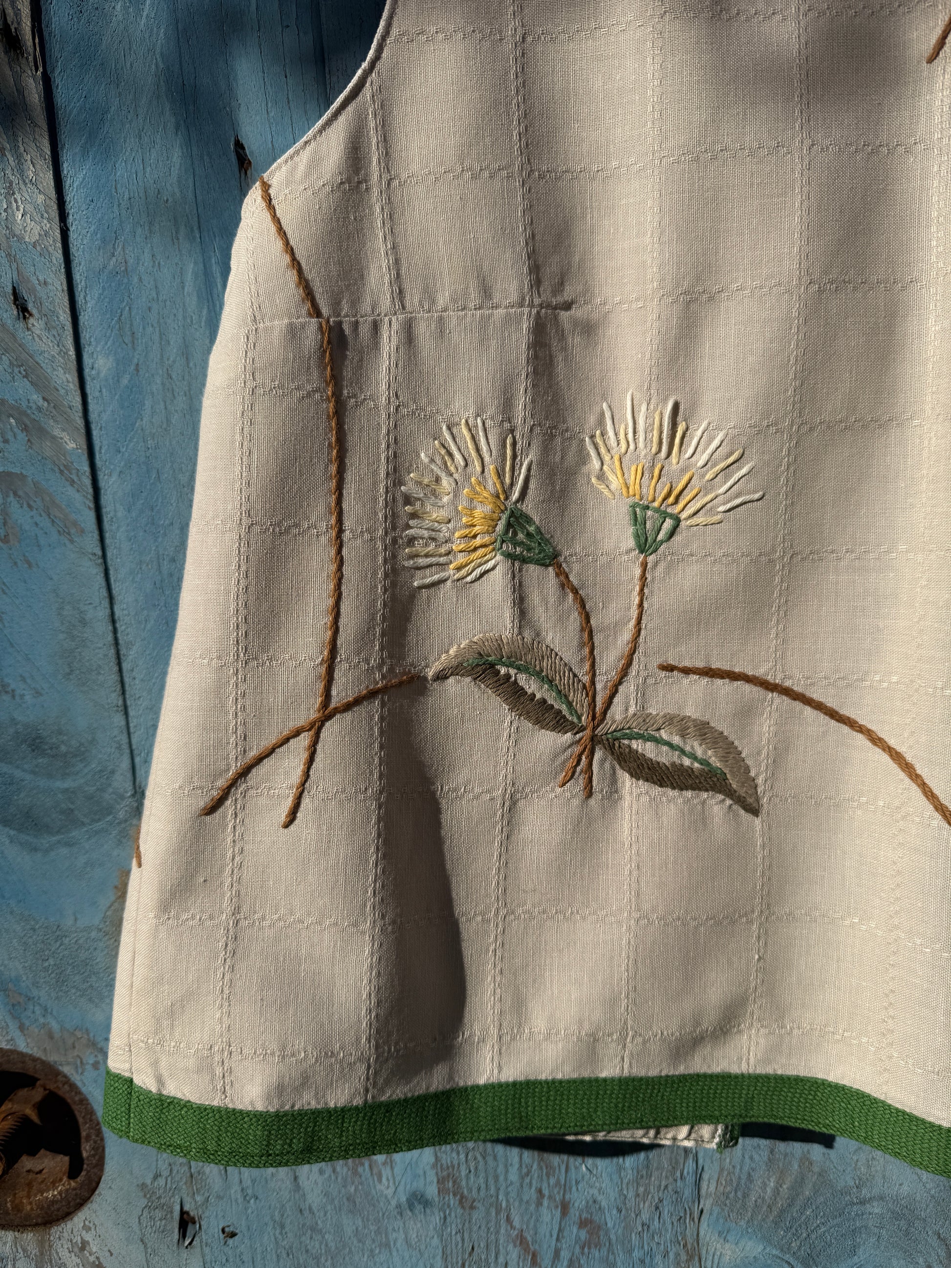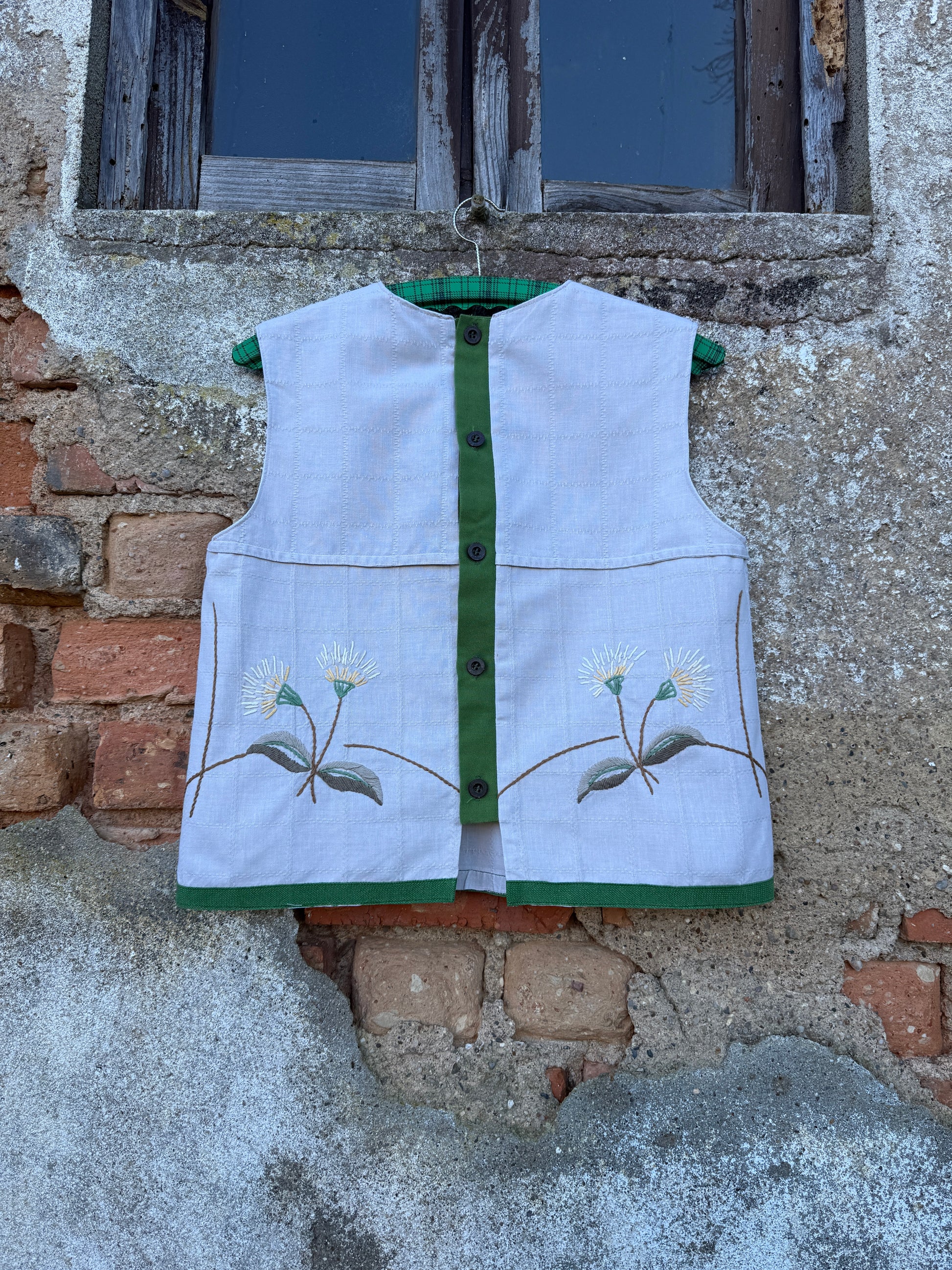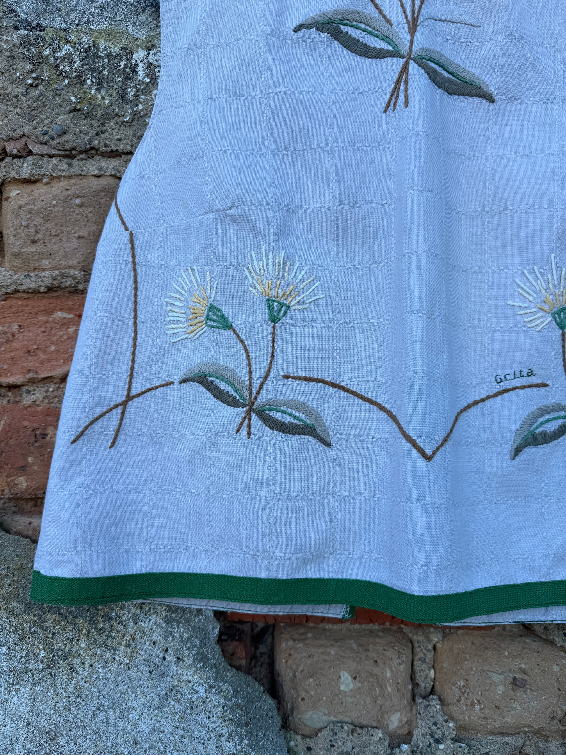 Top muito bonito feito com uma cortina em linho bordada à mão